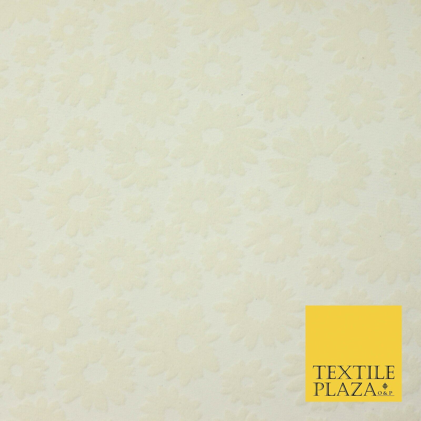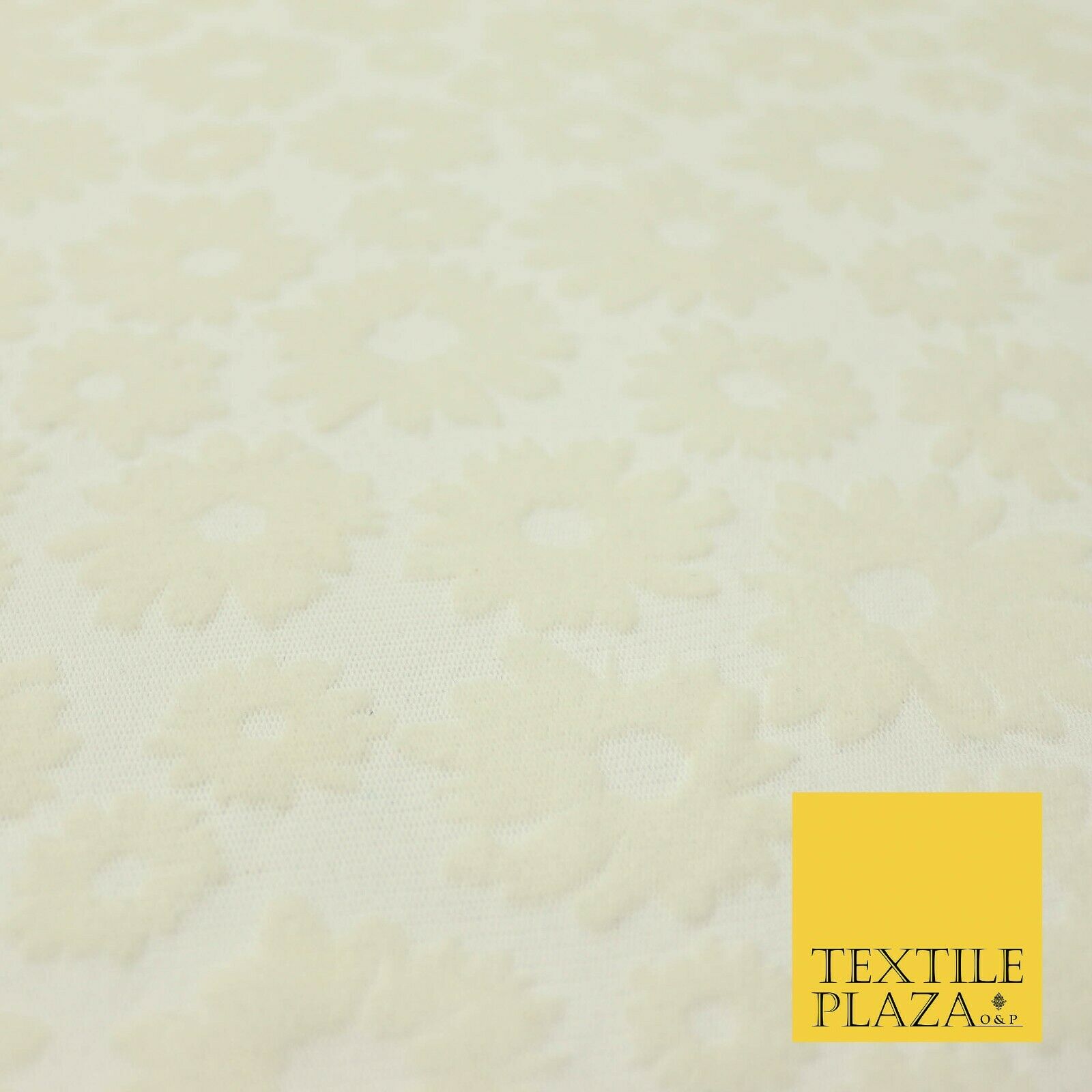 Ivory Cream Floral Flower Velour Flocked Power Mesh Net Stretch Fabric 58" 4321