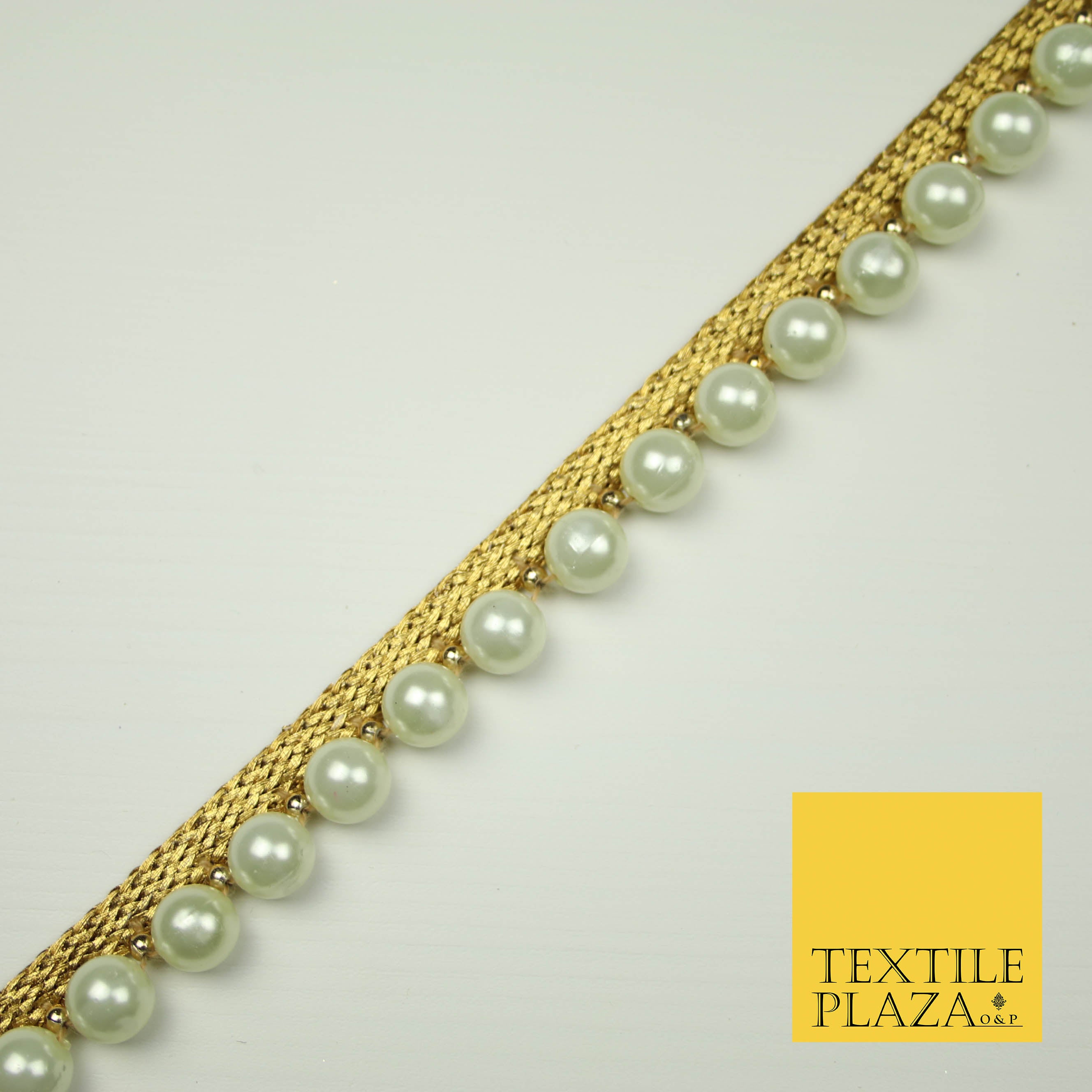 IVORY CREAM Large Pearl Bead Trimming Border Ribbon Ethnic Gota Trim Edging X408
