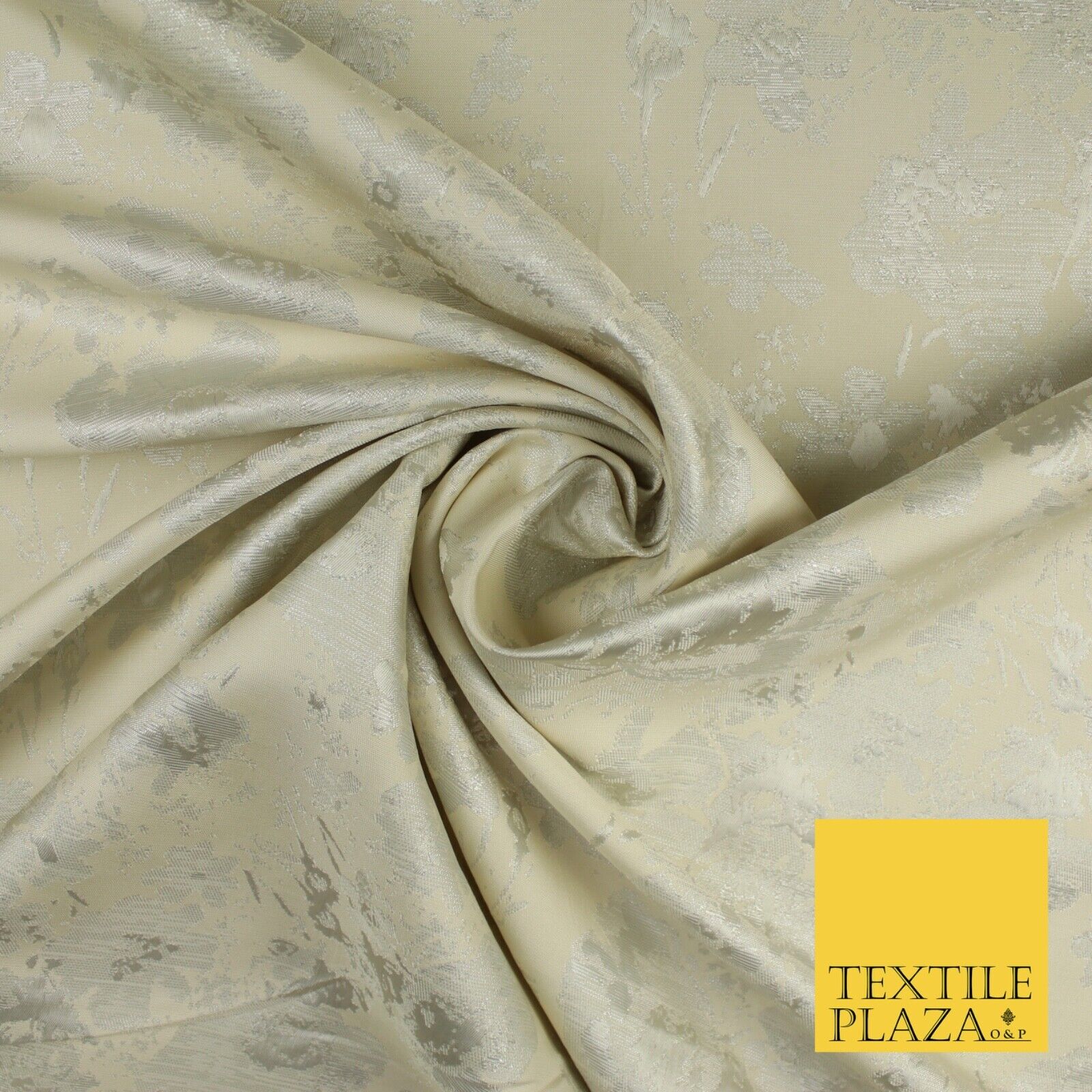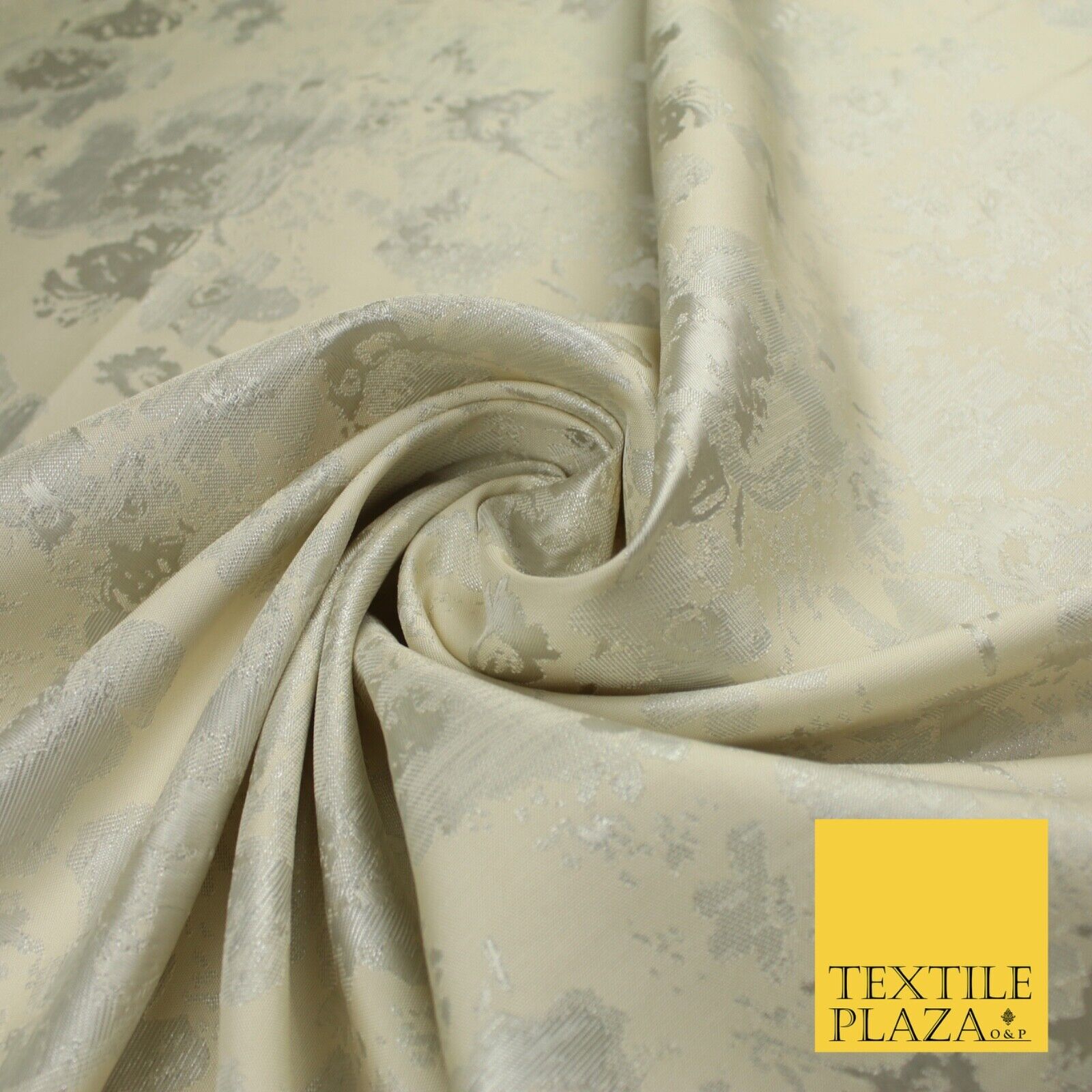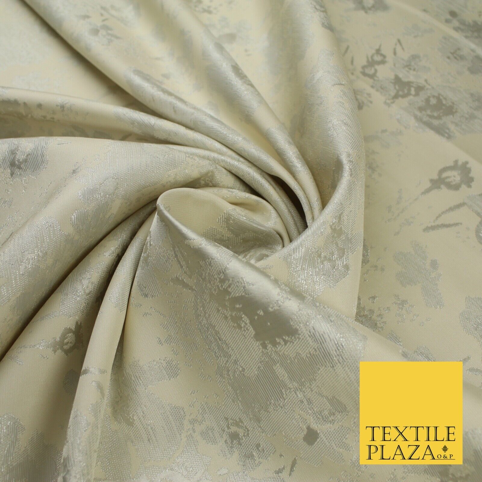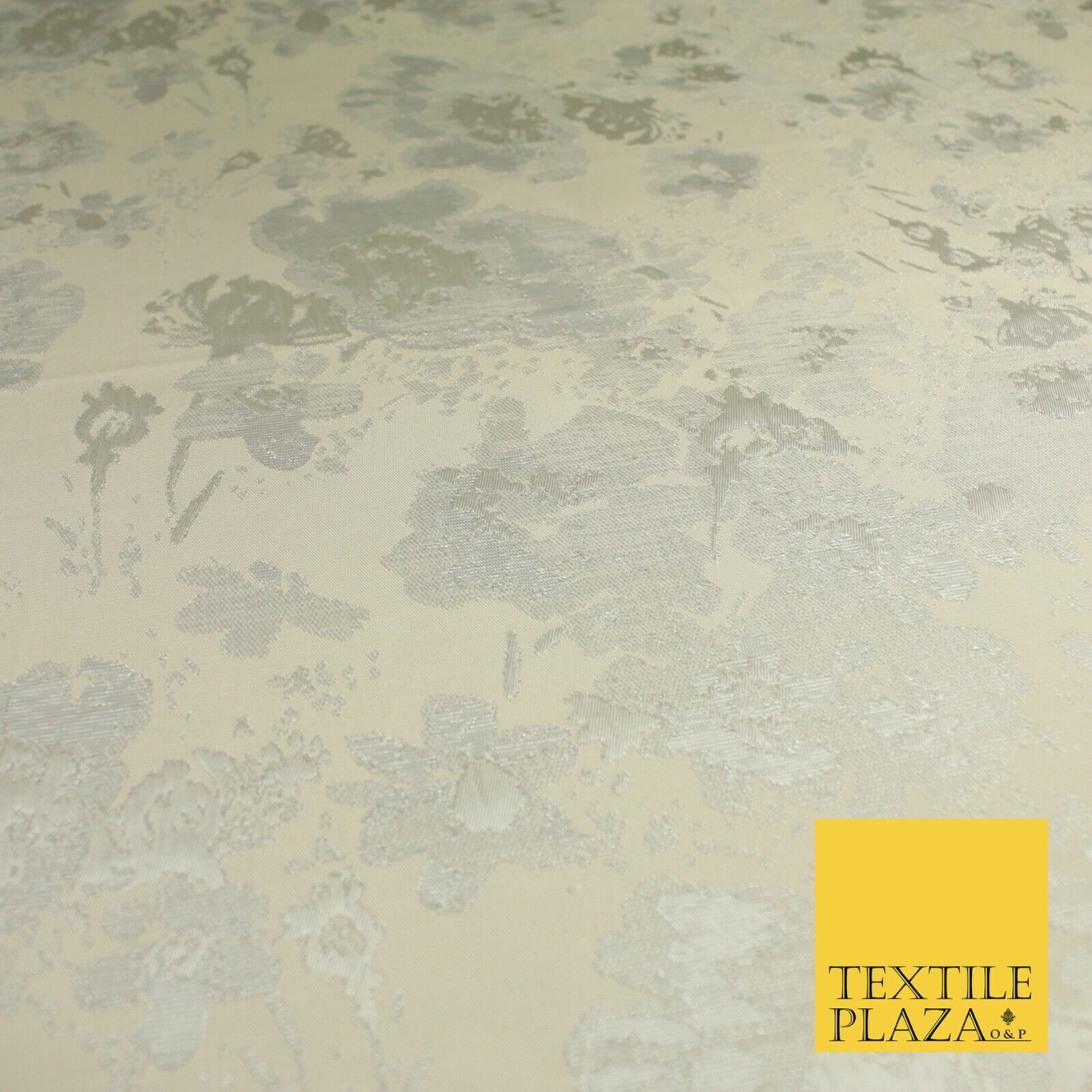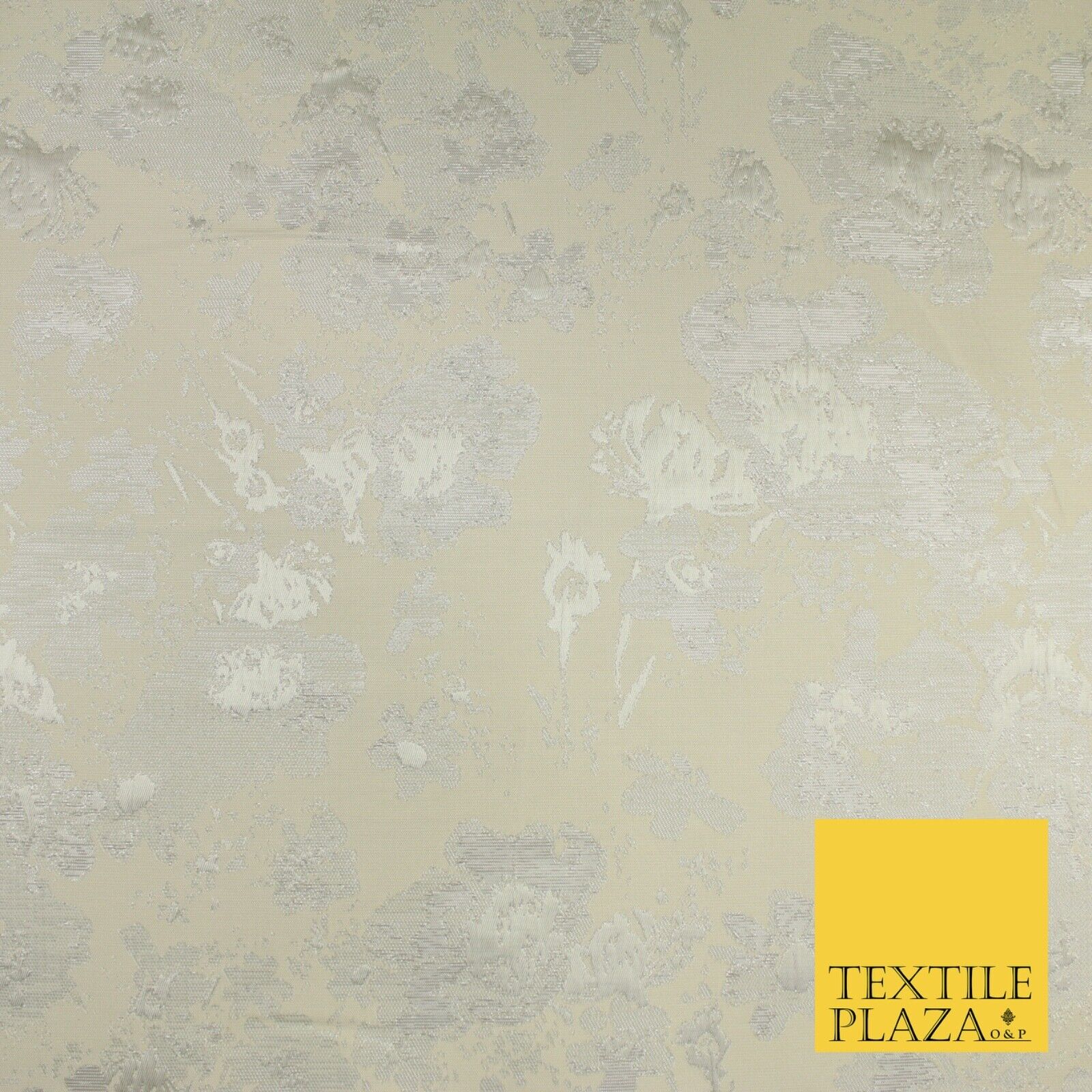 Ivory Cream Silver Abstract Floral Metallic Textured Brocade Dress Fabric 9960