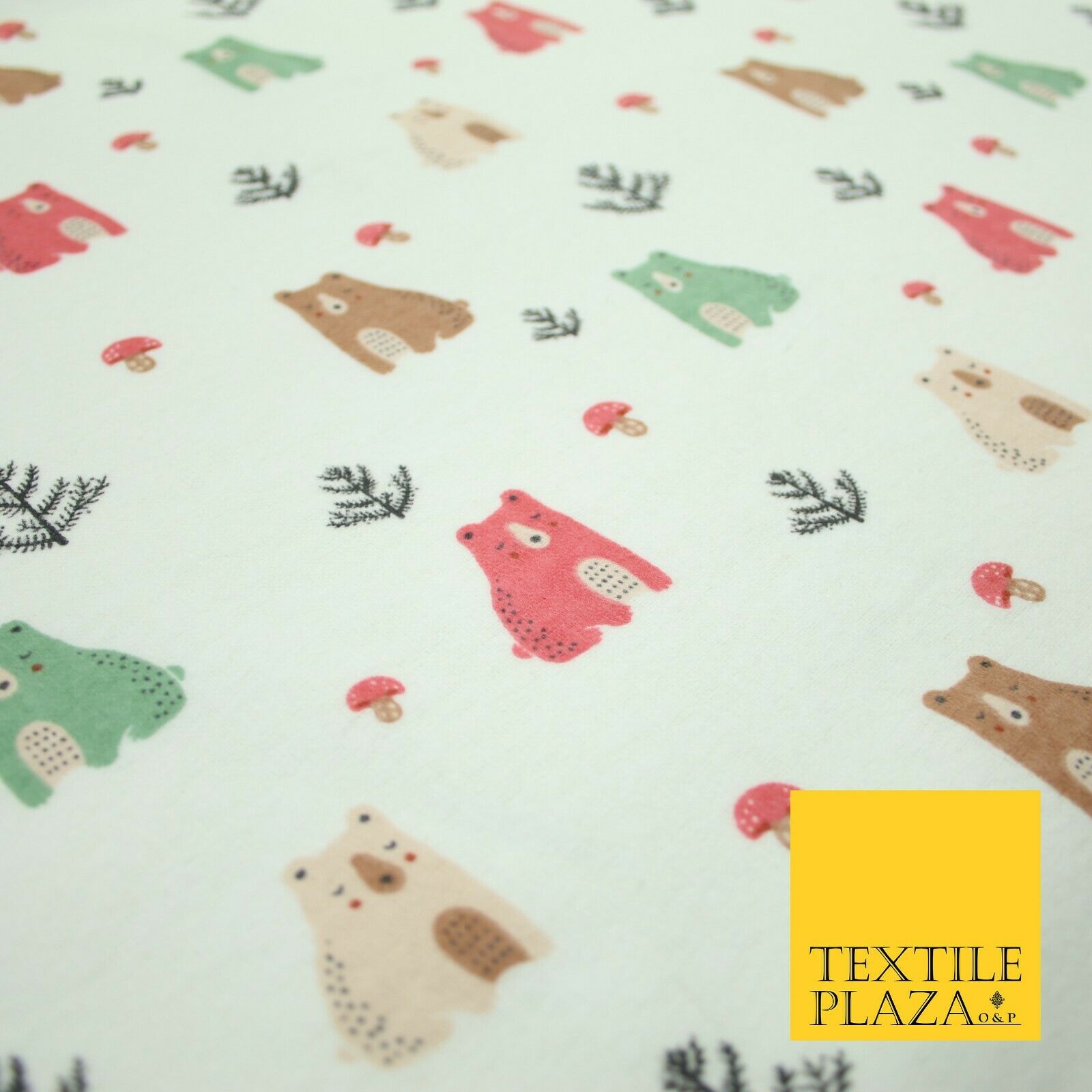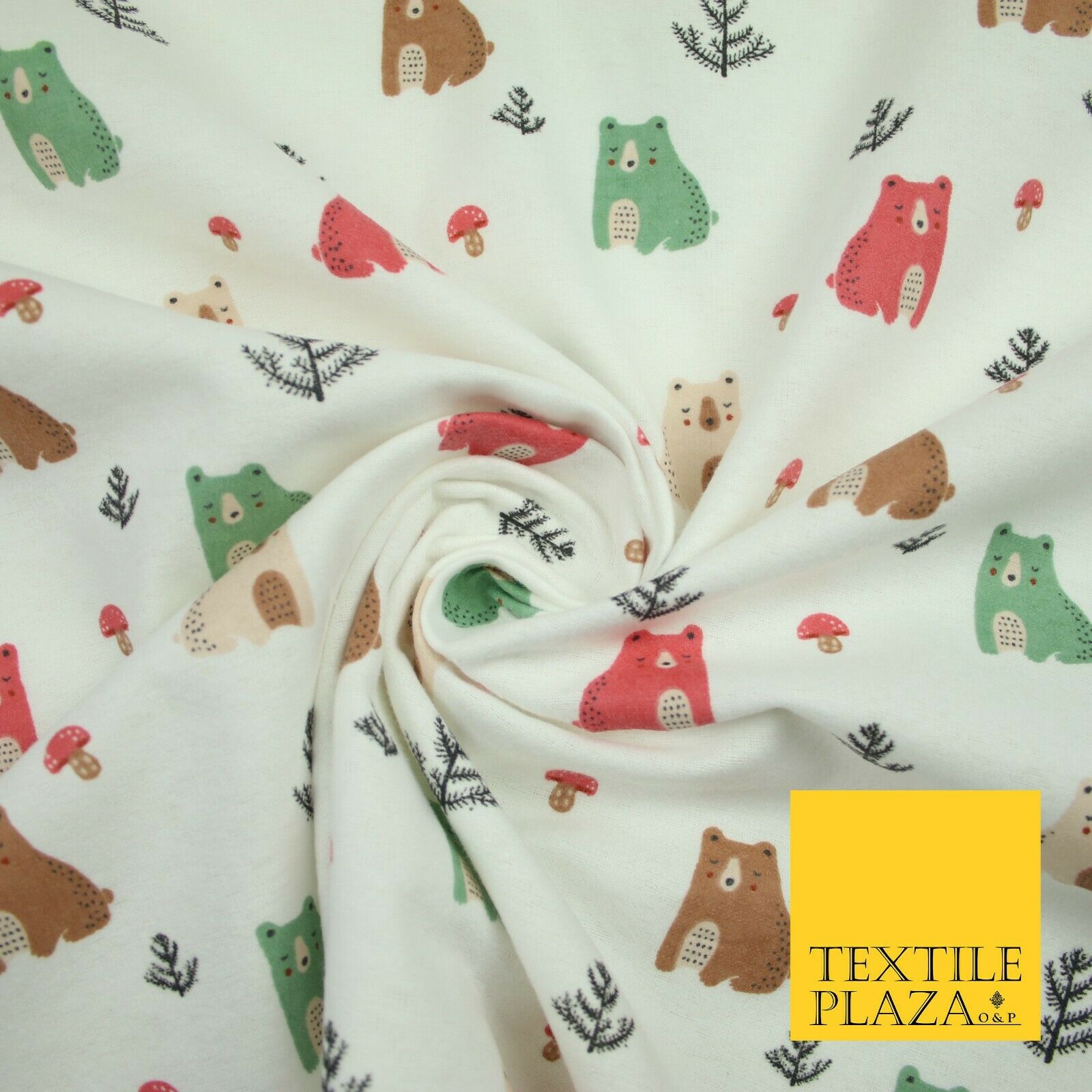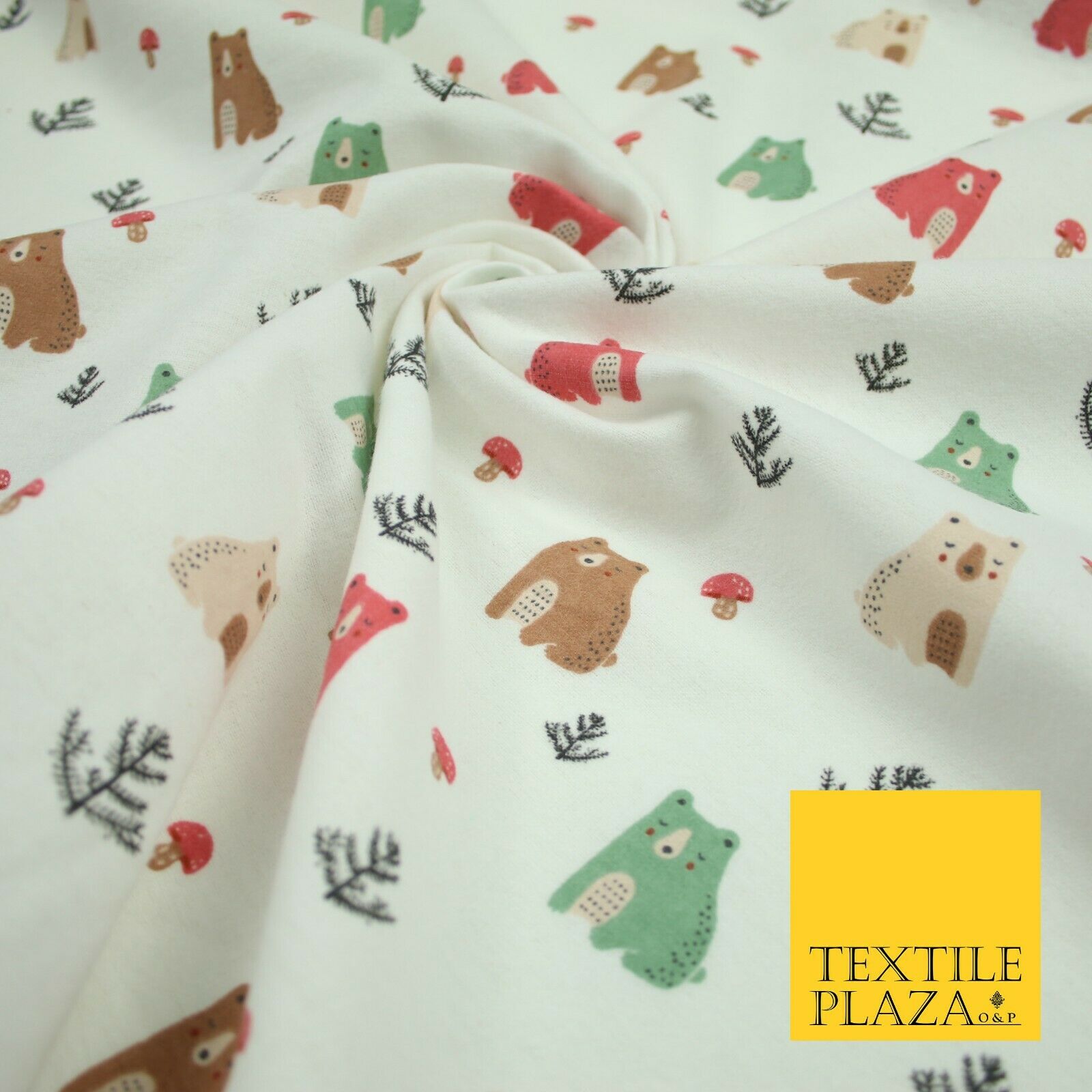 Ivory Forest Bears Mushrooms Printed Brushed Polycotton Winceyette Fabric 7181