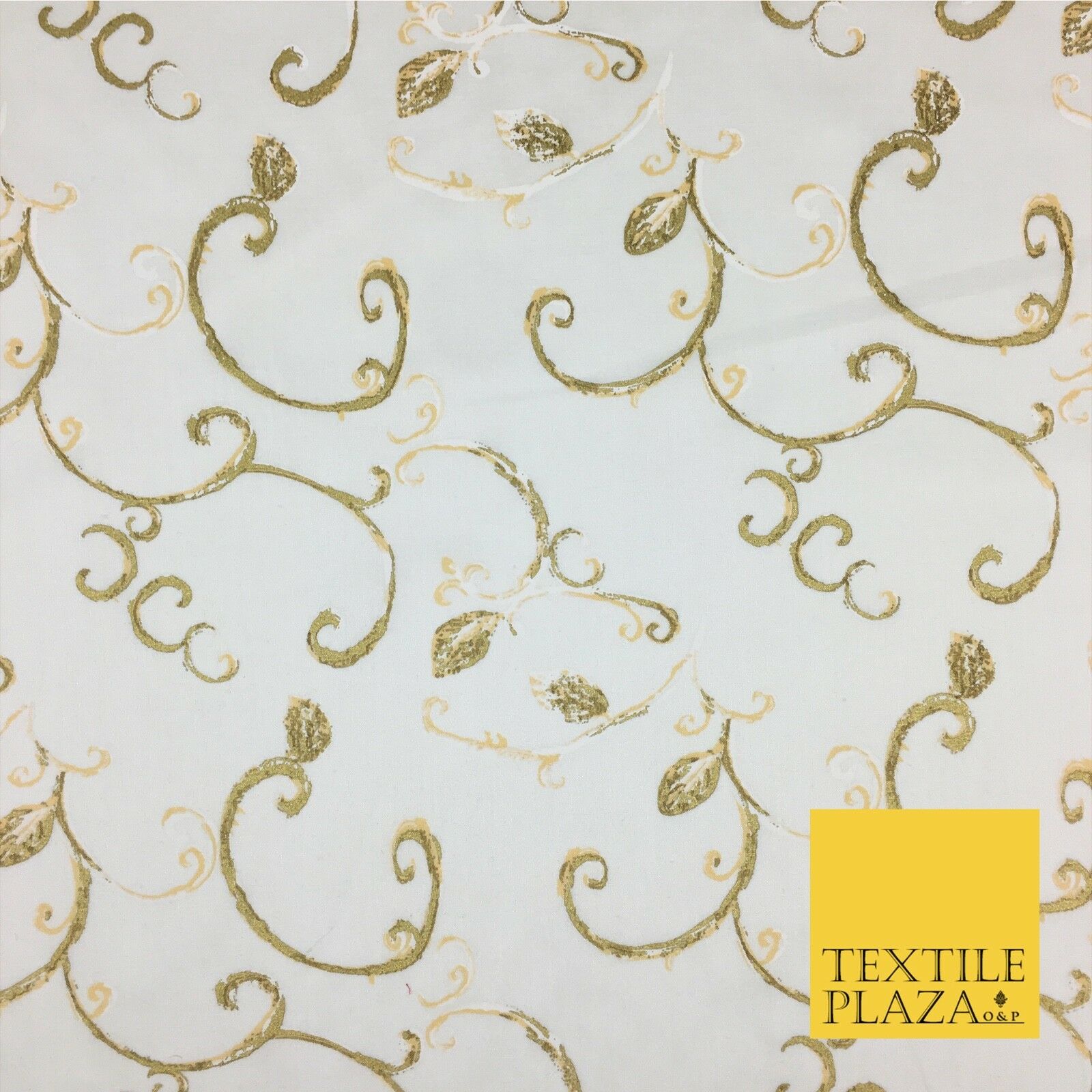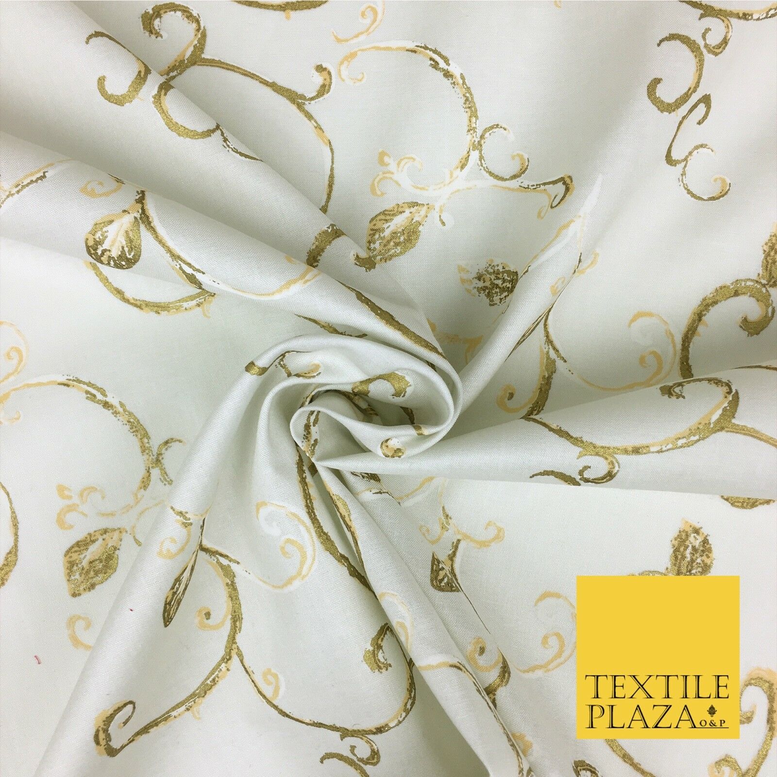 IVORY Metallic Christmas Scroll Swirl Fabric-100% Cotton-Christmas Festive RF42