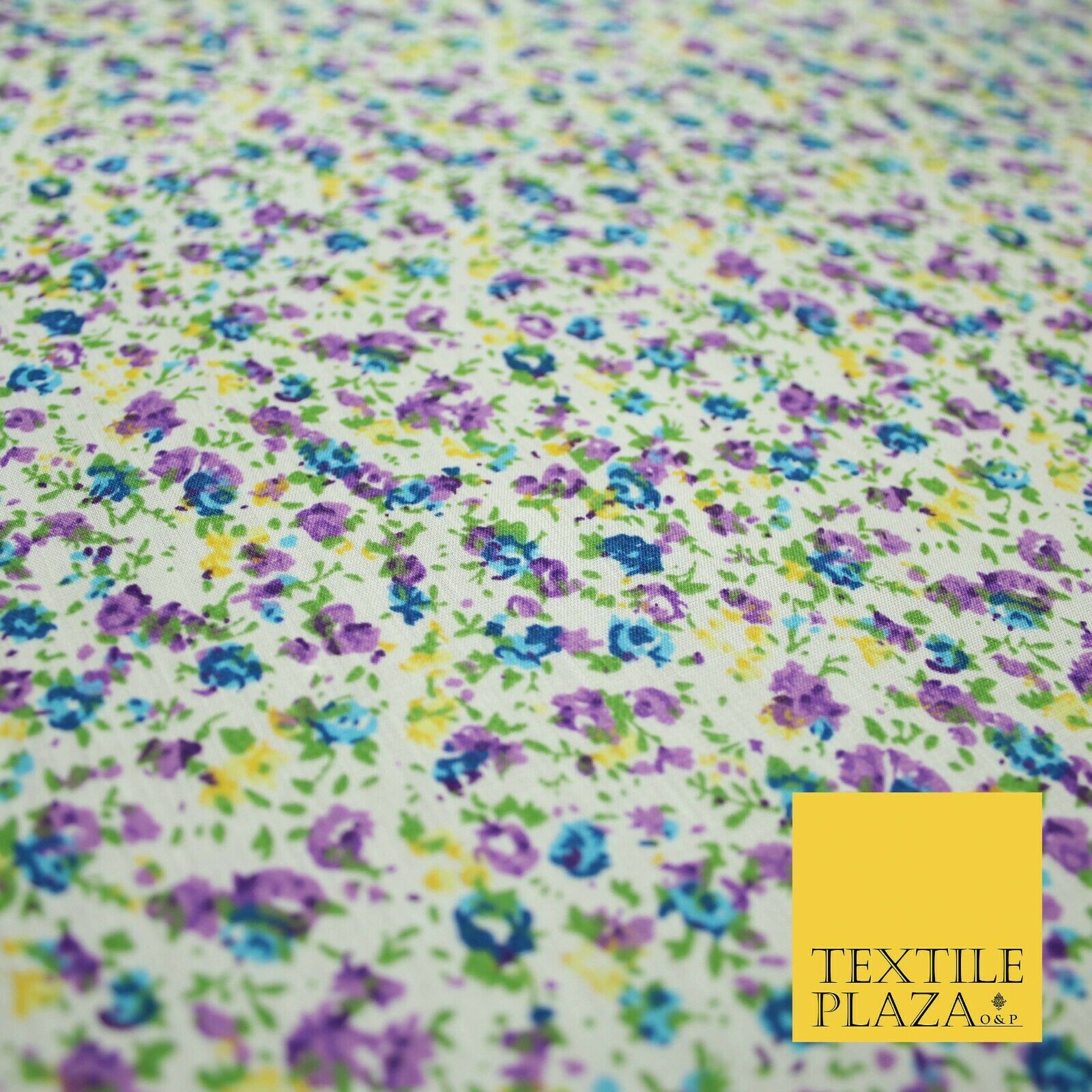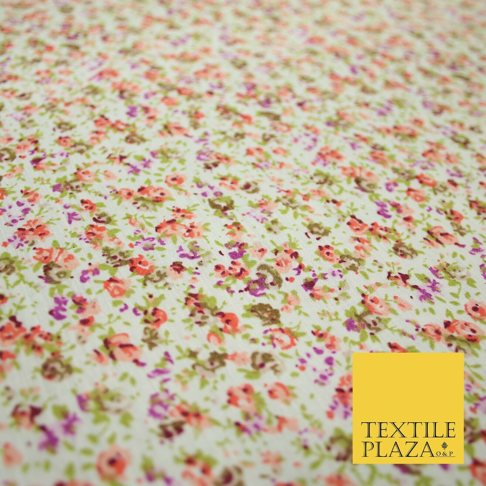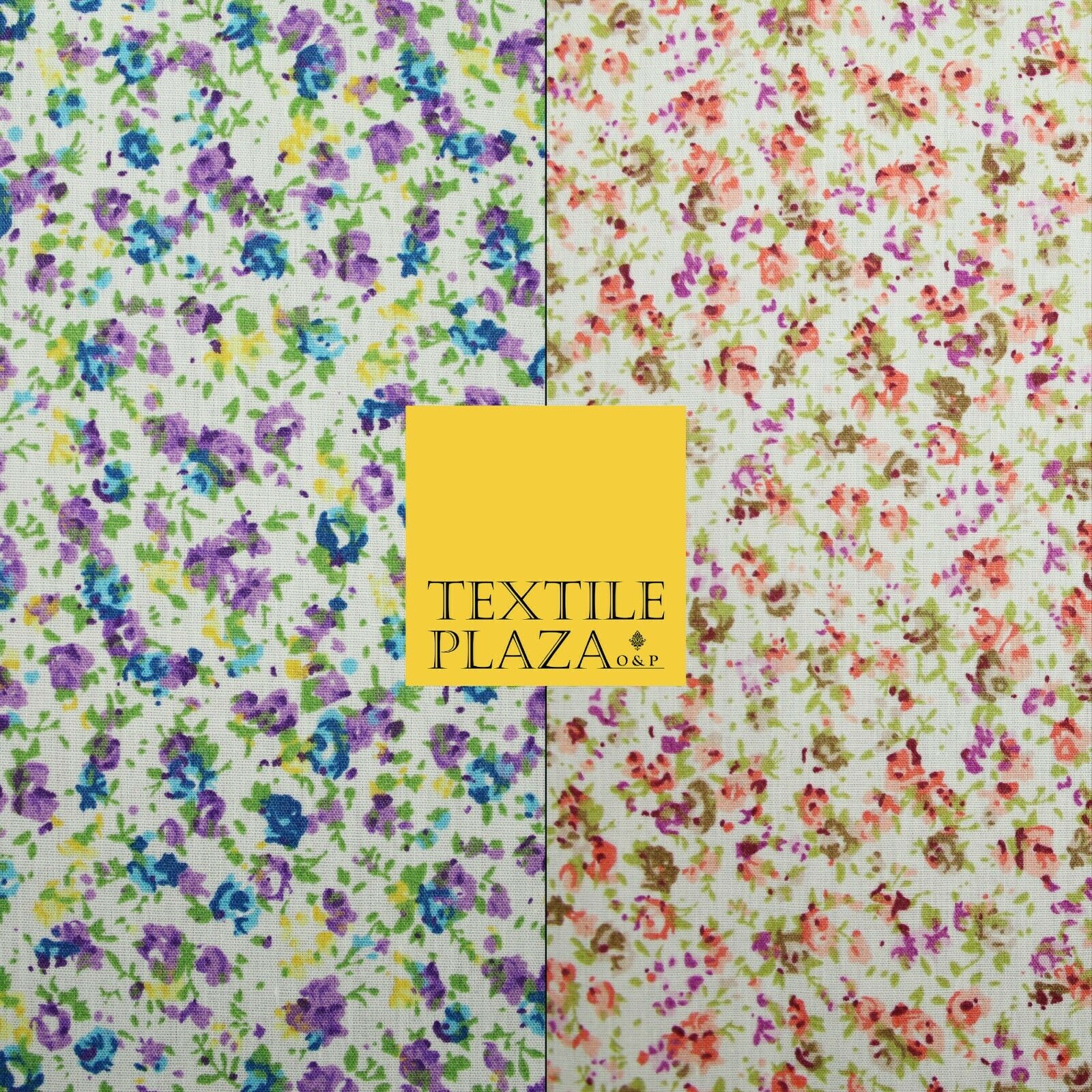 Ivory Mini Watercolour Floral Ditsy Printed Polycotton Fabric Dress Craft 44"