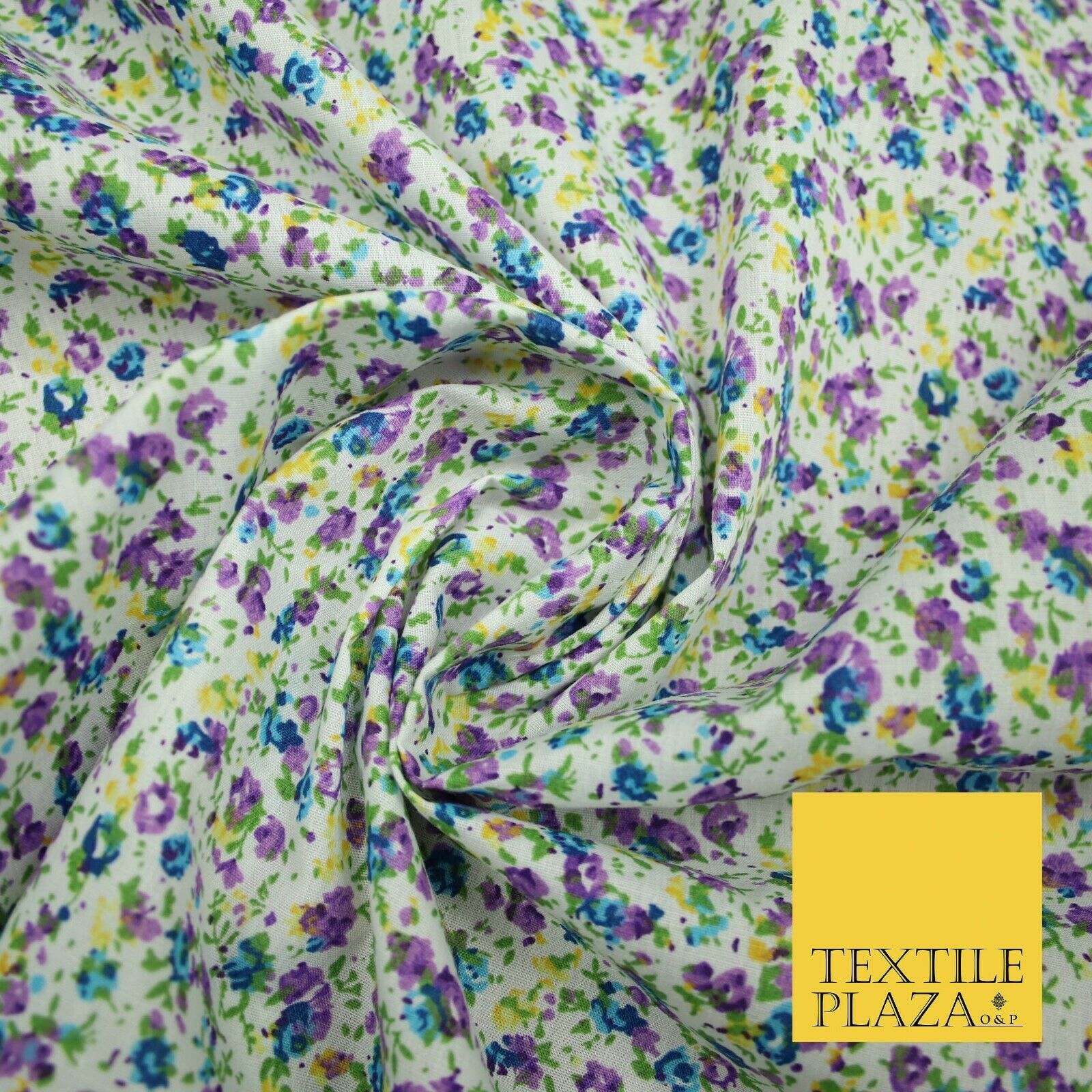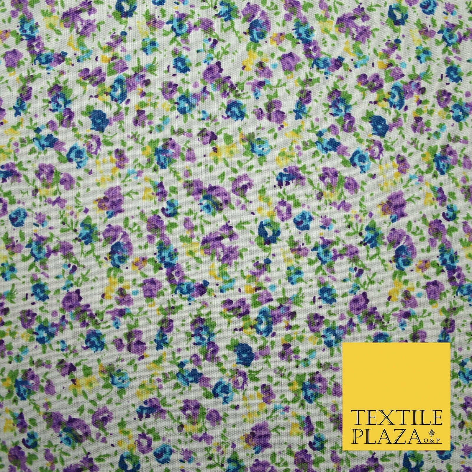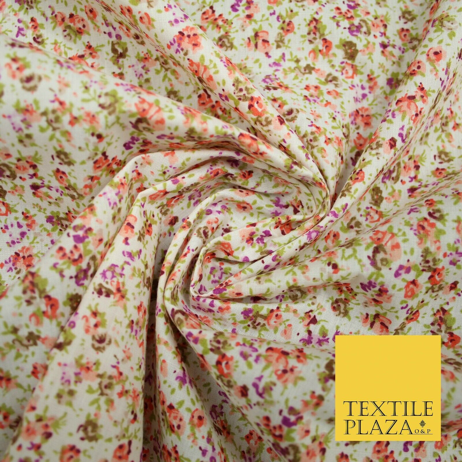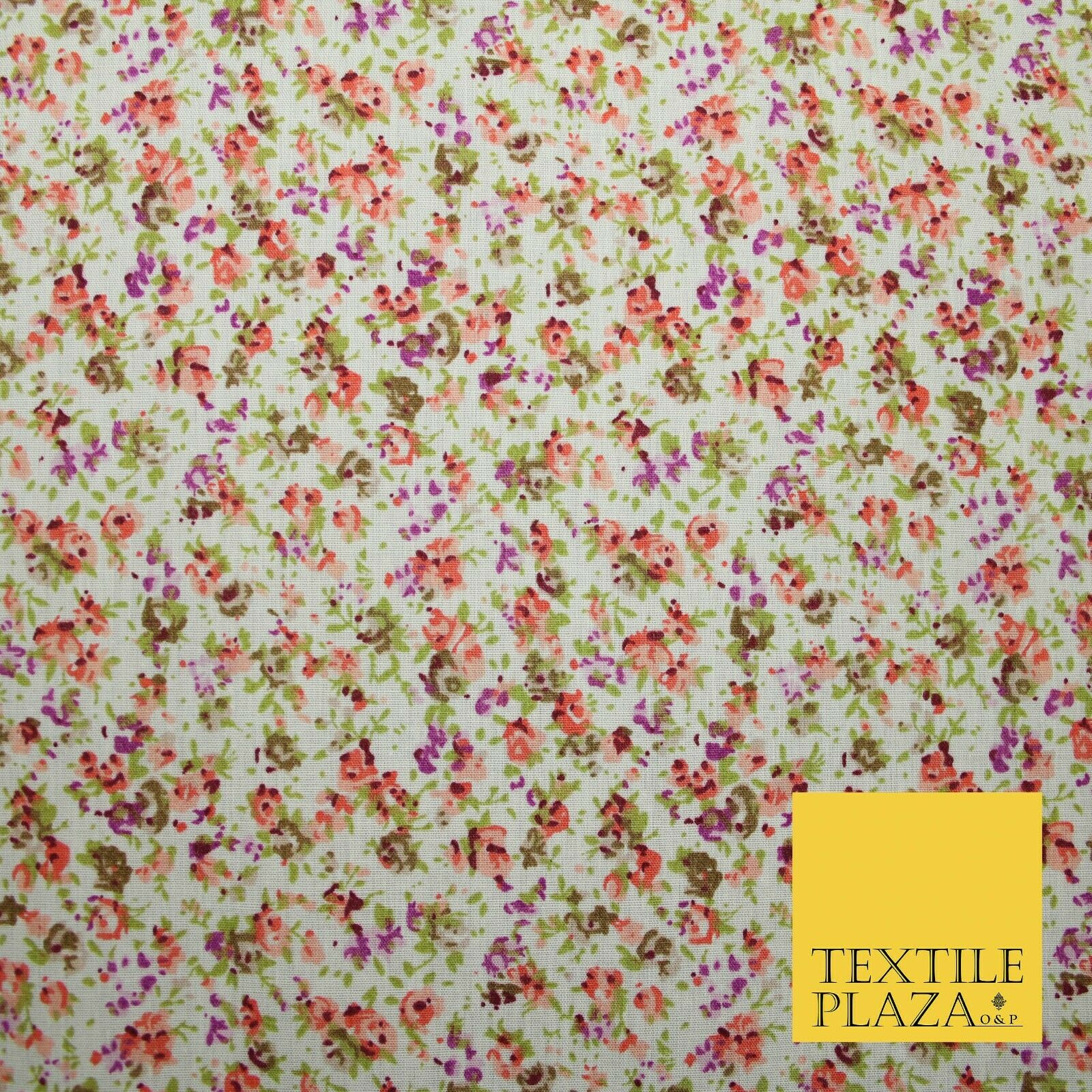 Ivory Mini Watercolour Floral Ditsy Printed Polycotton Fabric Dress Craft 44"