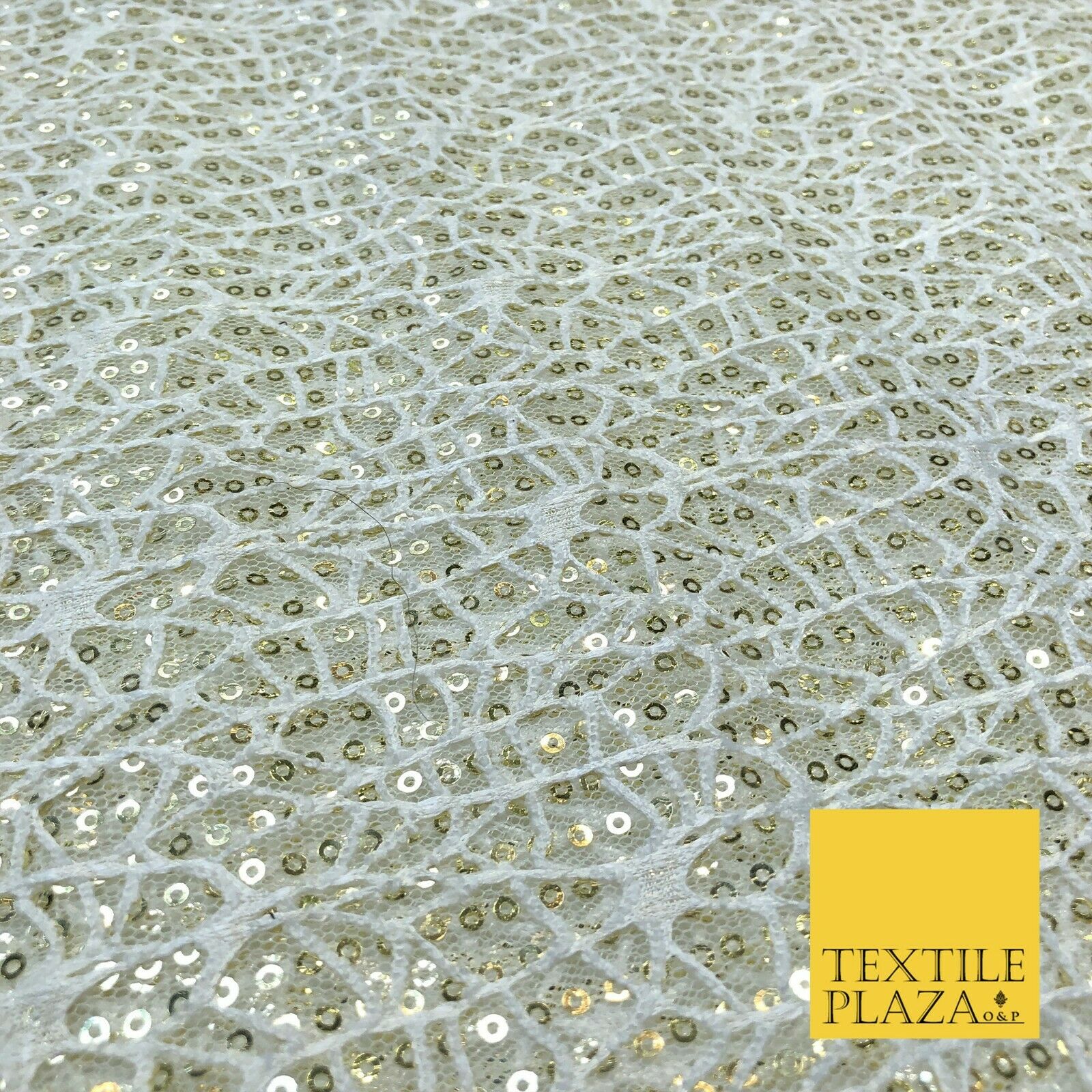 IVORY Webbed Sequin Net Lace Dress Fabric Backdrop Dance Sparkle 1238