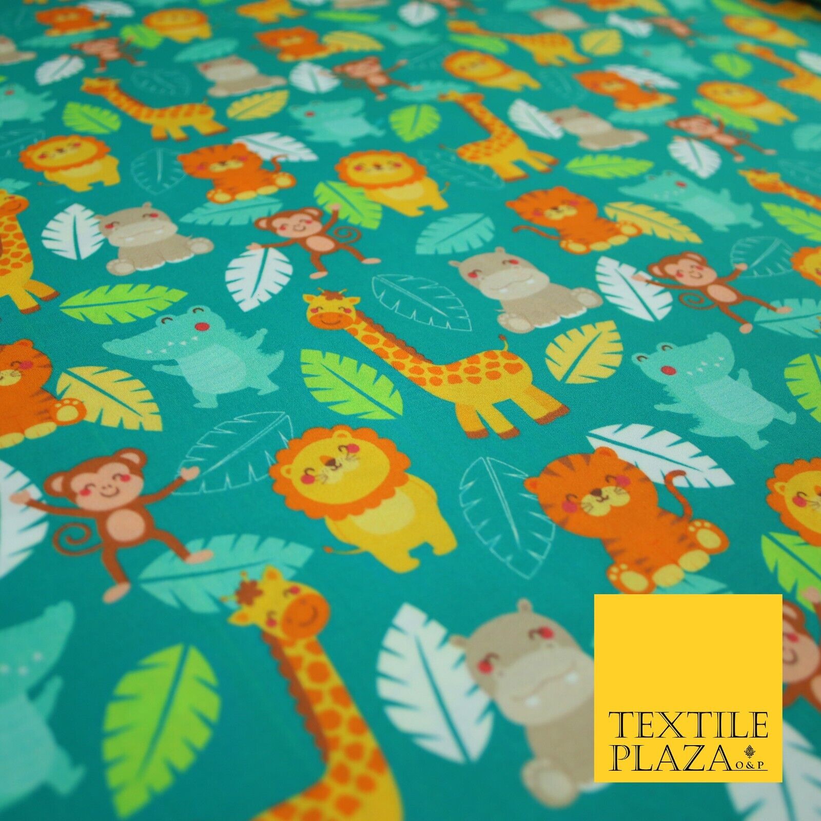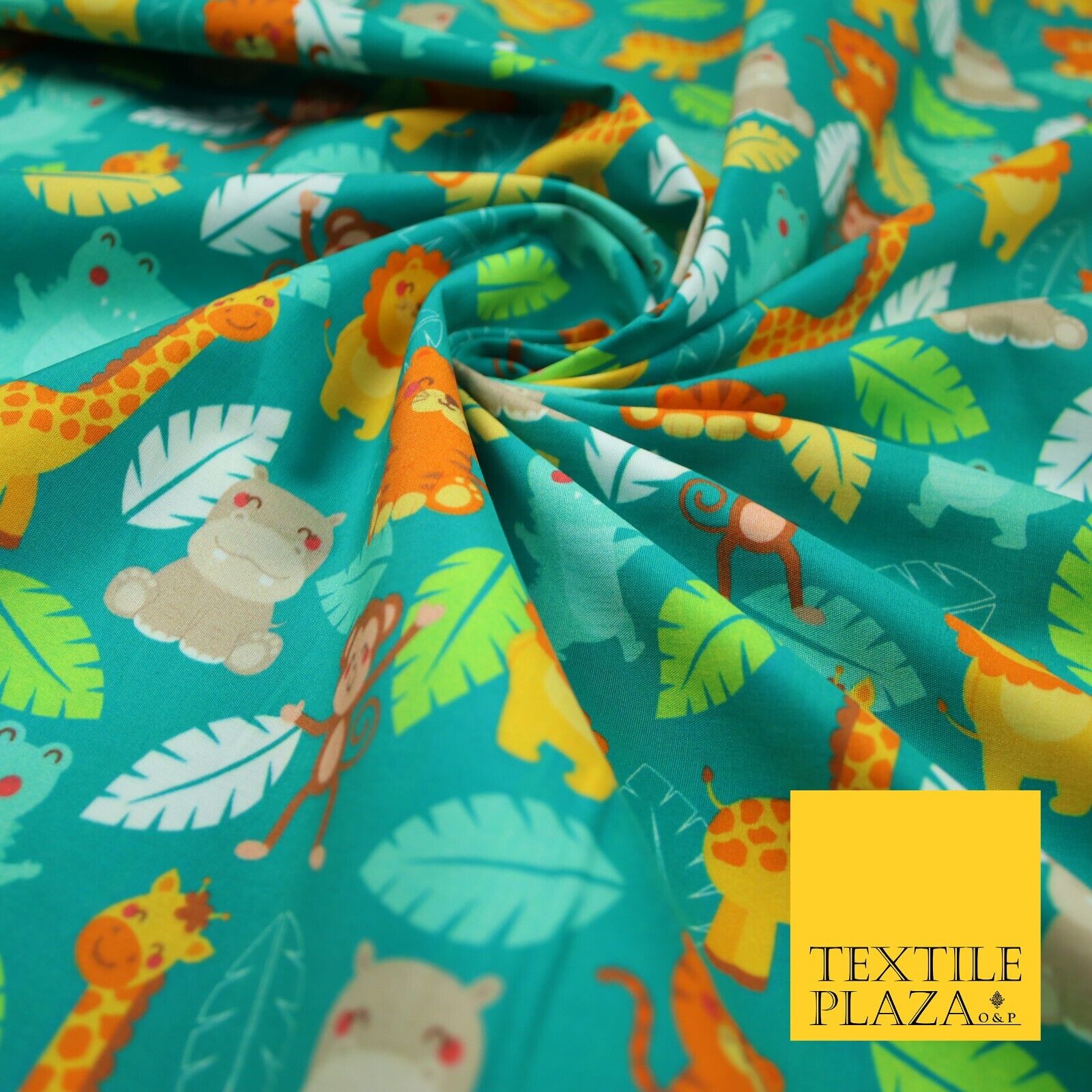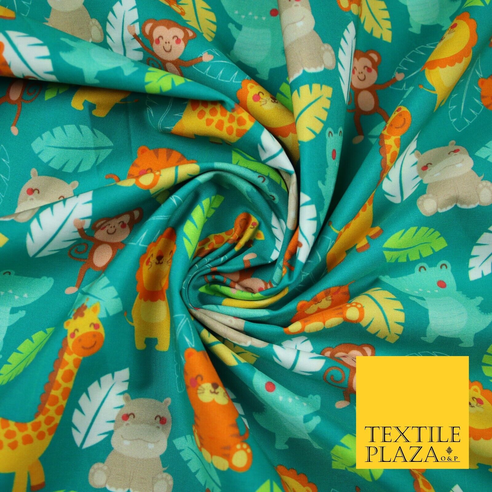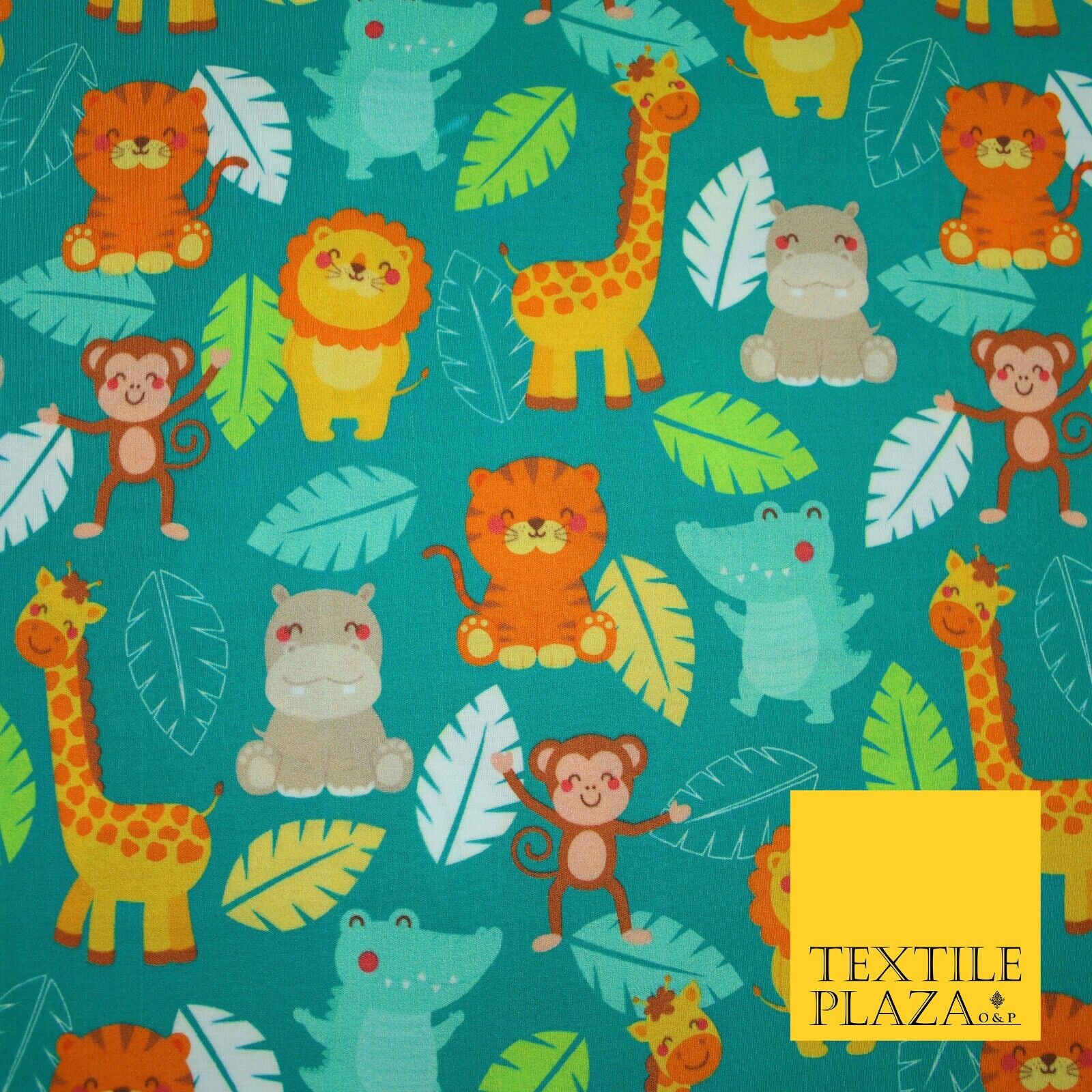 Zoo Animals Leafy Digital Print Cotton Fabric