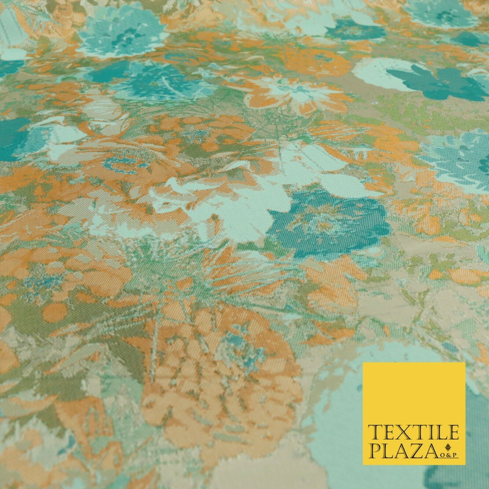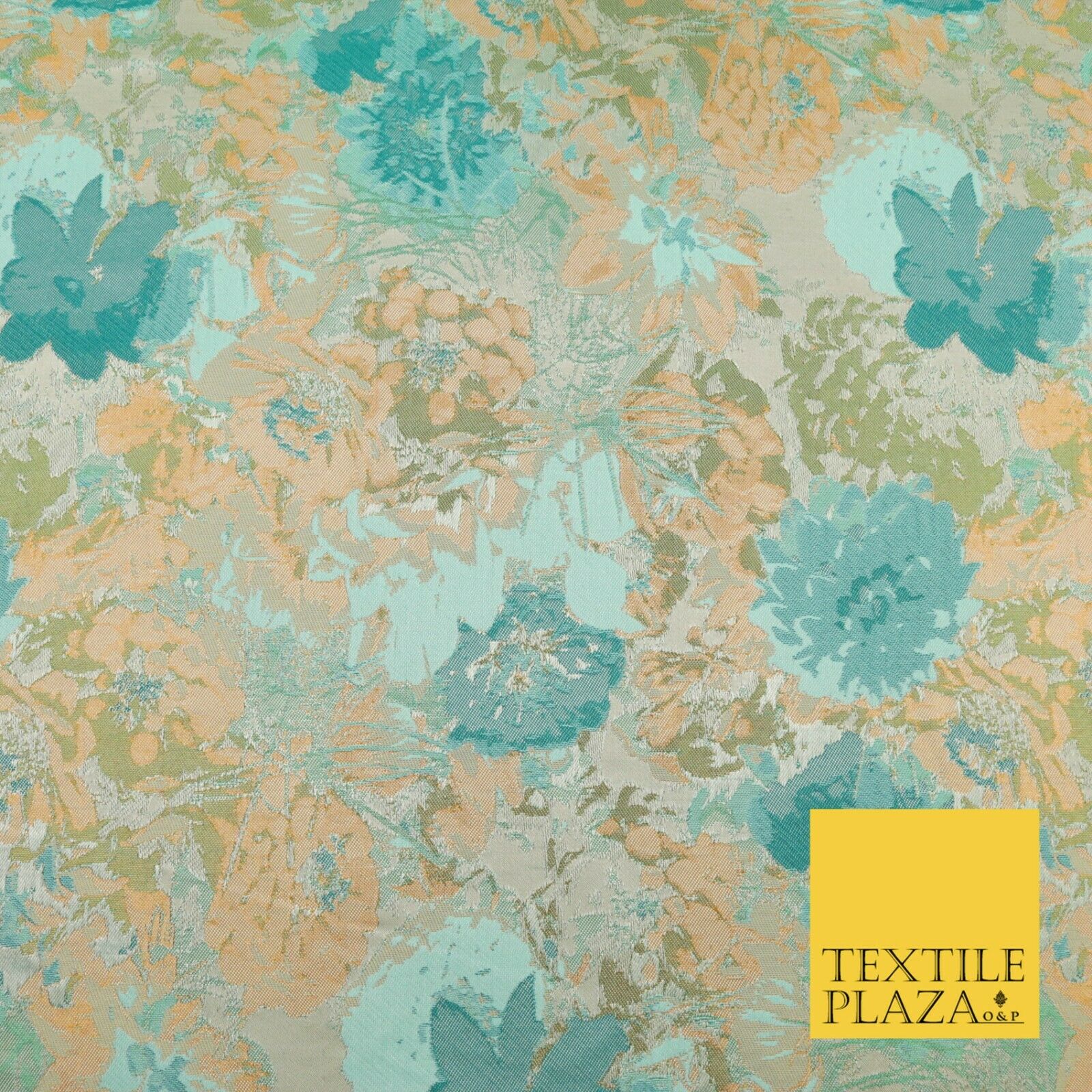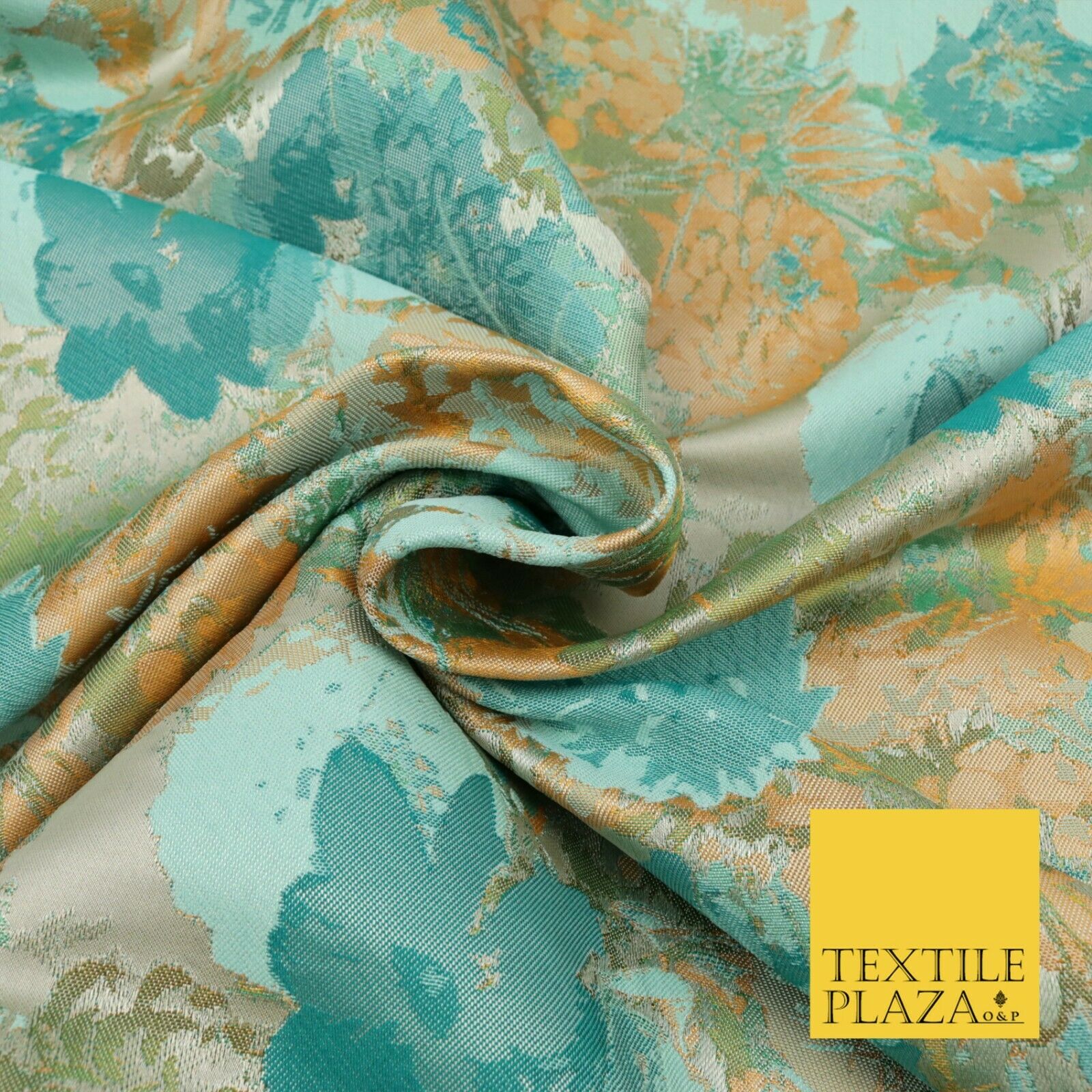 JADE TEAL Floral Gardenia Metallic Detail Brocade Dress Fabric Woven Fancy 1554