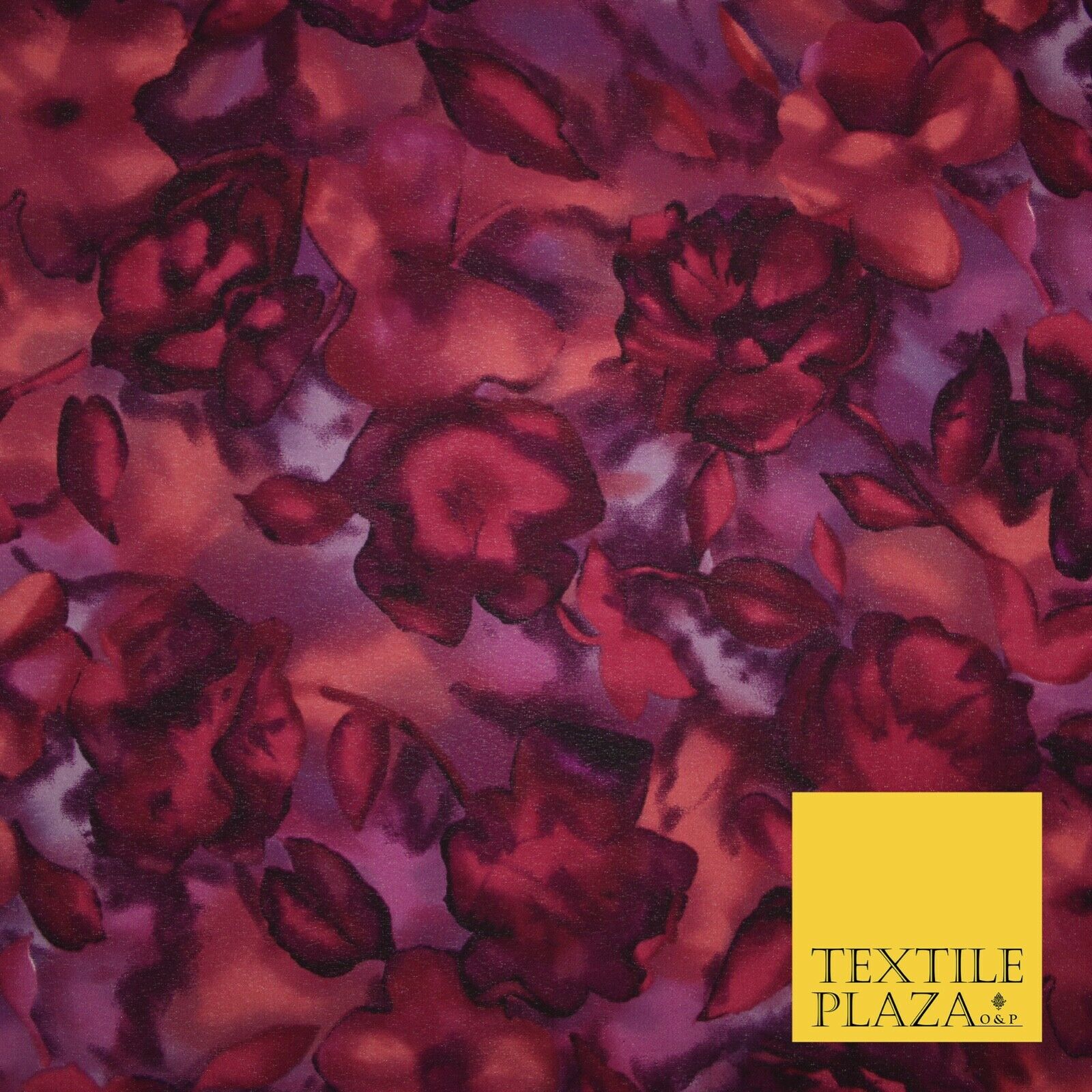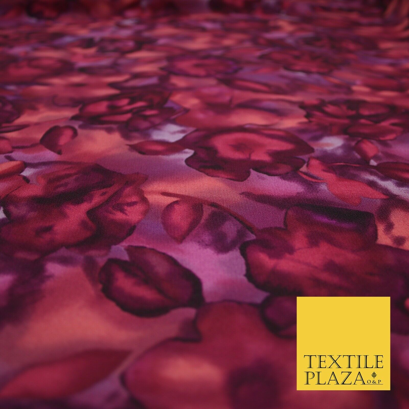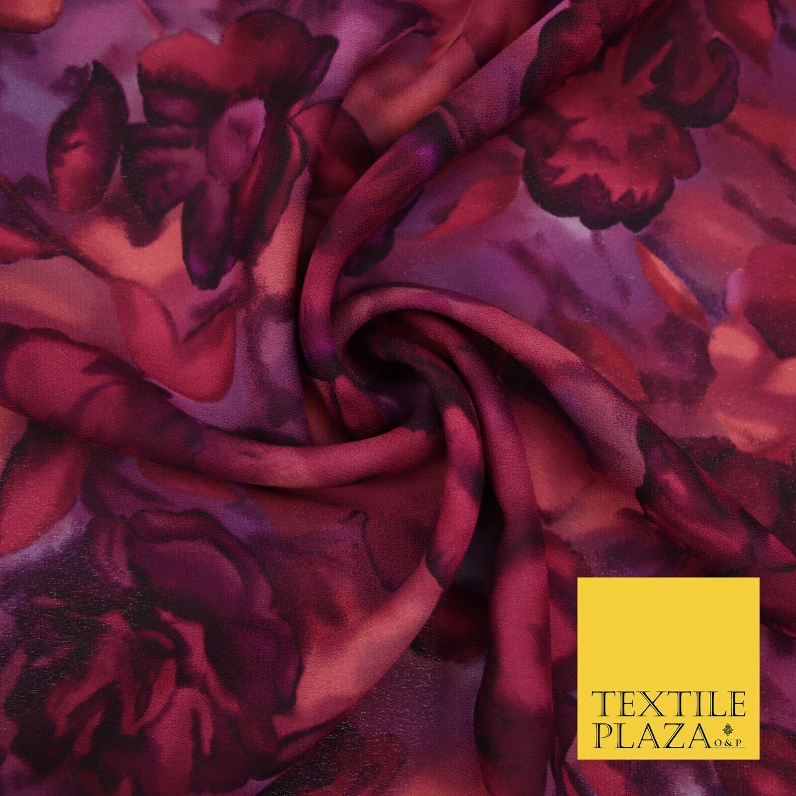 John Kaldor Abstract Watercolour Plum Floral Premium Georgette Dress Fabric 2629