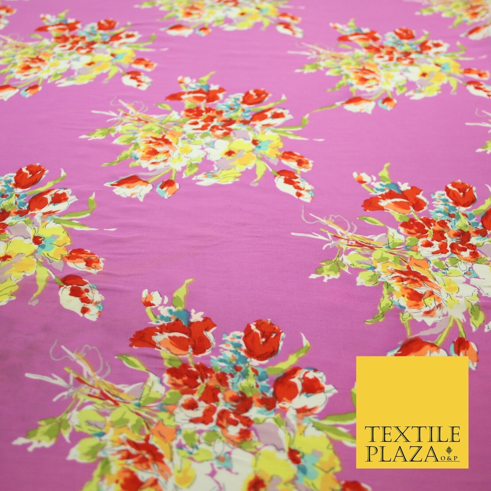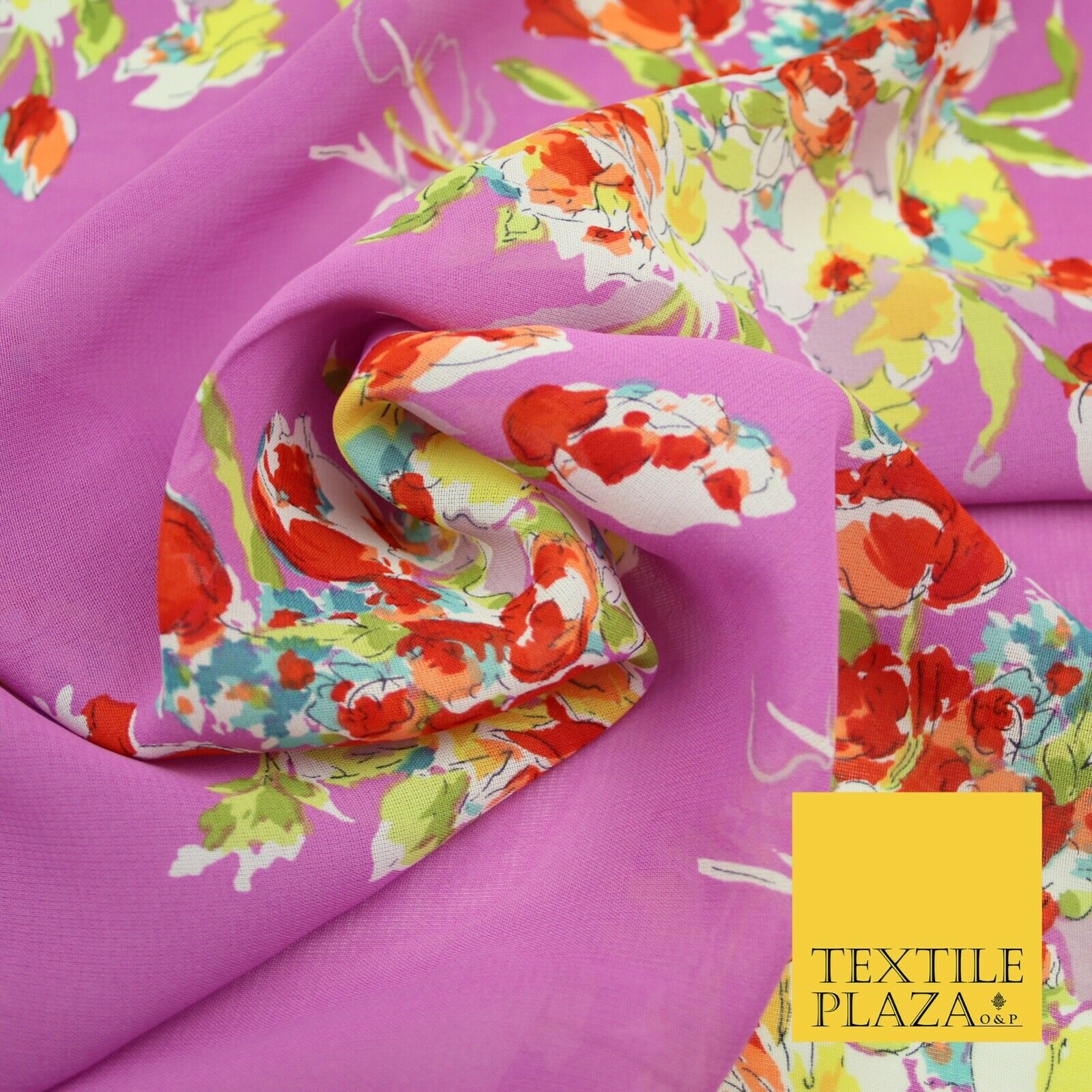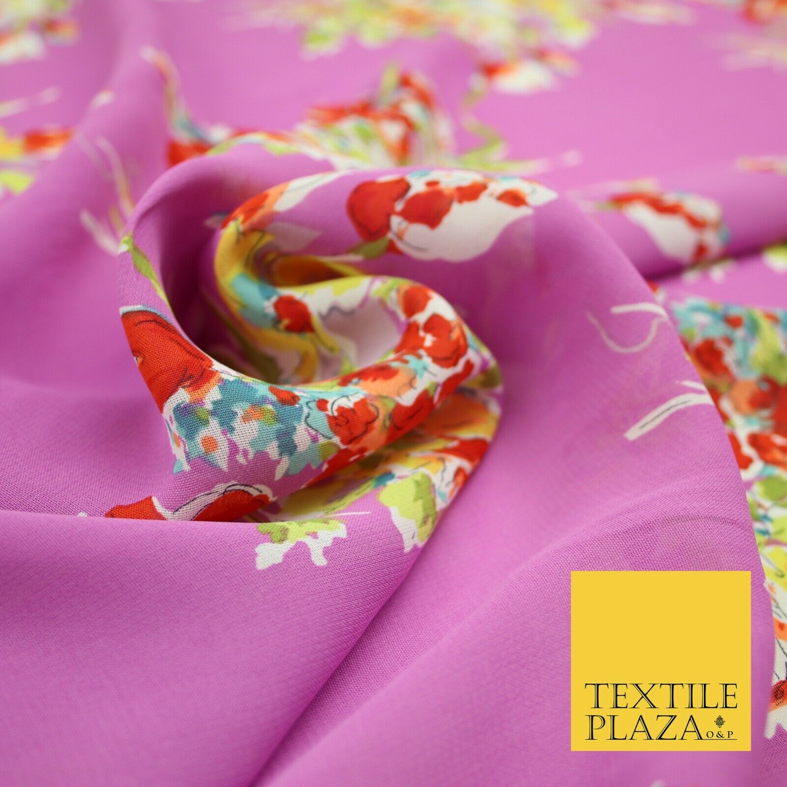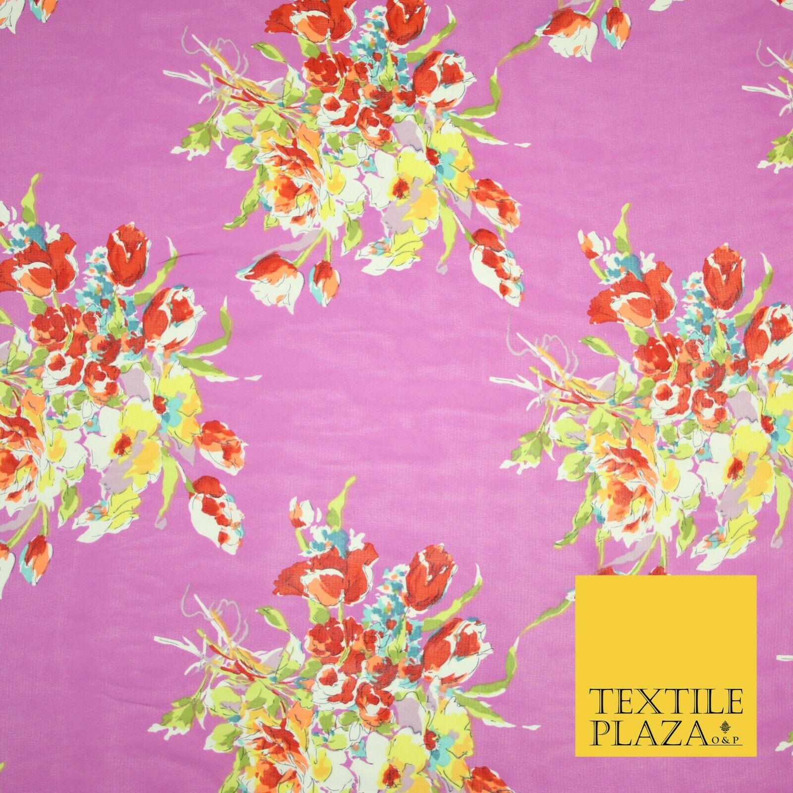 John Kaldor Pink Large Flower Bunch Fine Georgette Polyester Dress Fabric 2636