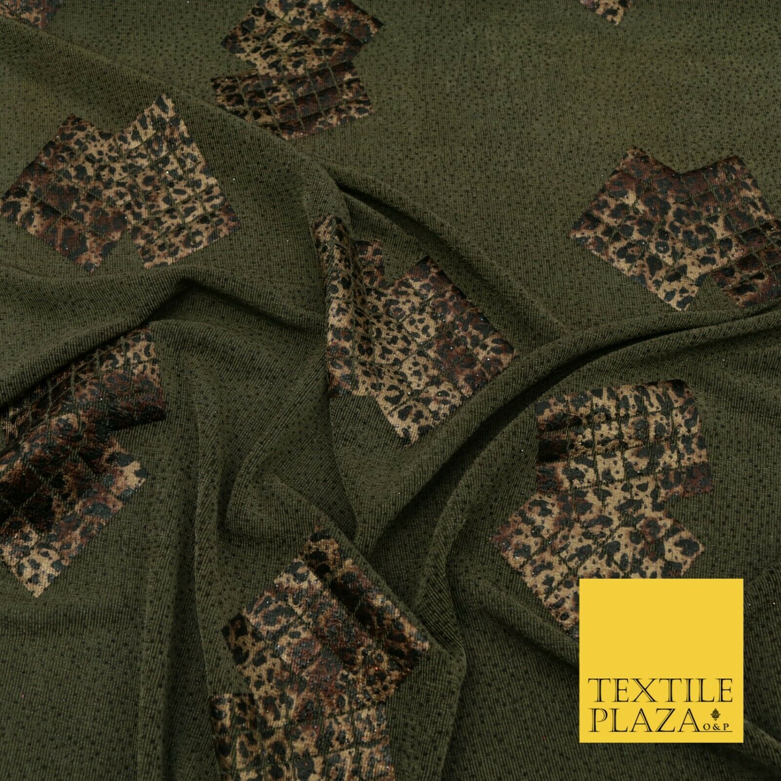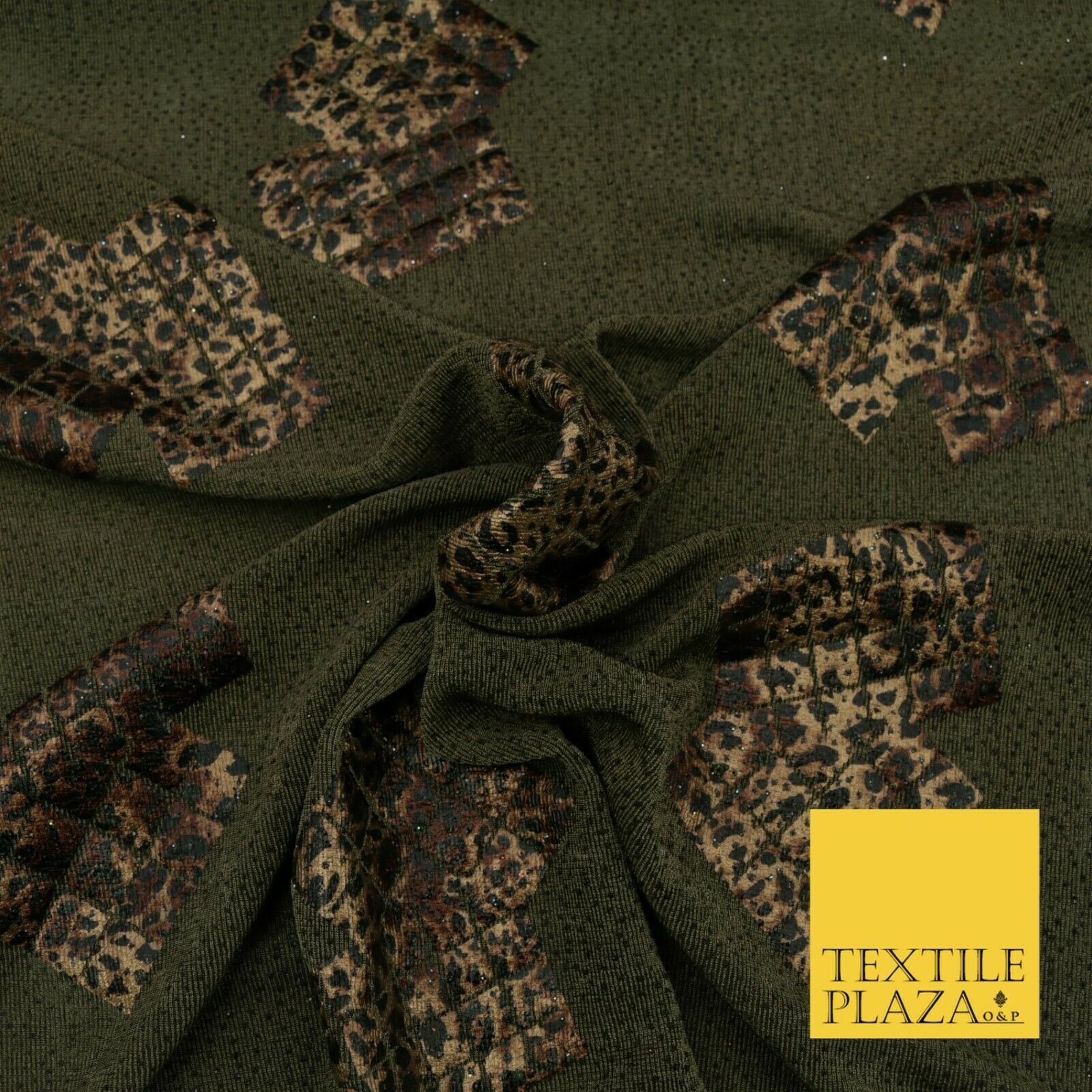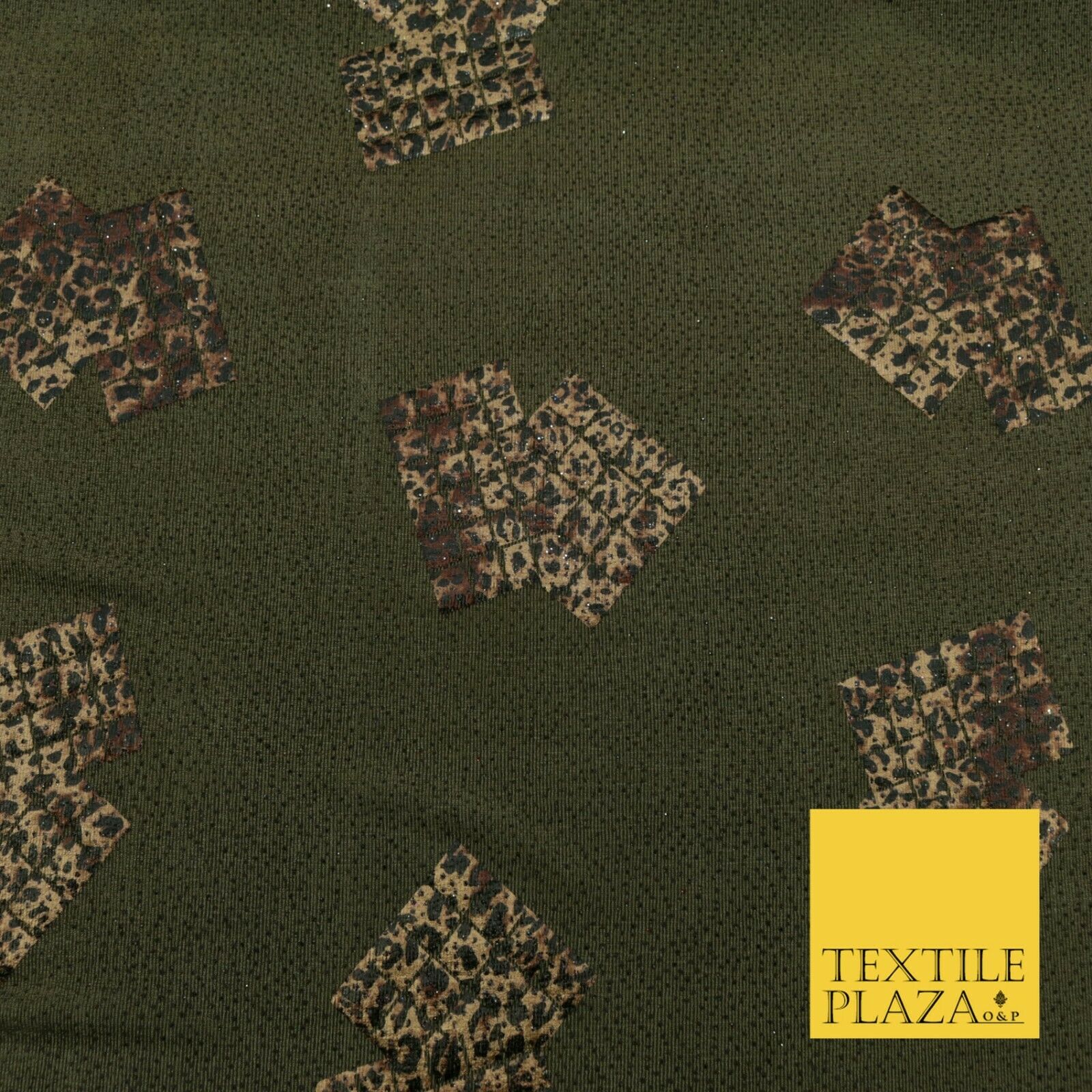 KHAKI GREEN Leopard Waffle Cube Metallic Glitter Stretch Jersey Fabric 59" 1578
