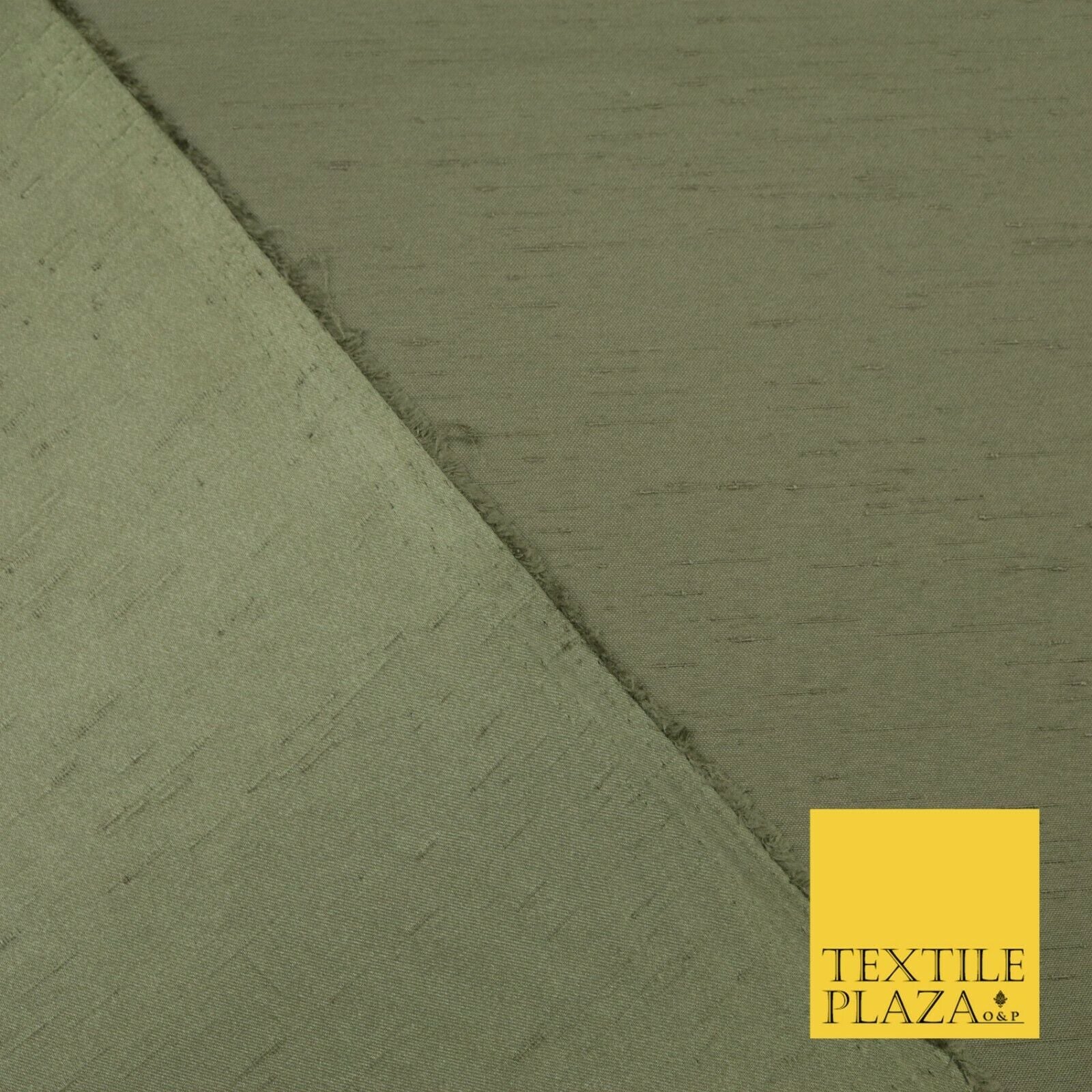 KHAKI GREEN Satin Backed Dupion SHANTUNG Raw Silk Fabric 100% Polyester 45" 1523