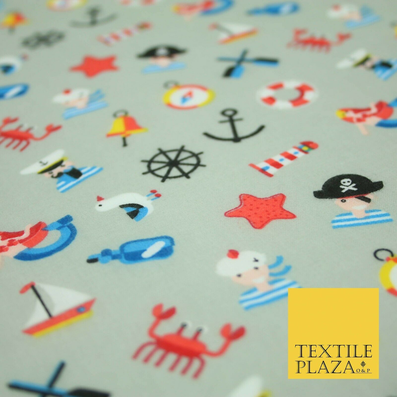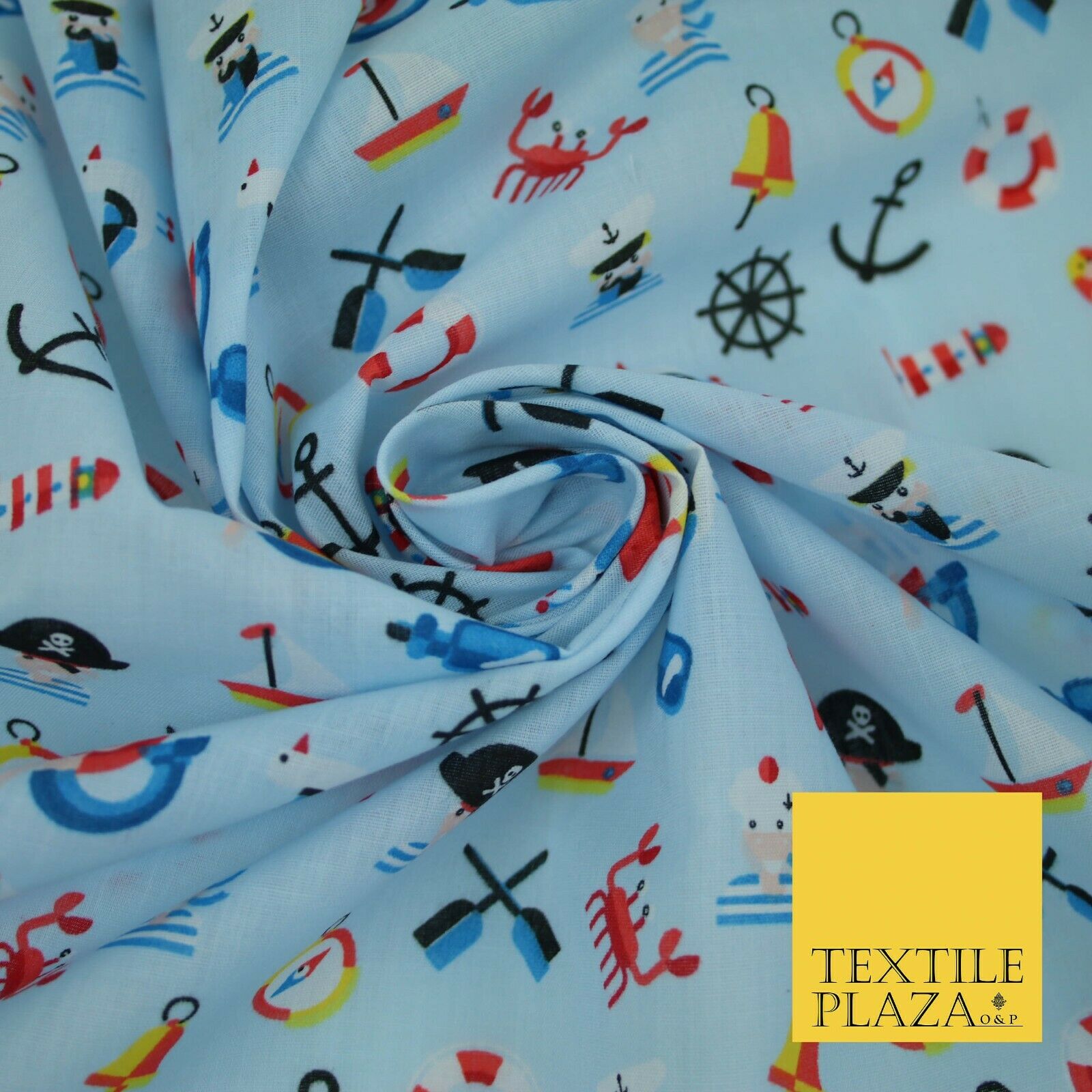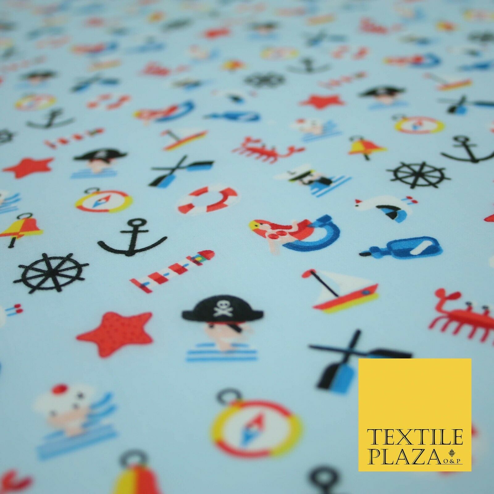 Kids Pirate Sailor Sea Anchor Nautical Printed Poly Cotton Fabric Polycotton 44"