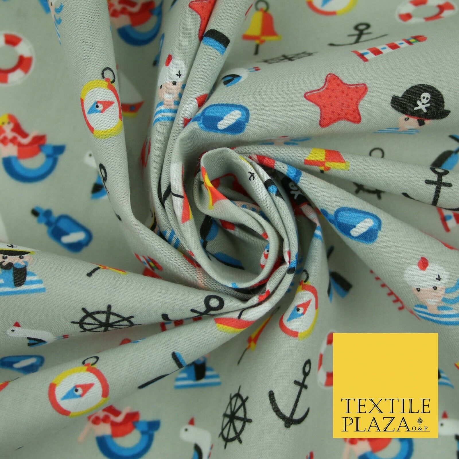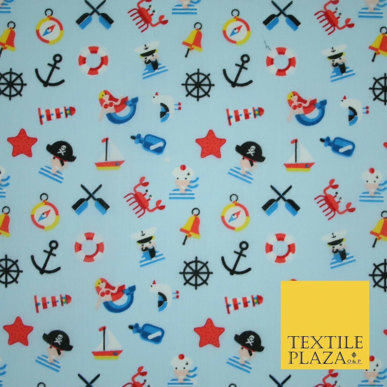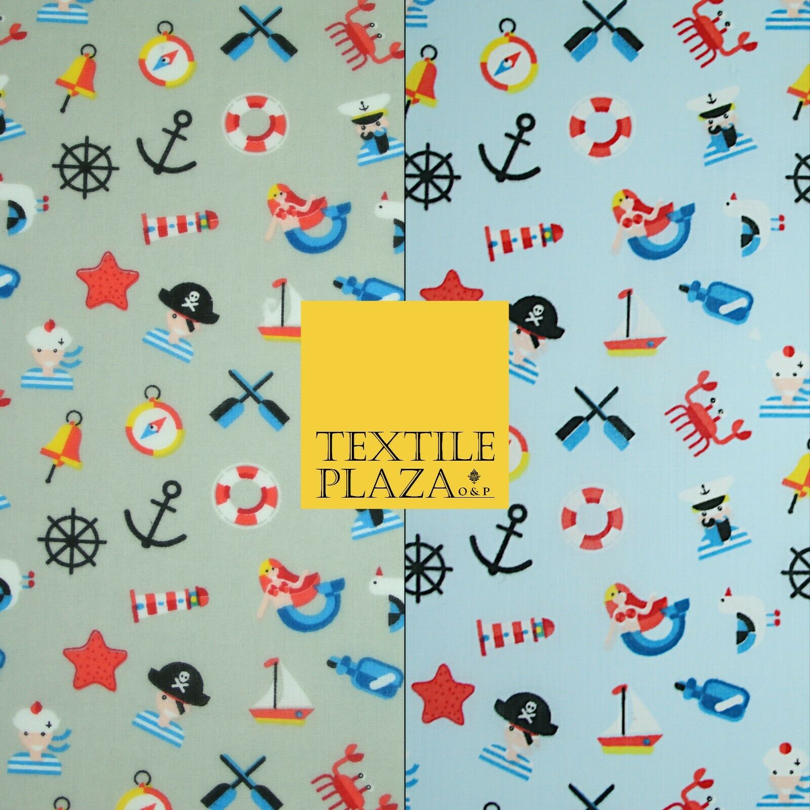 Kids Pirate Sailor Sea Anchor Nautical Printed Poly Cotton Fabric Polycotton 44"