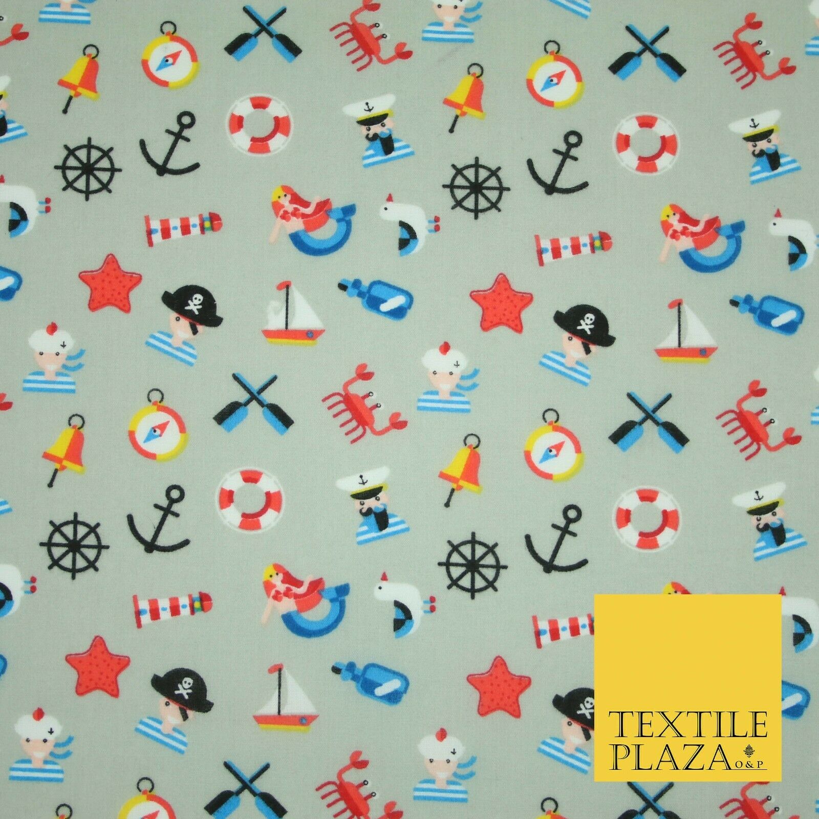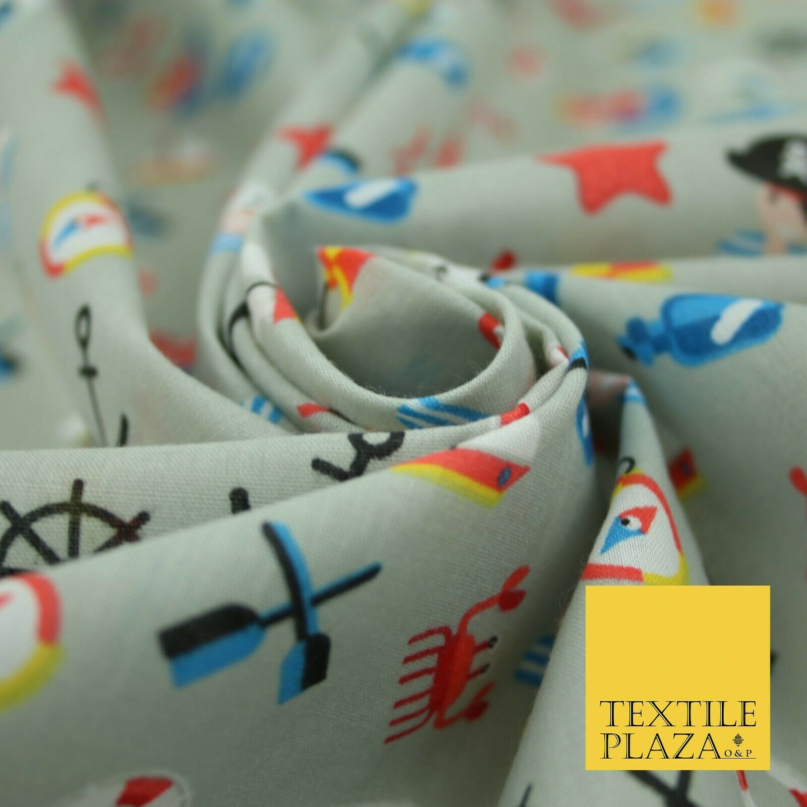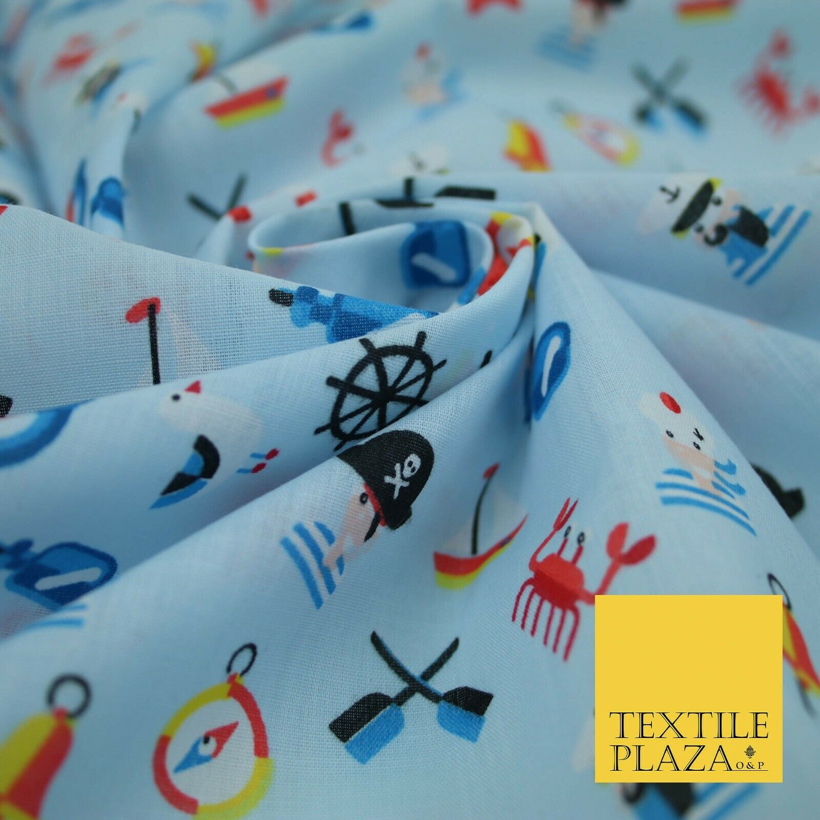 Kids Pirate Sailor Sea Anchor Nautical Printed Poly Cotton Fabric Polycotton 44"