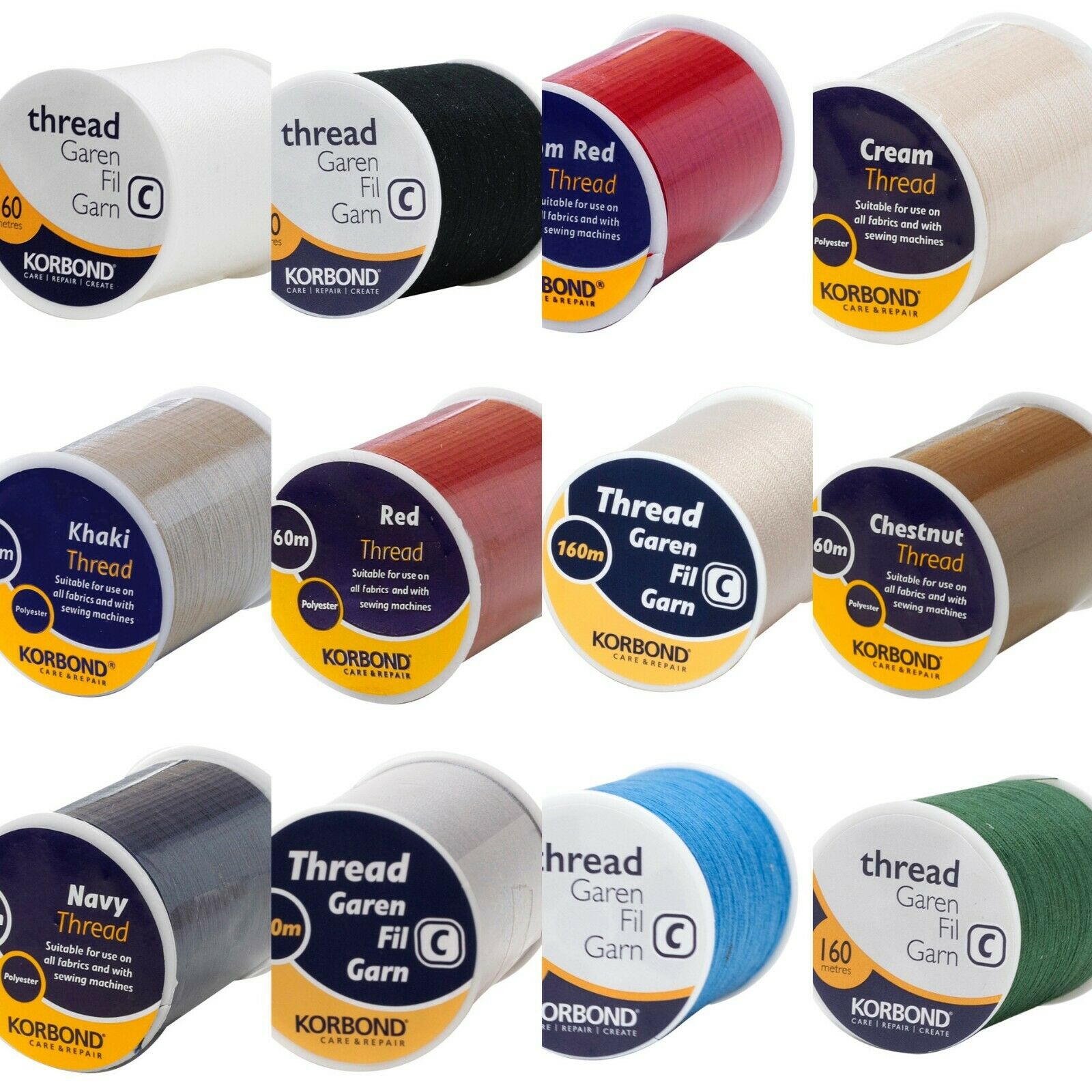 KORBOND 100% Polyester Thread 160m Reels No Shrinkage Sewing Repairs 12 COLOURS