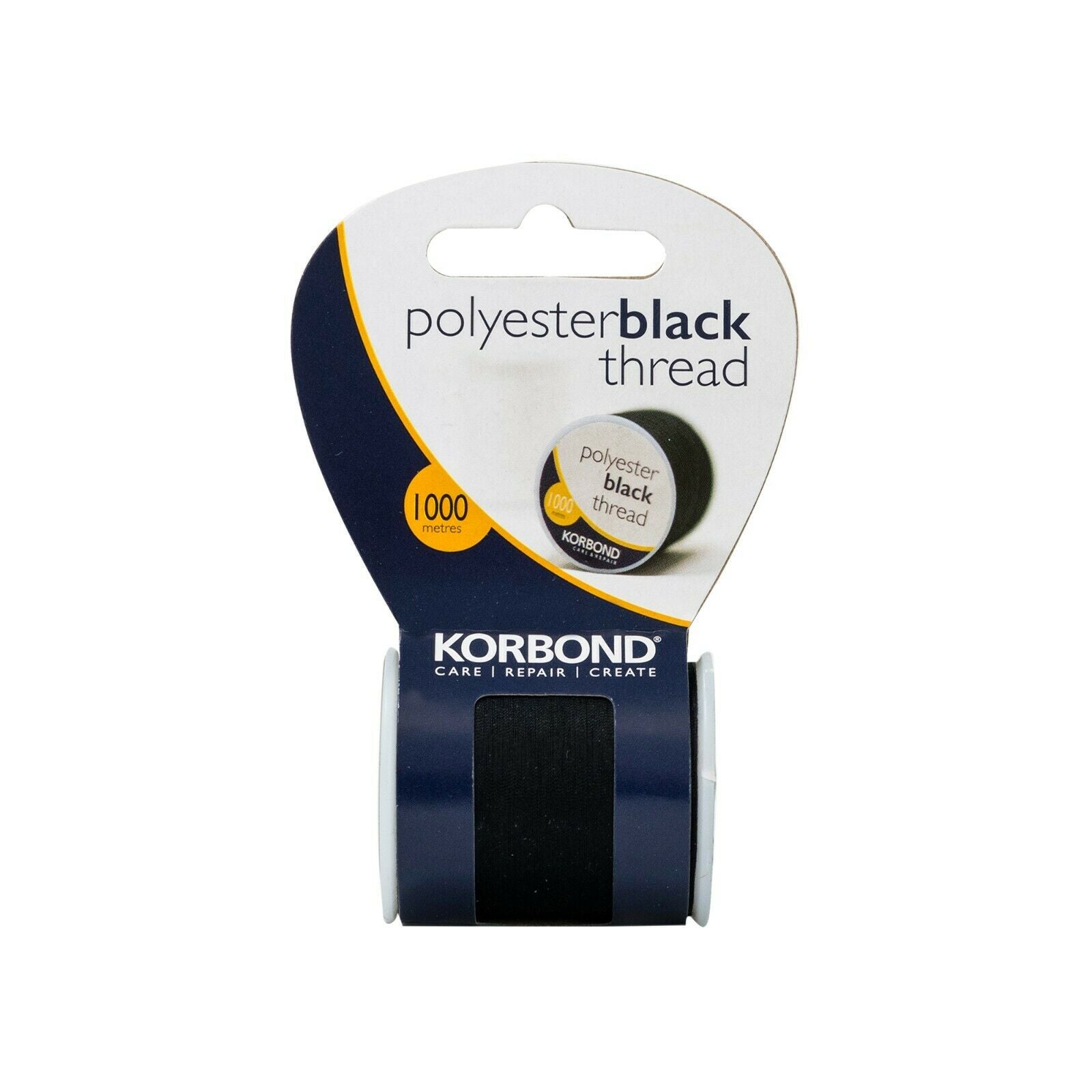 KORBOND 1000m 3280ft BLACK Coated Strong 100% Polyester Thread Sewing 190001