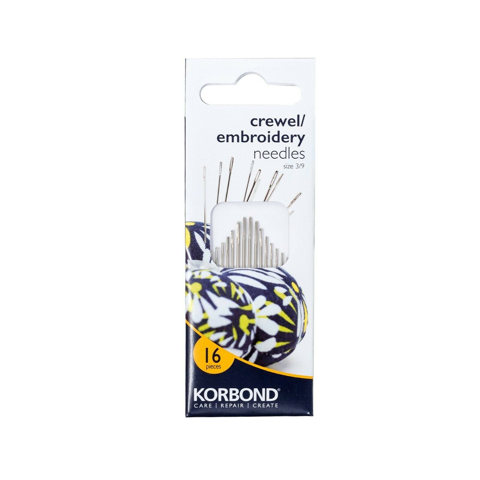 KORBOND 16 Pieces Crewel / Embroidery Needles Size 3/9 Long Eyelet Sewing 110241