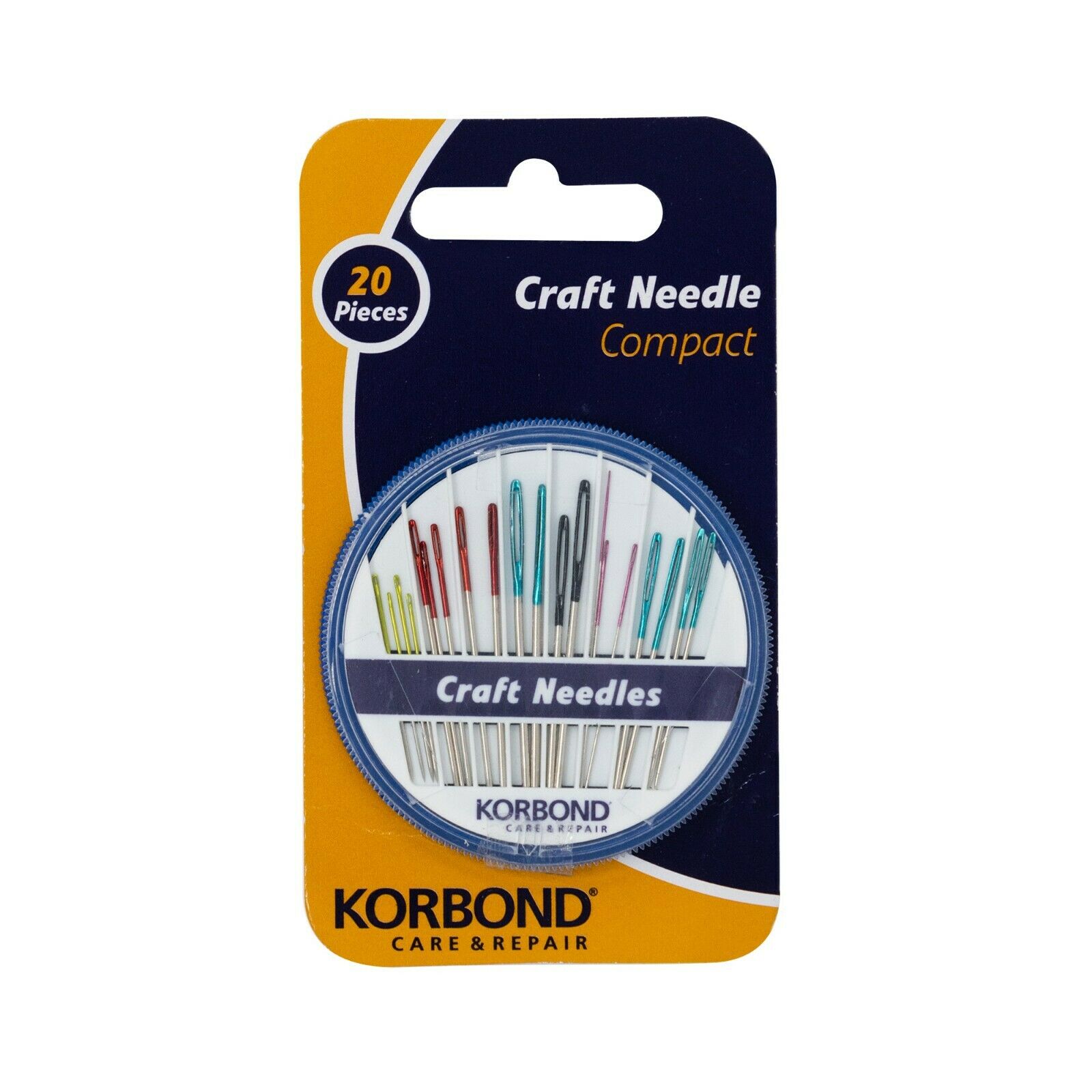 KORBOND 20 Piece Craft Needle Compact Set with Case Assorted Sizes Uses 110255