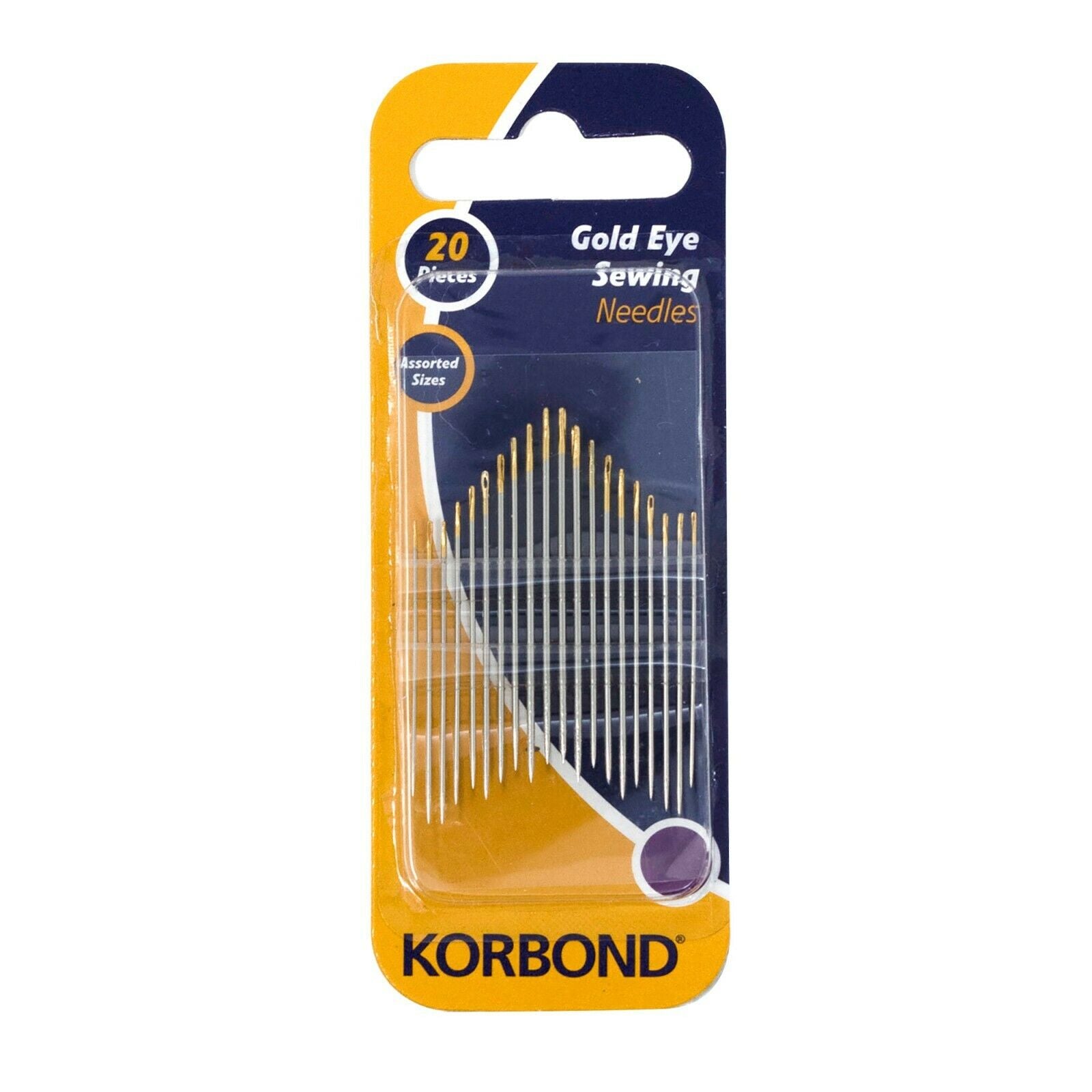 KORBOND 20 Pieces Gold Eye Sewing Needles Assorted Fine Embellishment 110249