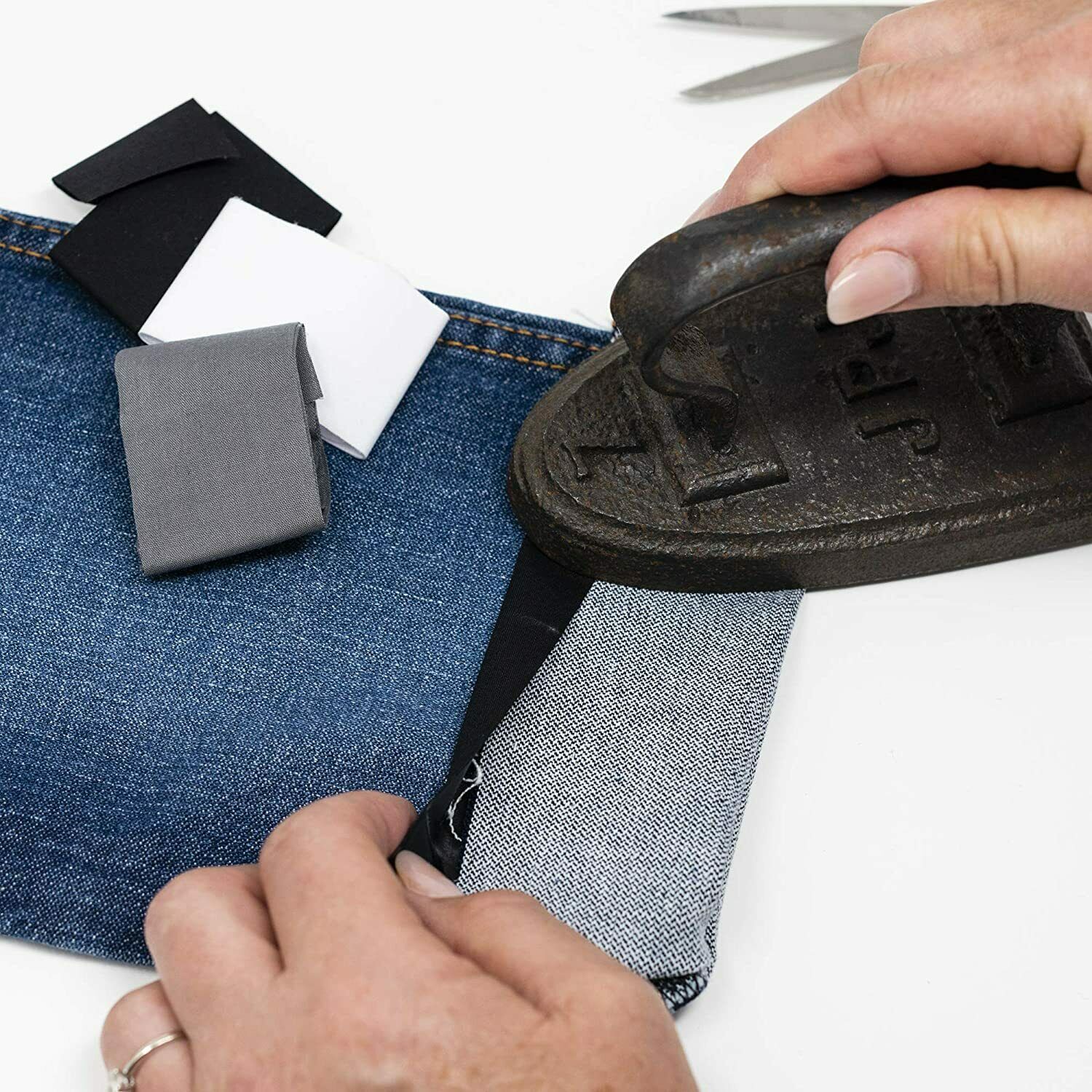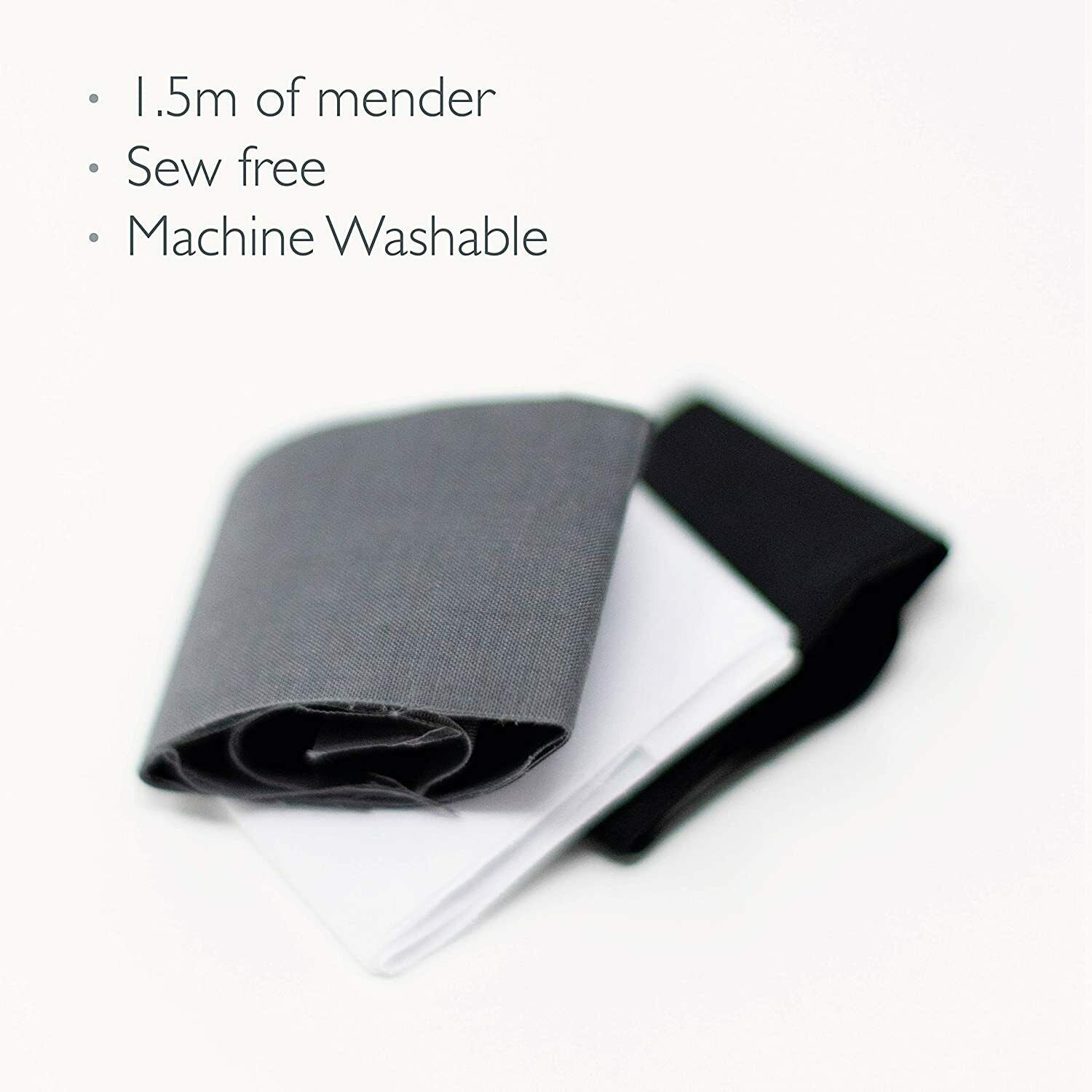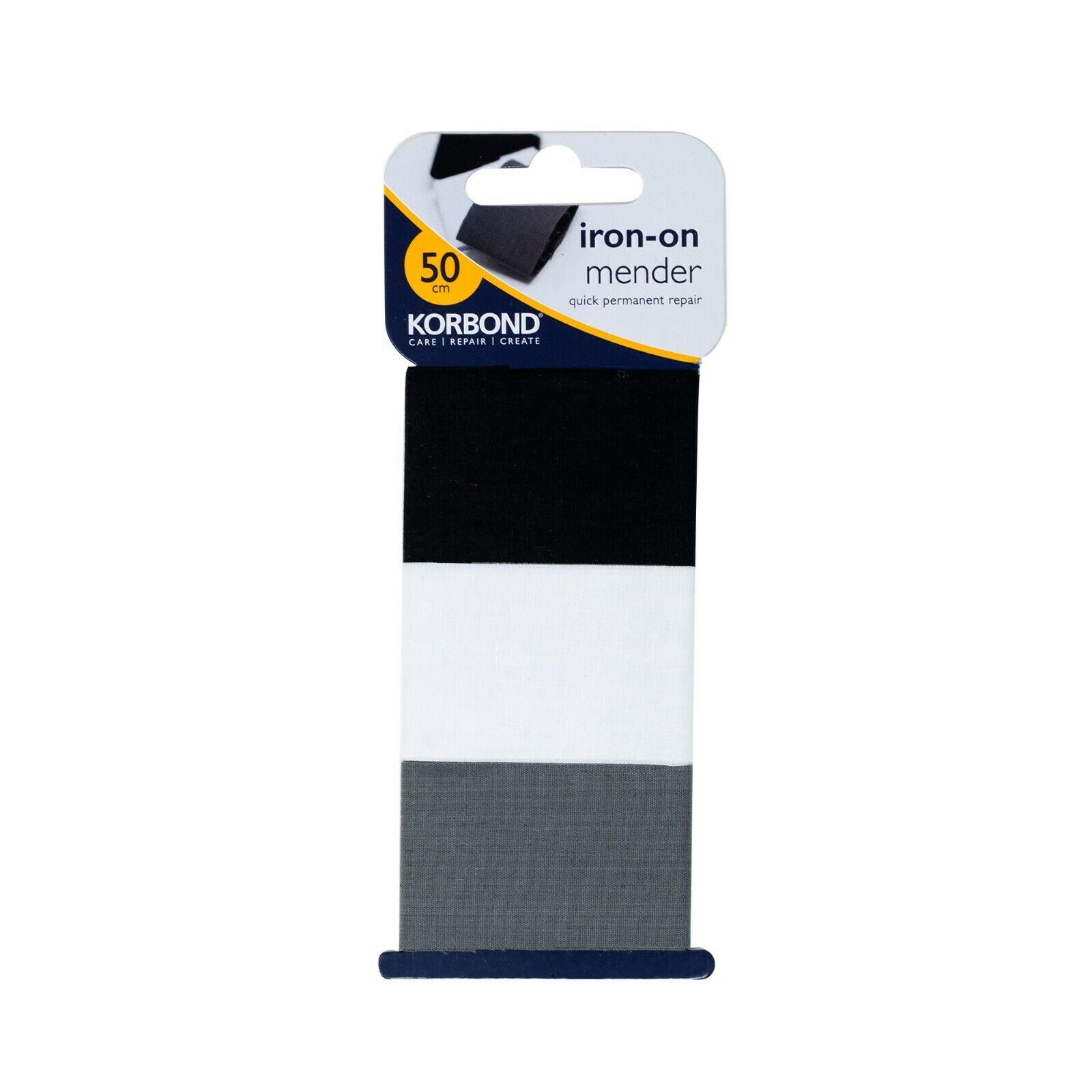 KORBOND 3.8cm x 50cm 3 Pack Black, White & Grey Iron On Mender Tape Patch 110084