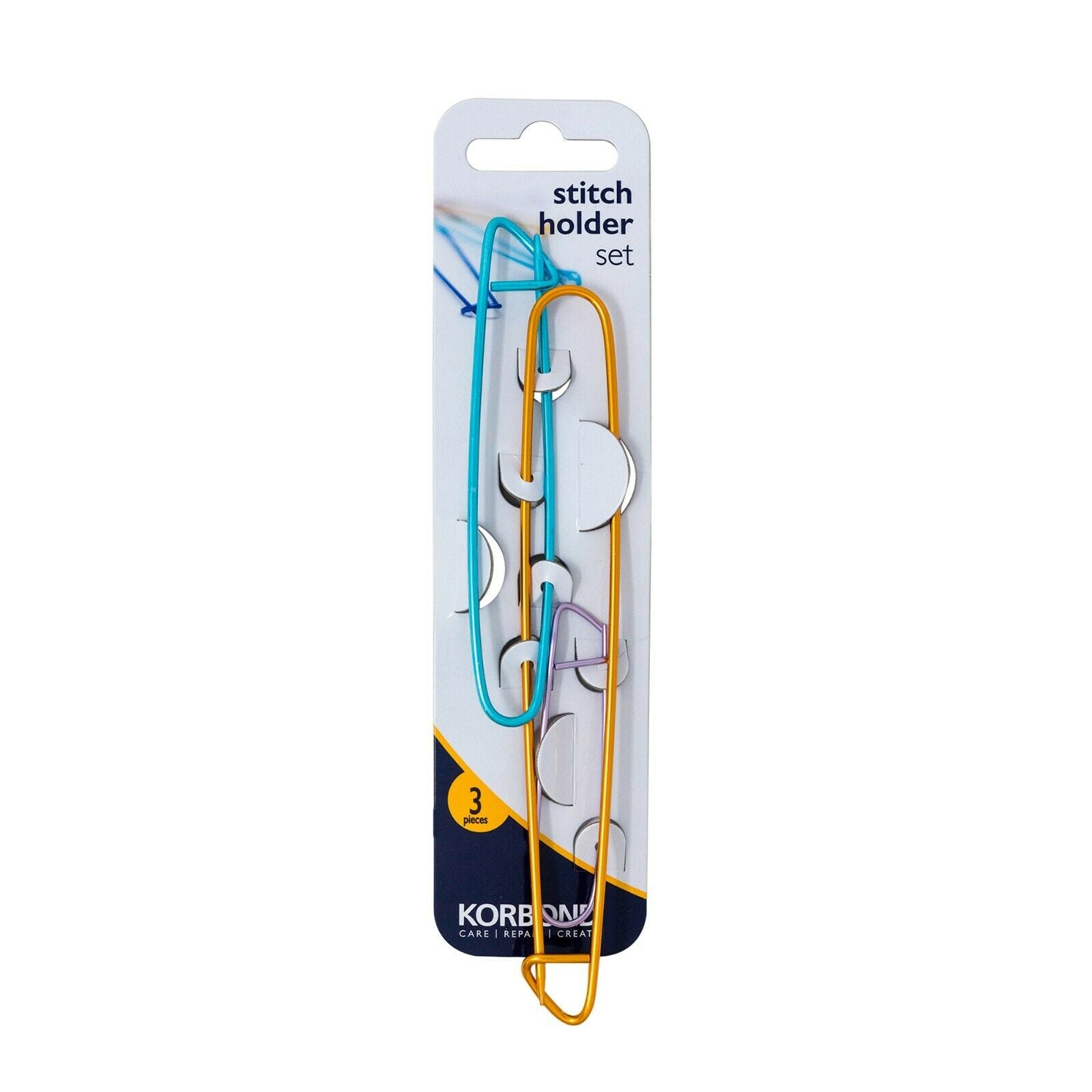 KORBOND 3 Piece Metal Stitch Holder Tool Set Knitting Sewing Crochet 180049