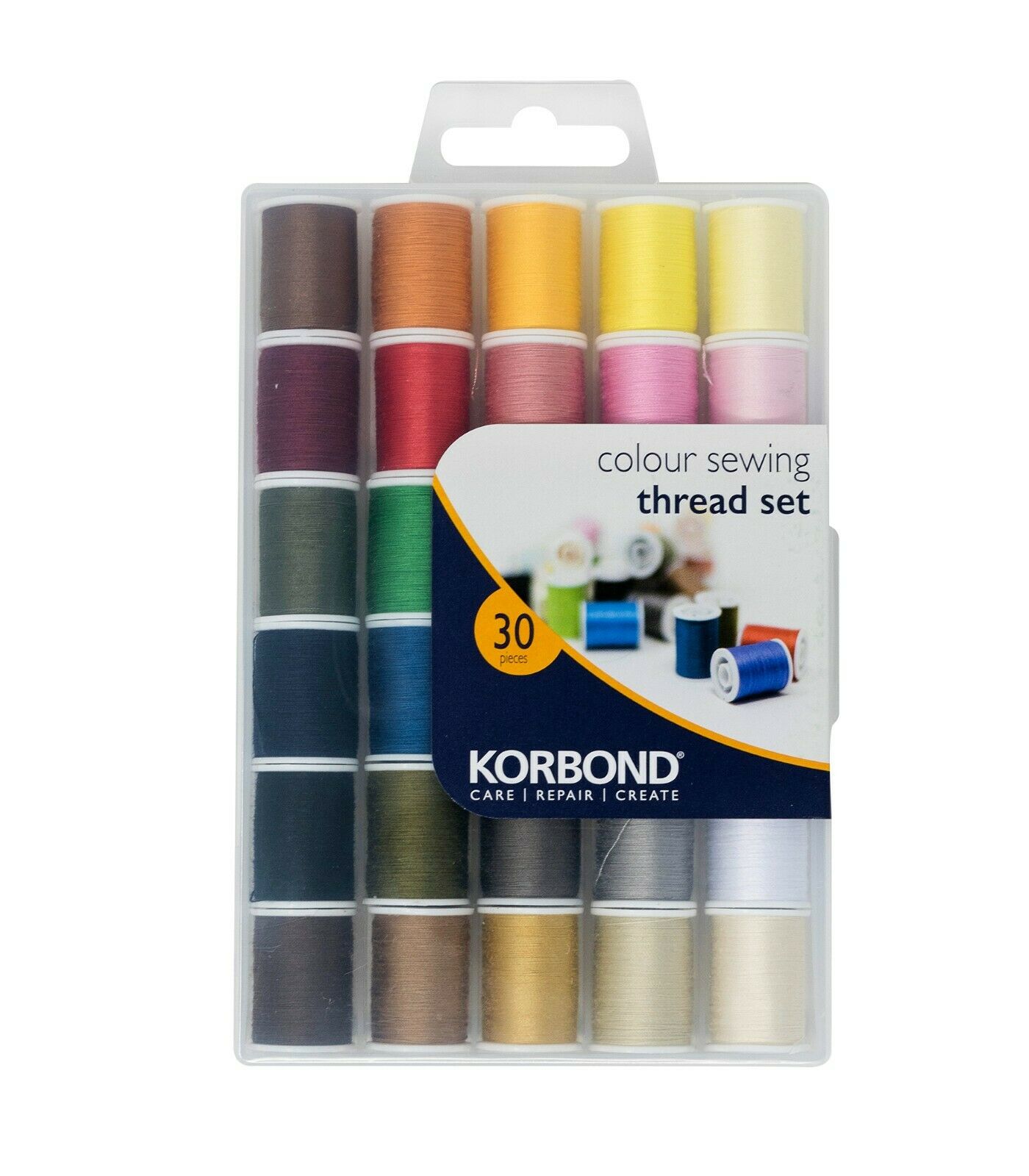 KORBOND 30 Pieces Colour Sewing Thread Set with Case 100% Spun Polyester 110780