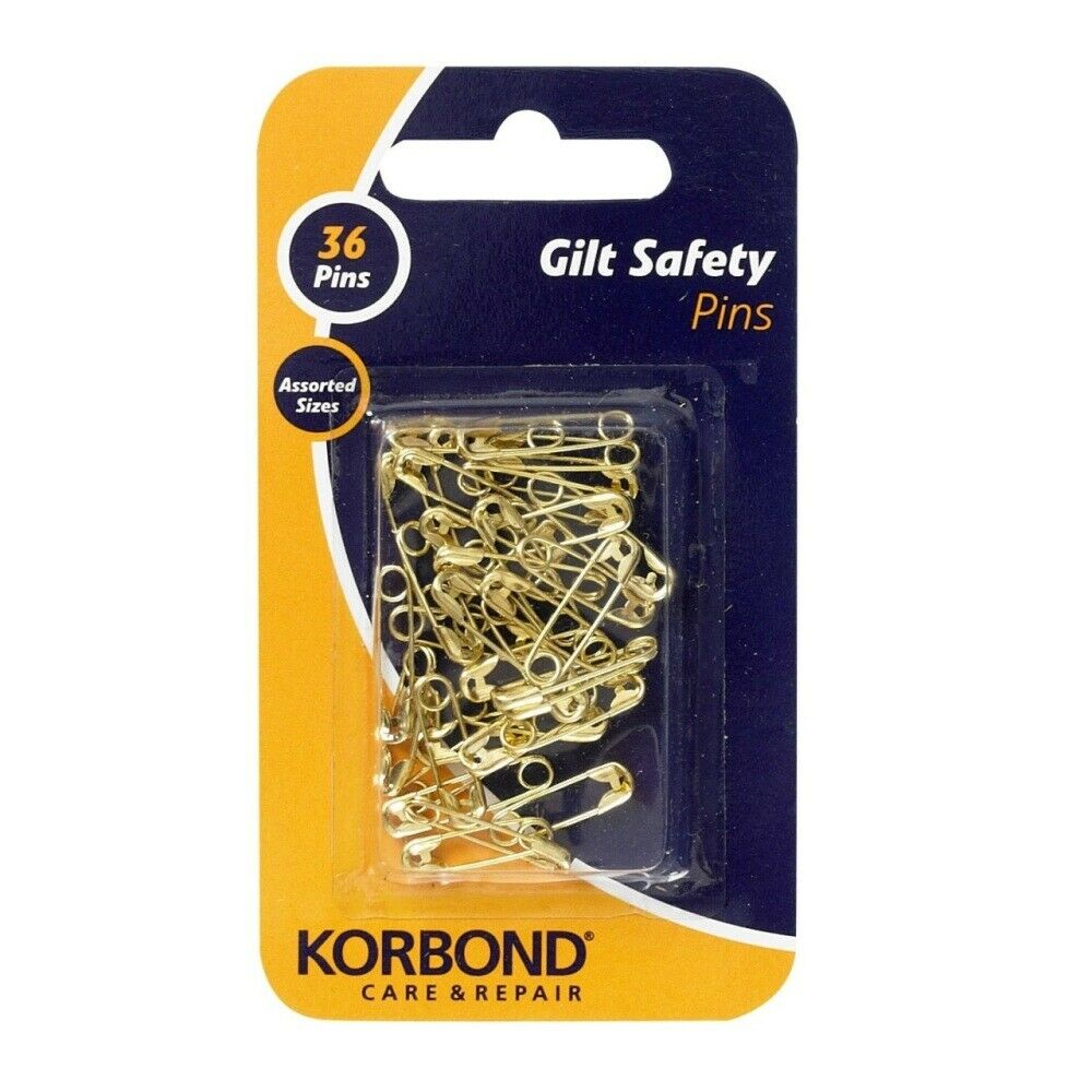 KORBOND 36 Pieces Gilt Safety Pins Assorted Sizes for Fine Light Fabrics 110192