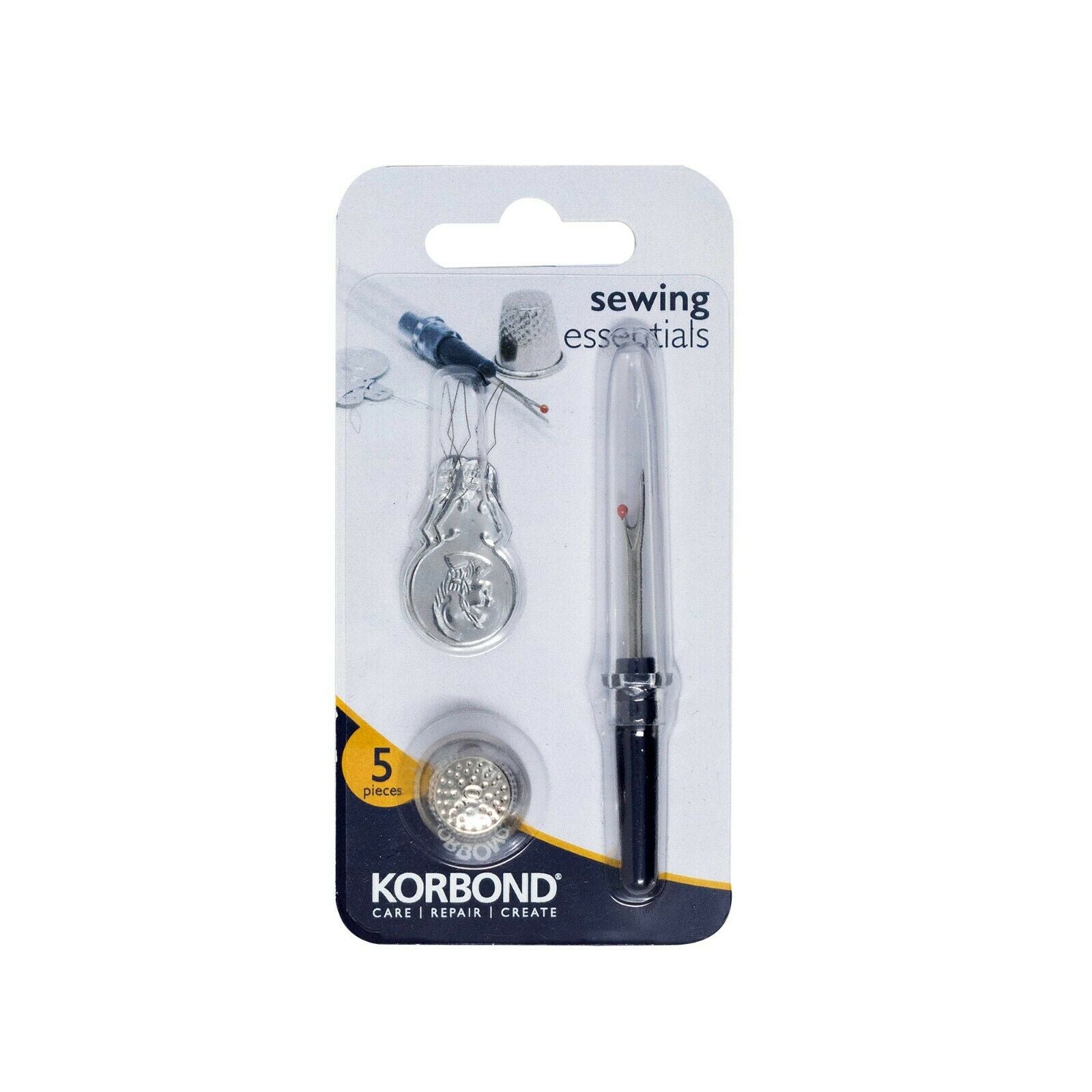 KORBOND 5 Piece Sewing Essentials Thimble / Stitch Ripper / Threaders 108092