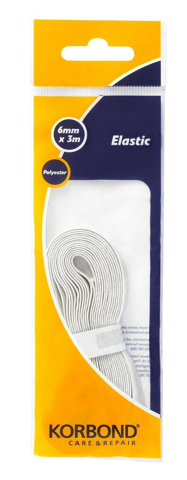 KORBOND 6mm x 3m WHITE Flat Woven Sewing Elastic Polyester Durable Repair 110370