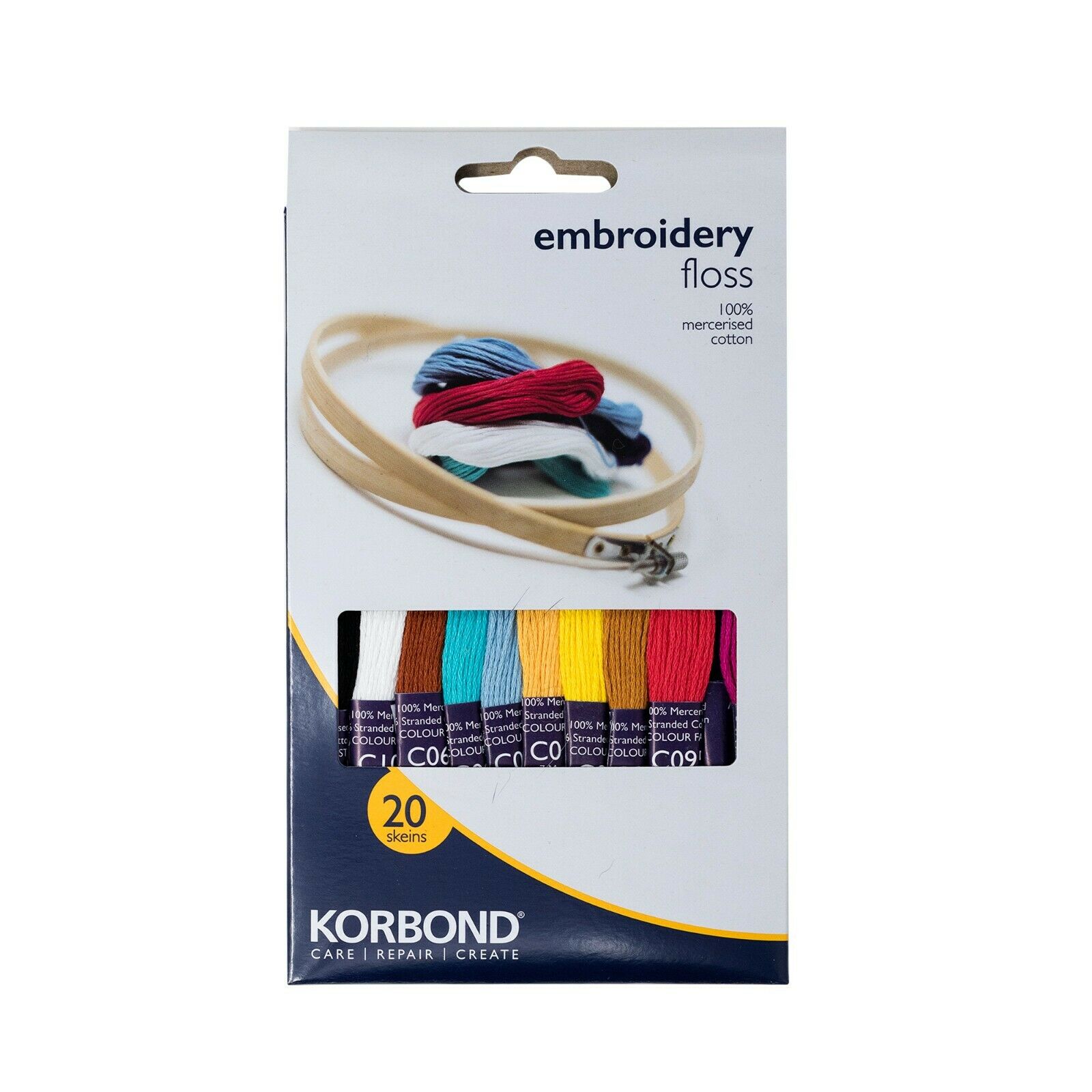 KORBOND Embroidery Floss - 20 Skeins 100% Mercerised Cotton Crafting 160950