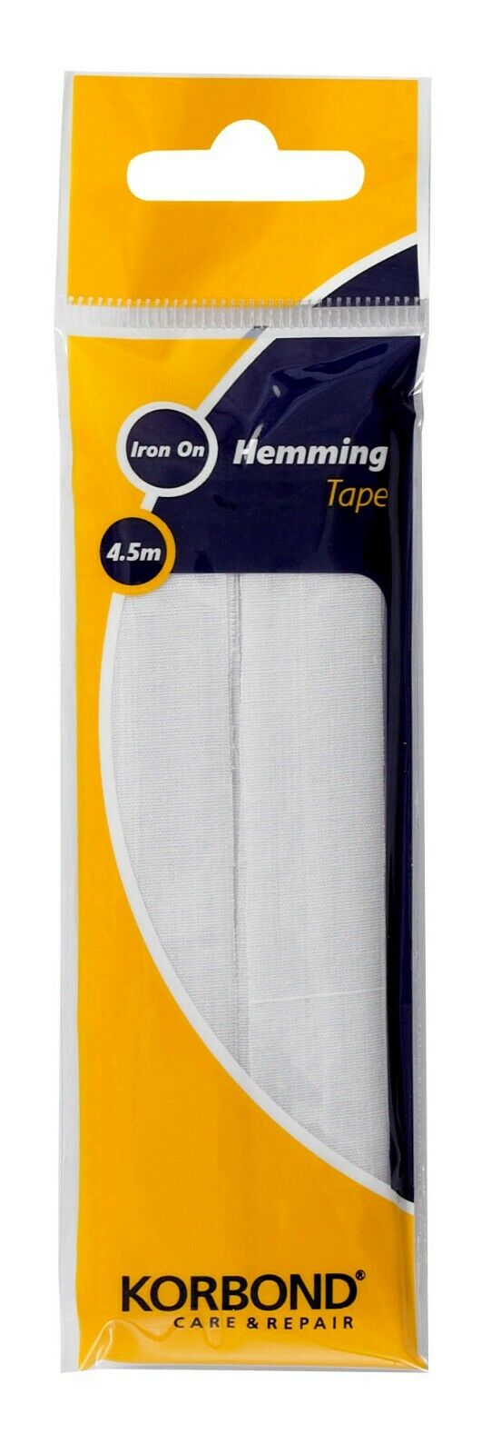 KORBOND Hemming Tape 4.5m - WHITE - Iron On Turning Up Trouser Skirt Hems 110031