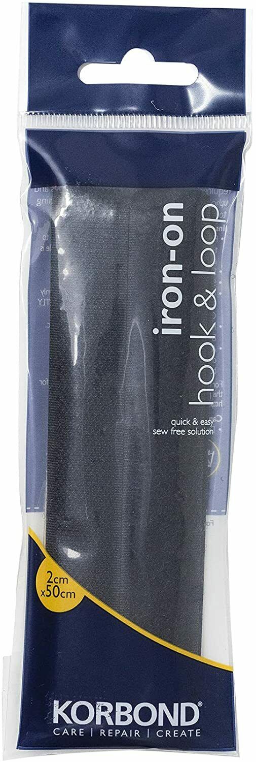 KORBOND Hook & Loop Iron On BLACK 2cm x 50cm Furnishing Upholstery Zip 110113