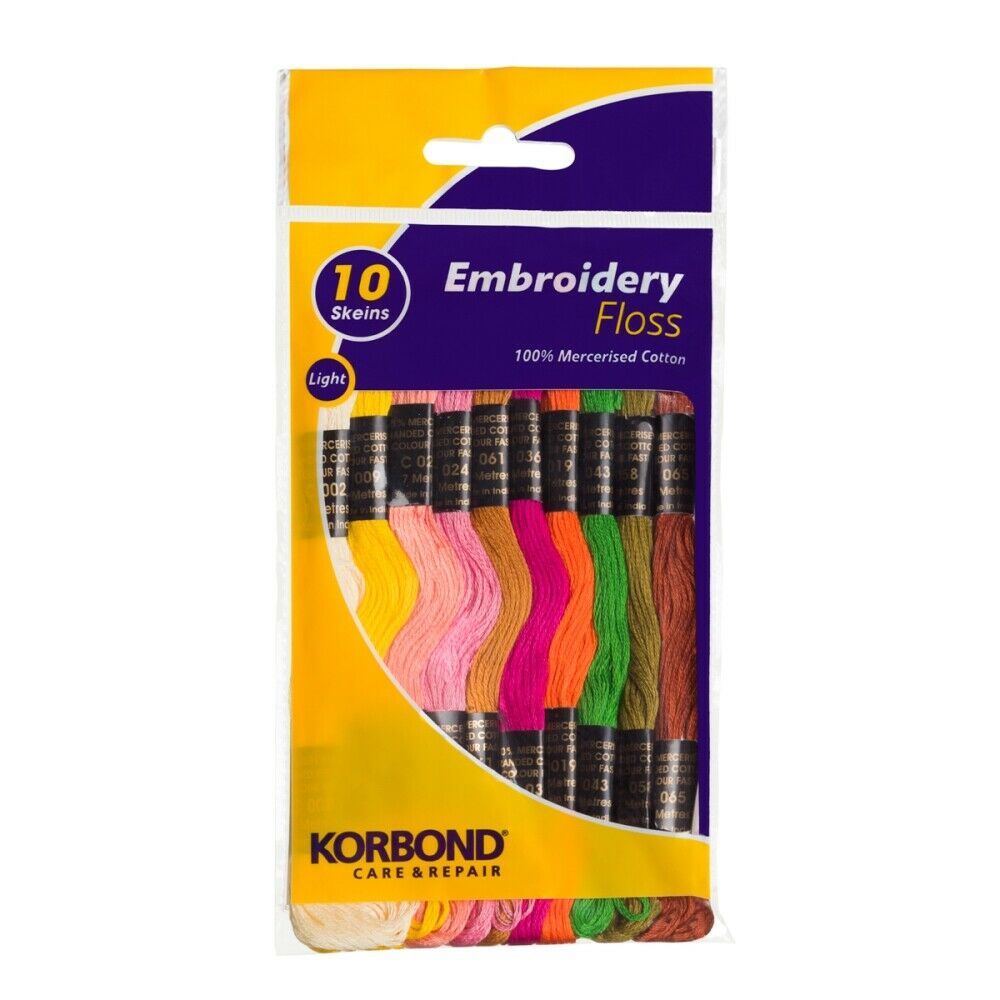 KORBOND Light Embroidery Floss 10 Skeins 100% Mercerised Cotton Crafting 160951
