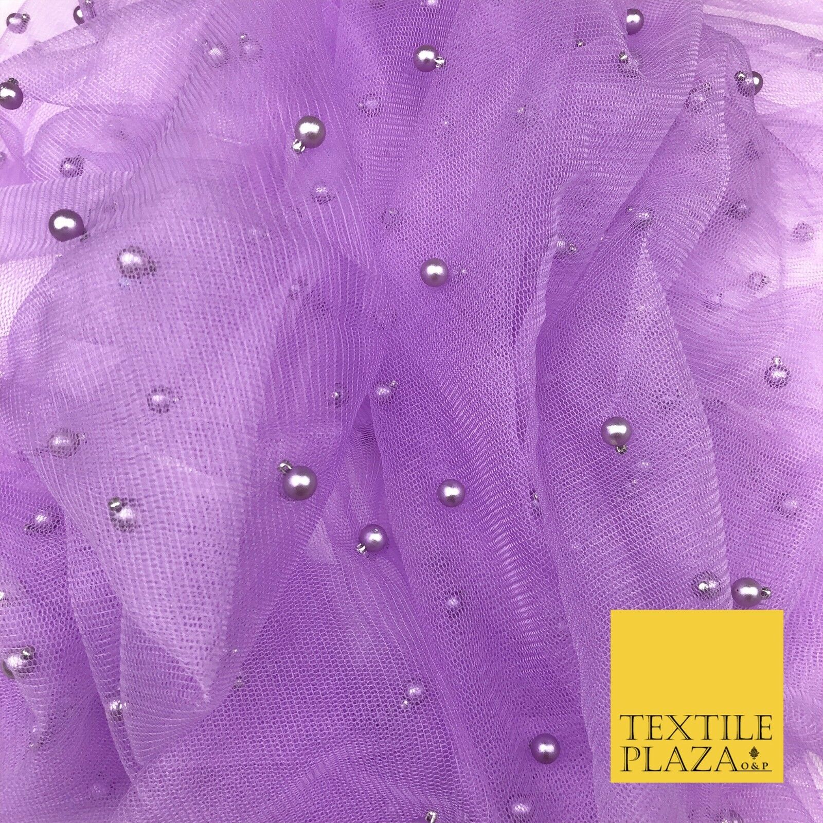 LAVENDER PURPLE Studded Pearl Mesh Net Fabric Bridal Sheer Craft Dress N1105