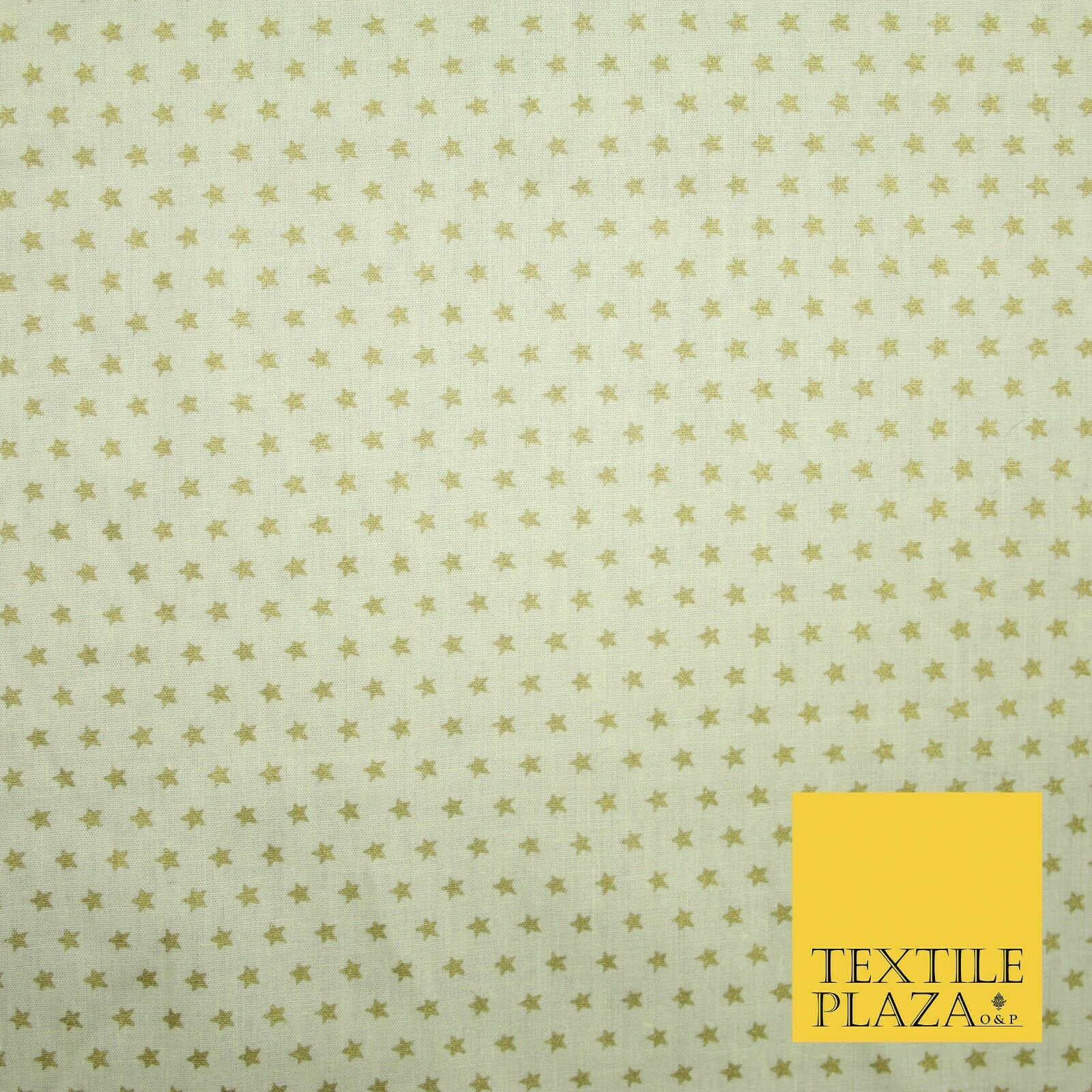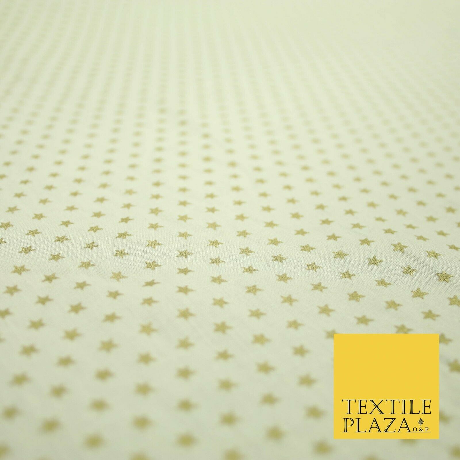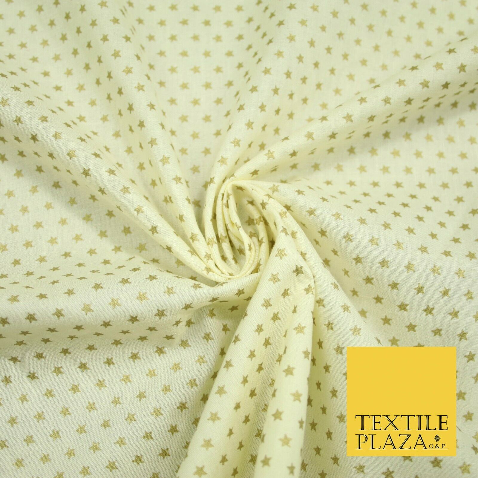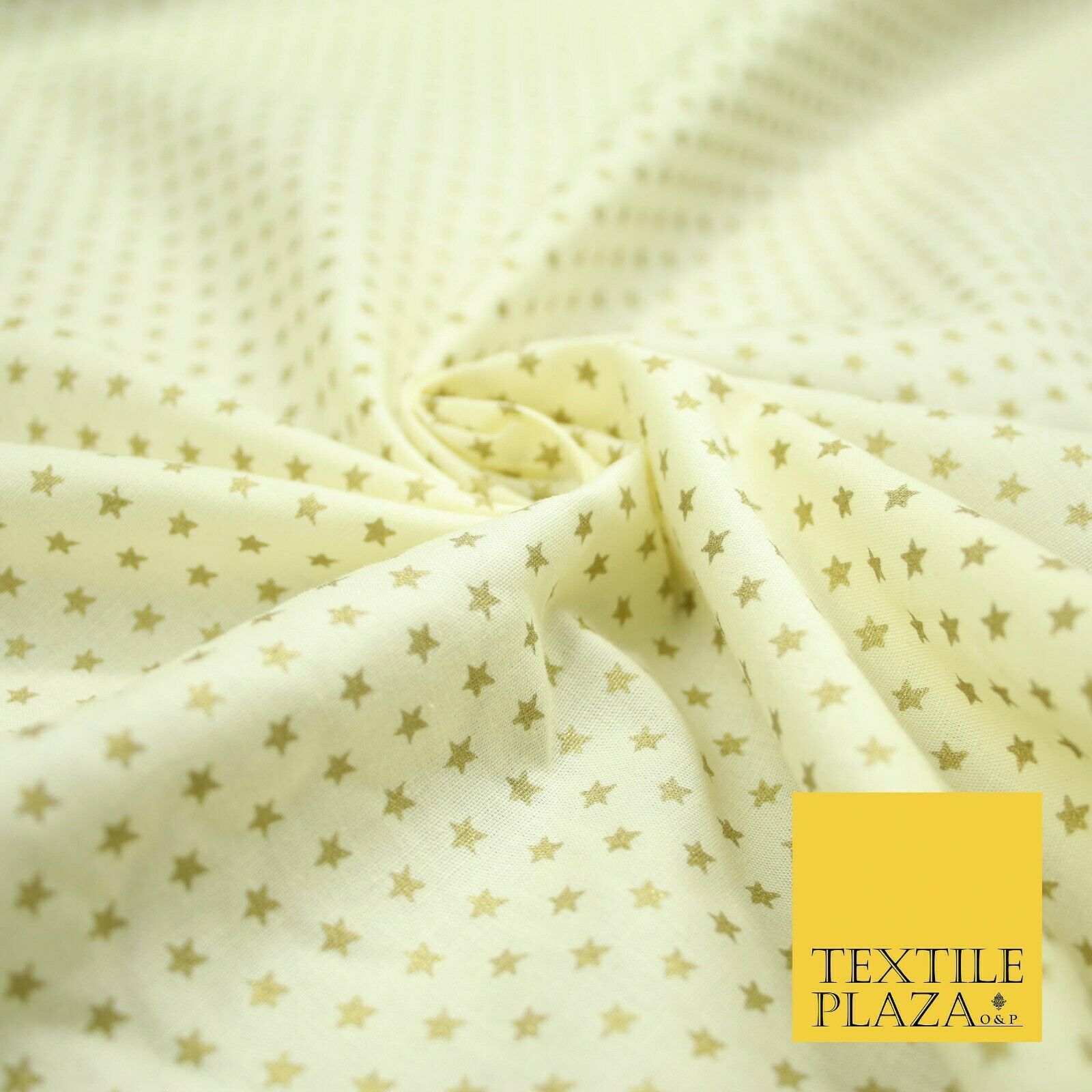 Lemon Cream Mini Metallic Gold Stars 100% Cotton Fabric Sewing Craft Dress 5009