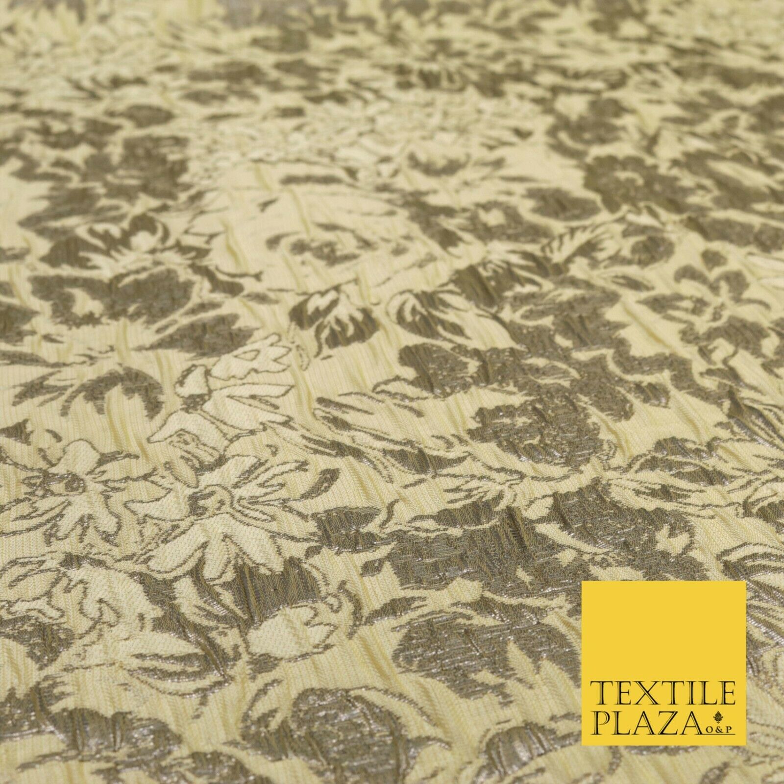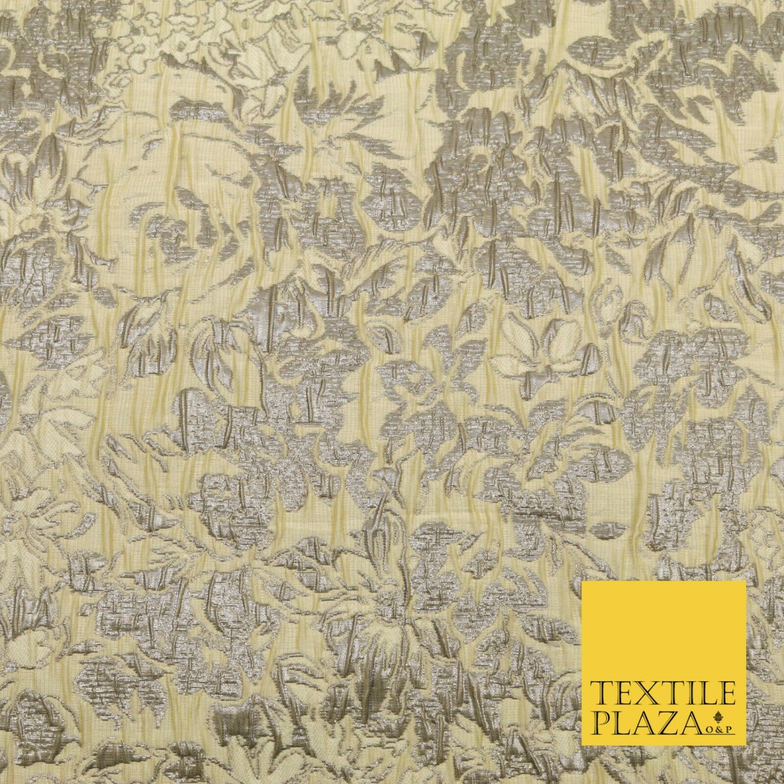 LEMON Floral Bloom Metallic Creased Brocade Jacquard Dress Fabric Craft 1551