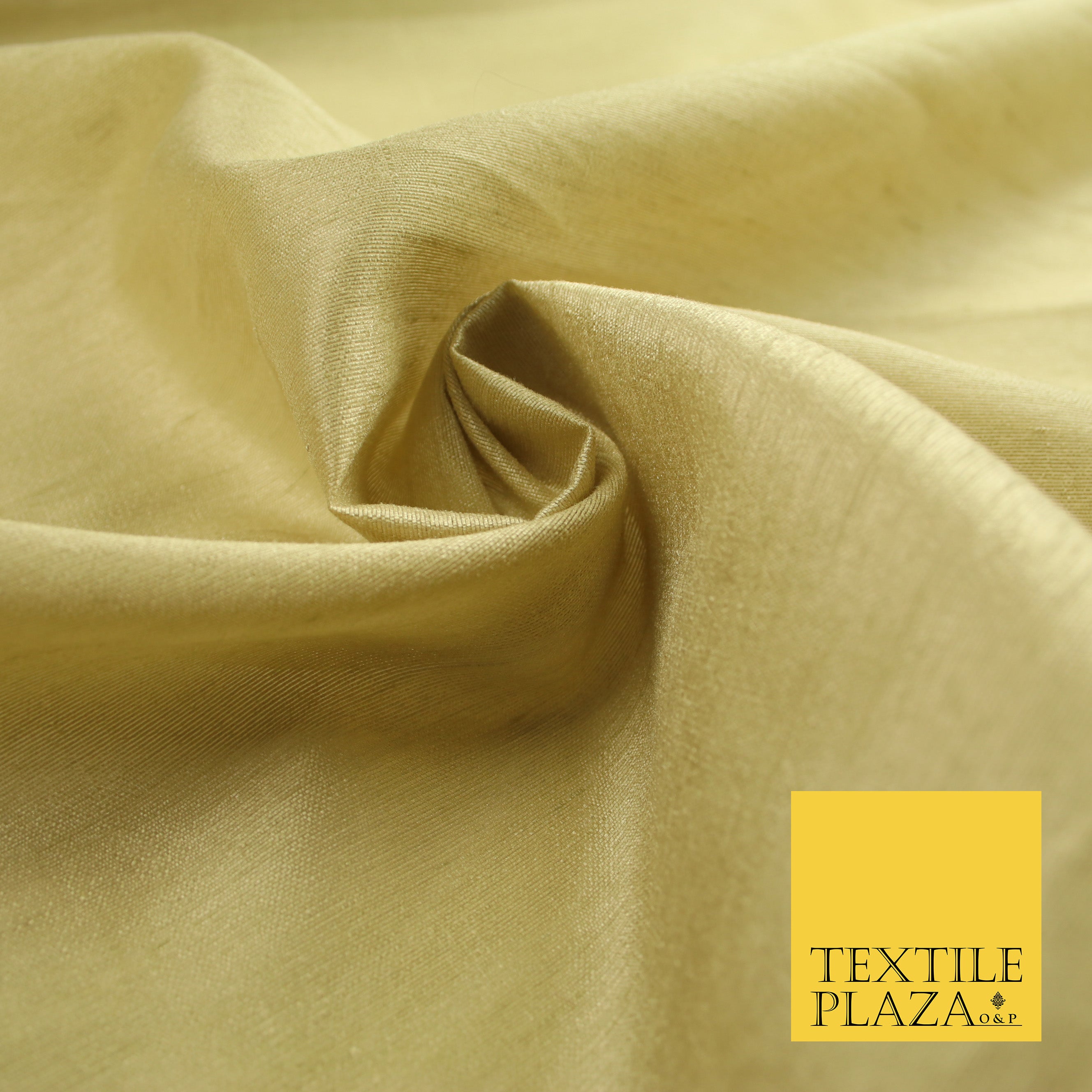 LIGHT BEIGE GOLD Plain Dyed Faux Dupion Raw Silk Polyester Dress Fabric Material 7912