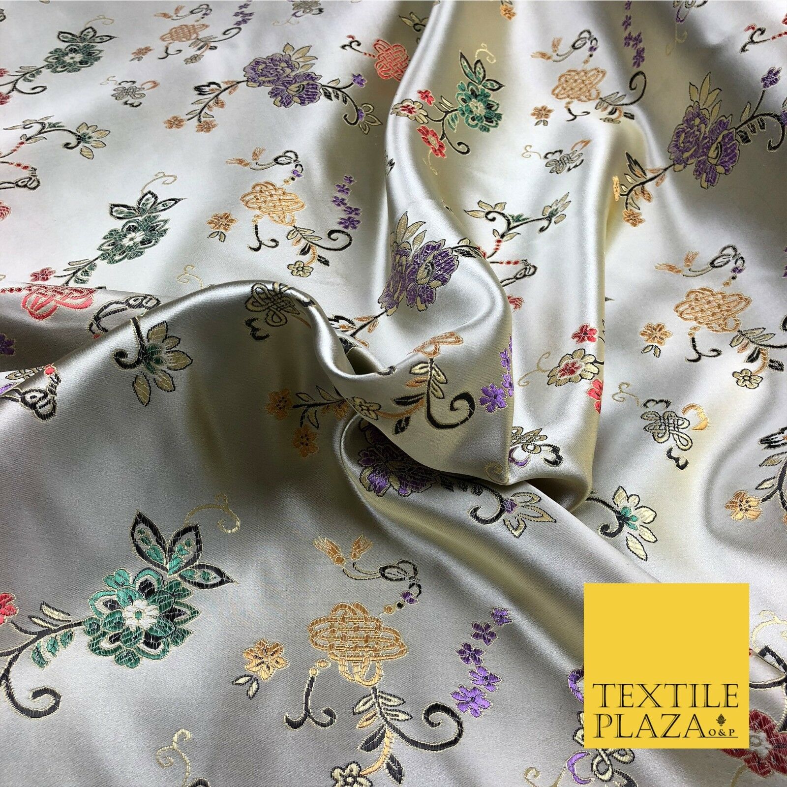 Light Gold Floral Motif Satin Chinese BROCADE Fabric Dress Fancy Oriental AC253