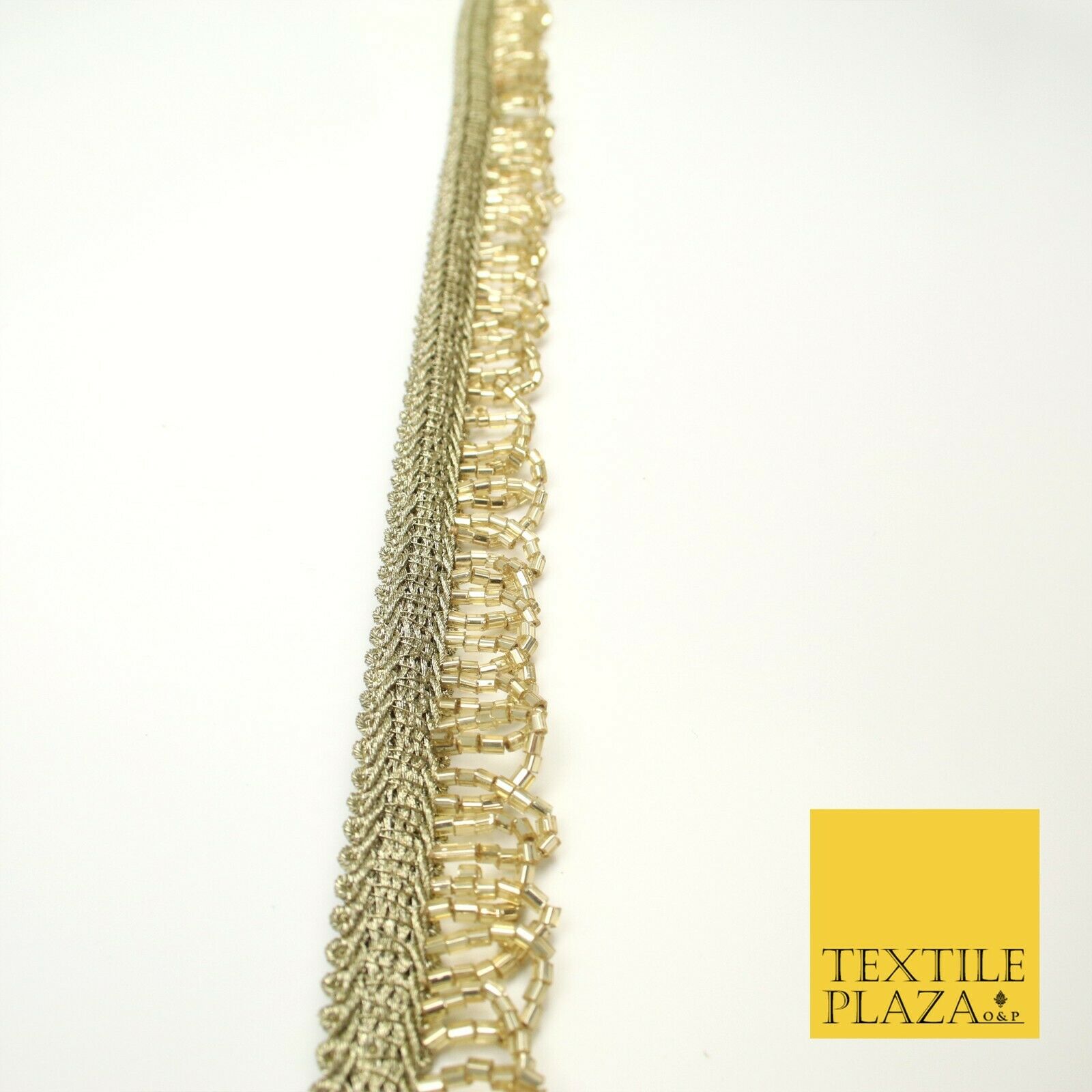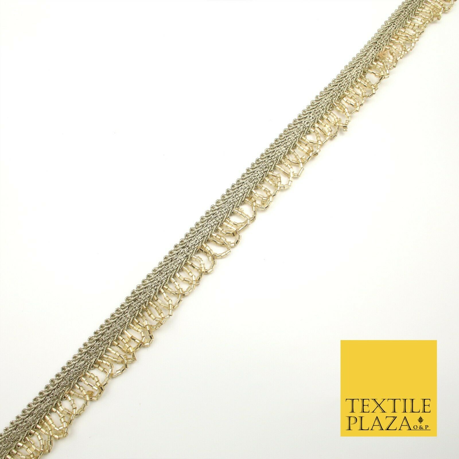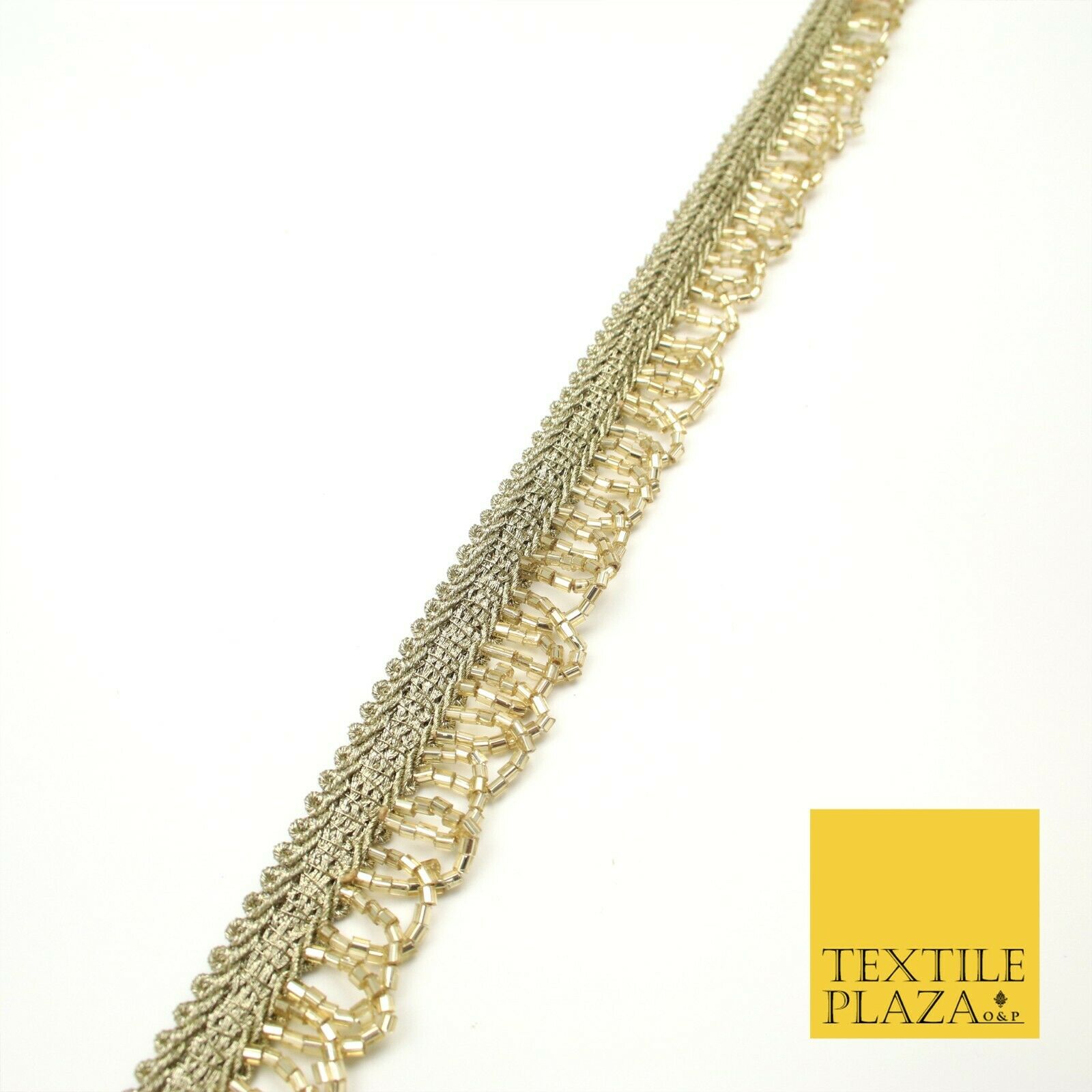 Light Gold Glass Beaded Swag Tassel Drop Loop Trimming Ribbon Border Lace X313