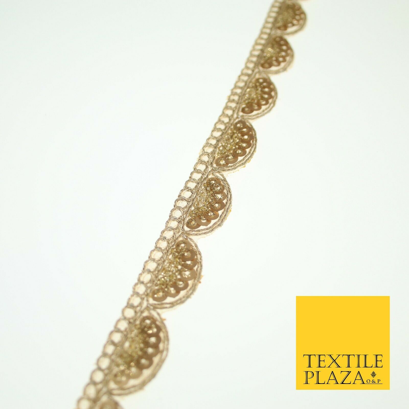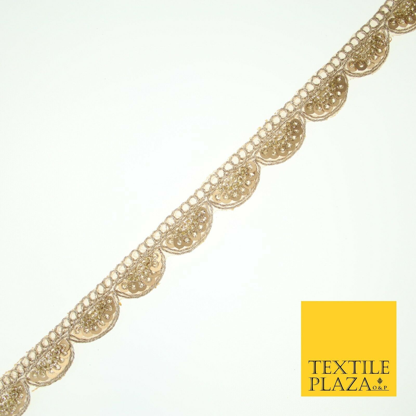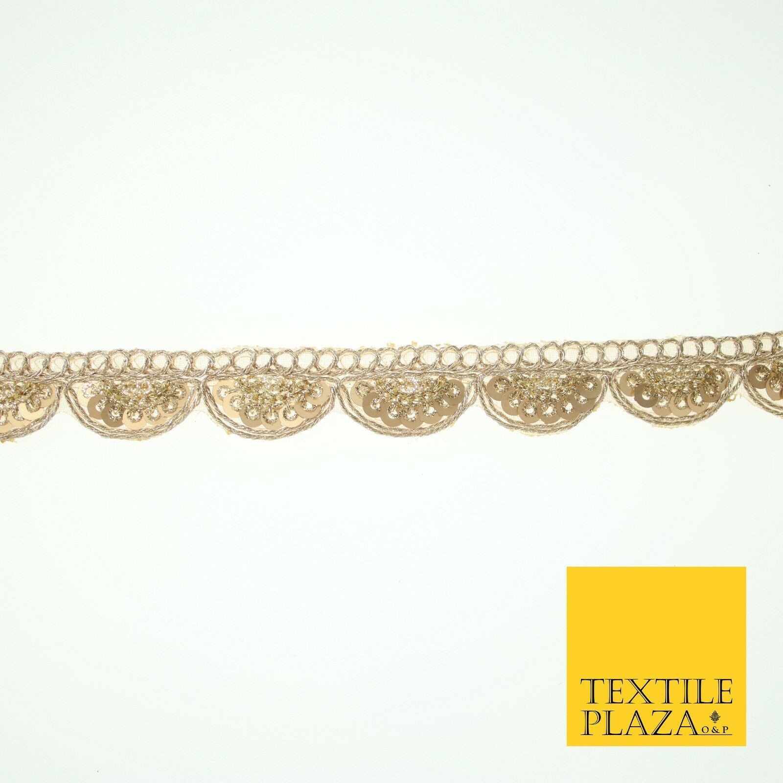 Light Gold Sequin Swag Scalloped Trim Border Ribbon Gota Lace 1.5cm Wide X560