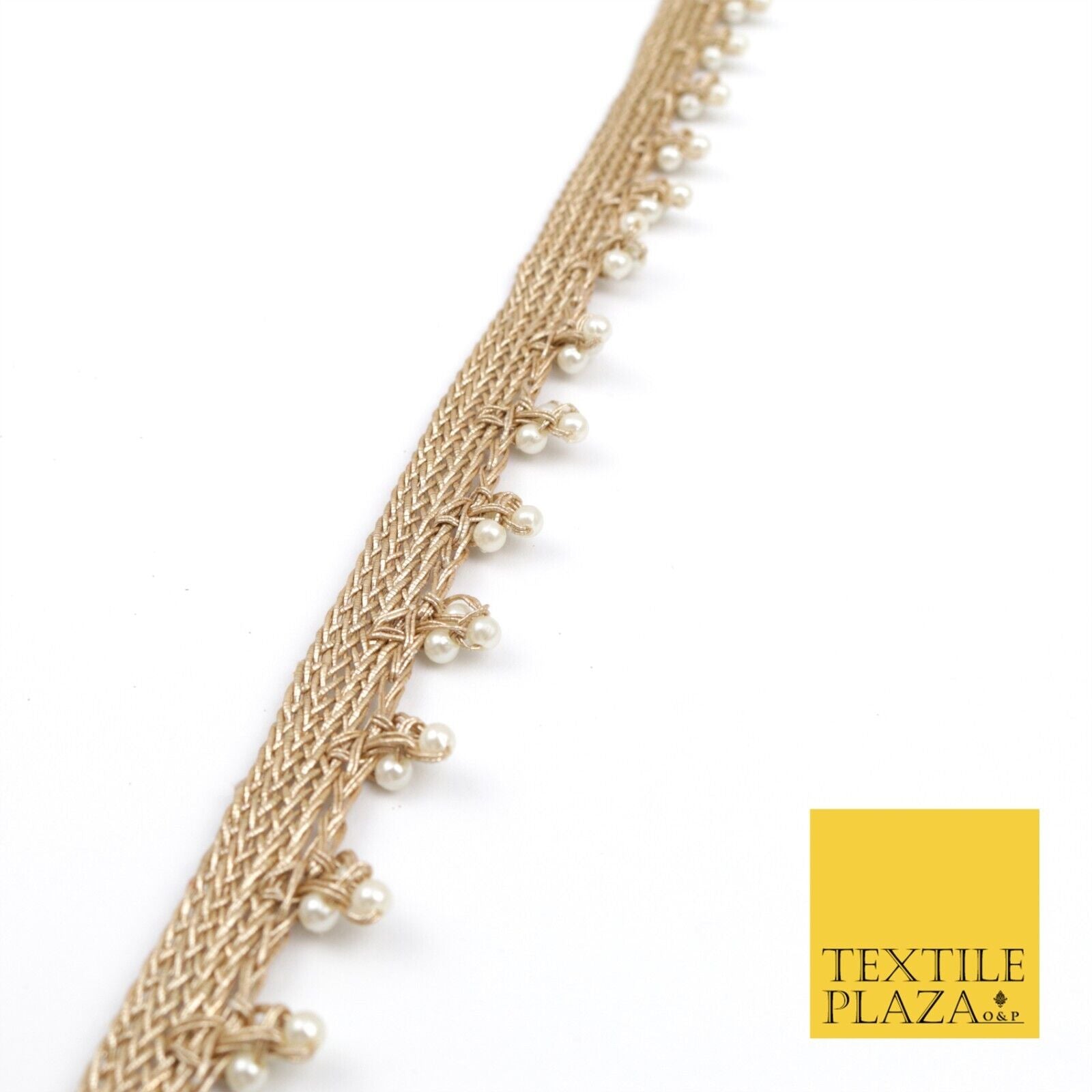 Light Gold White Pearl Trio Knot Beaded Ribbon Trim Border Indian Ethnic X191