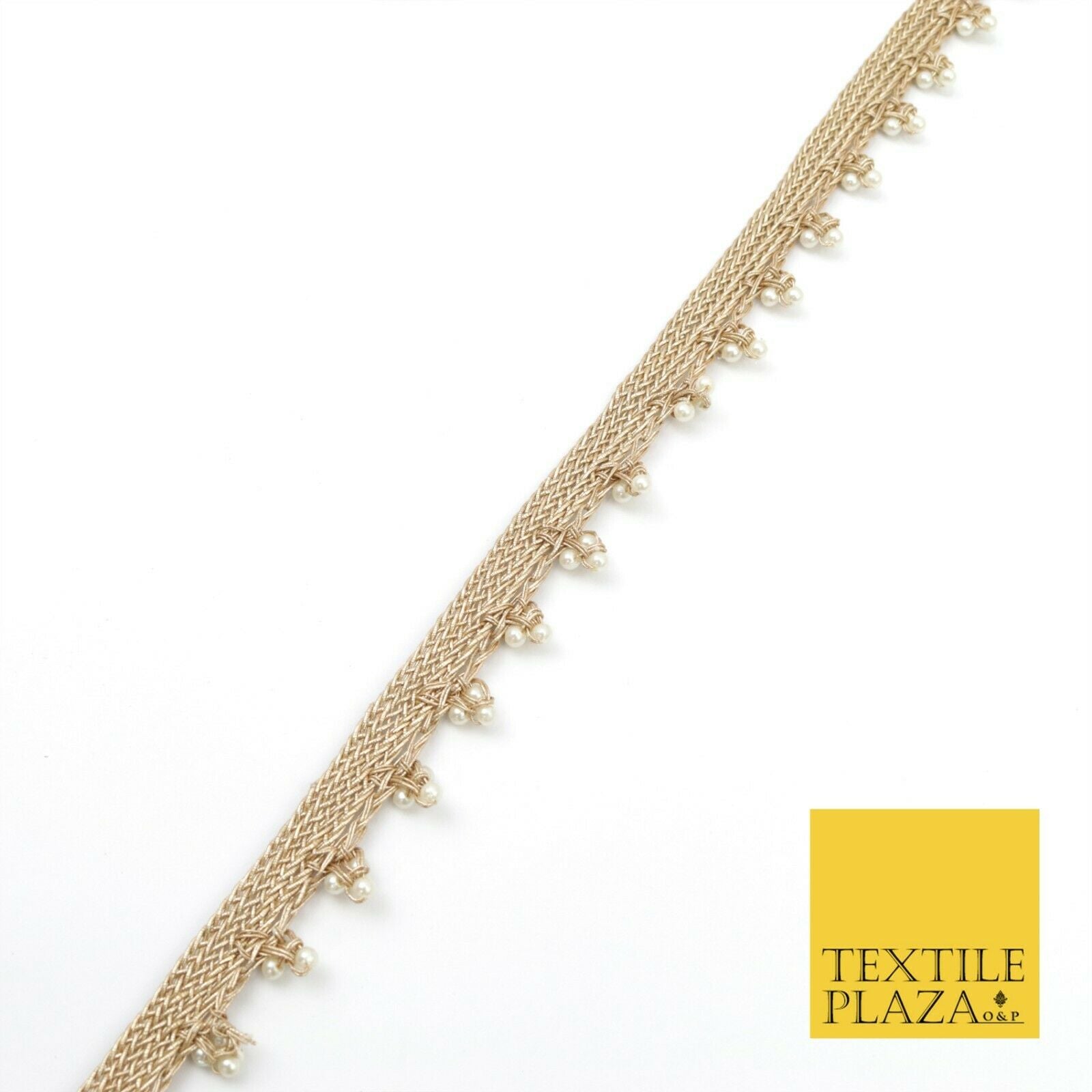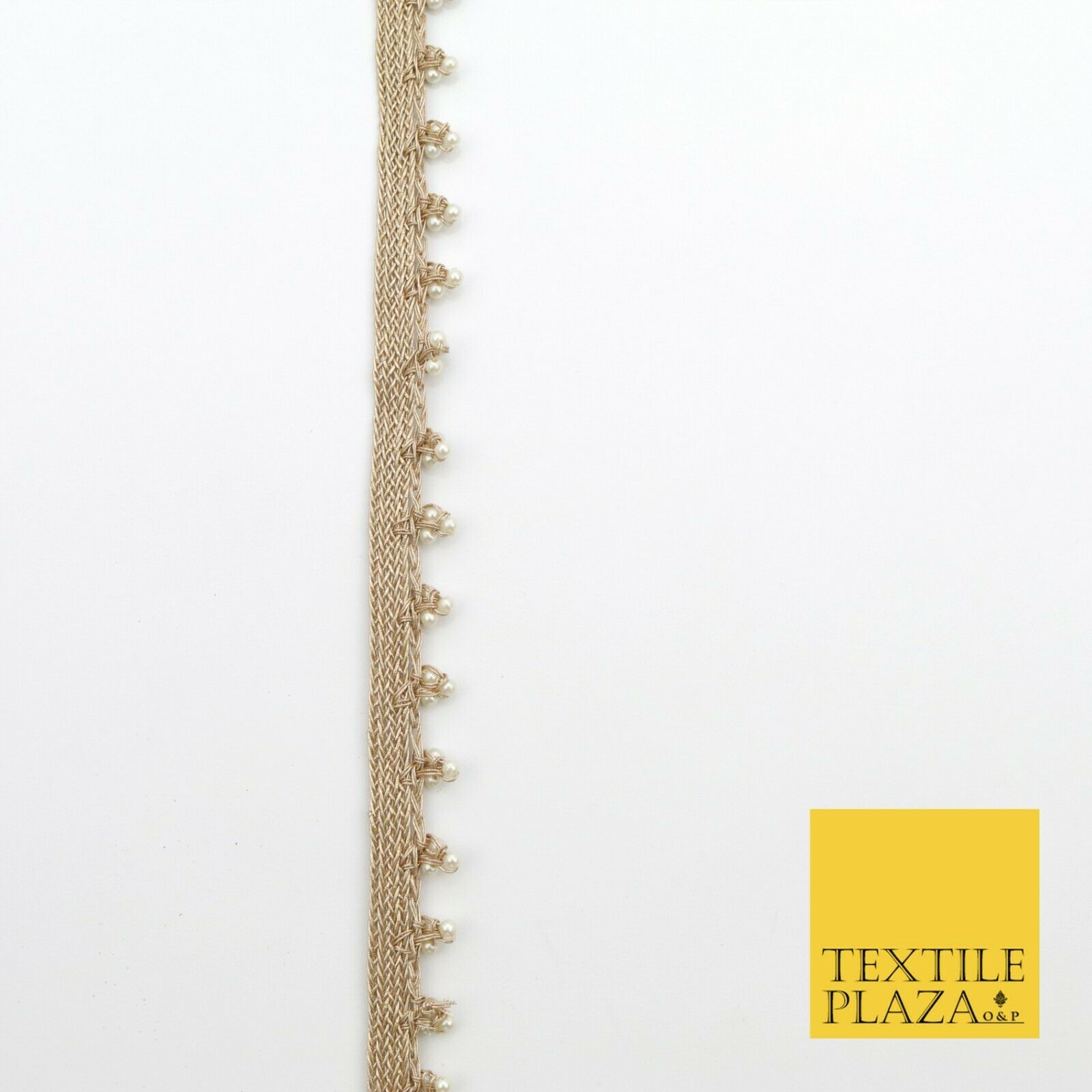 Light Gold White Pearl Trio Knot Beaded Ribbon Trim Border Indian Ethnic (X191)