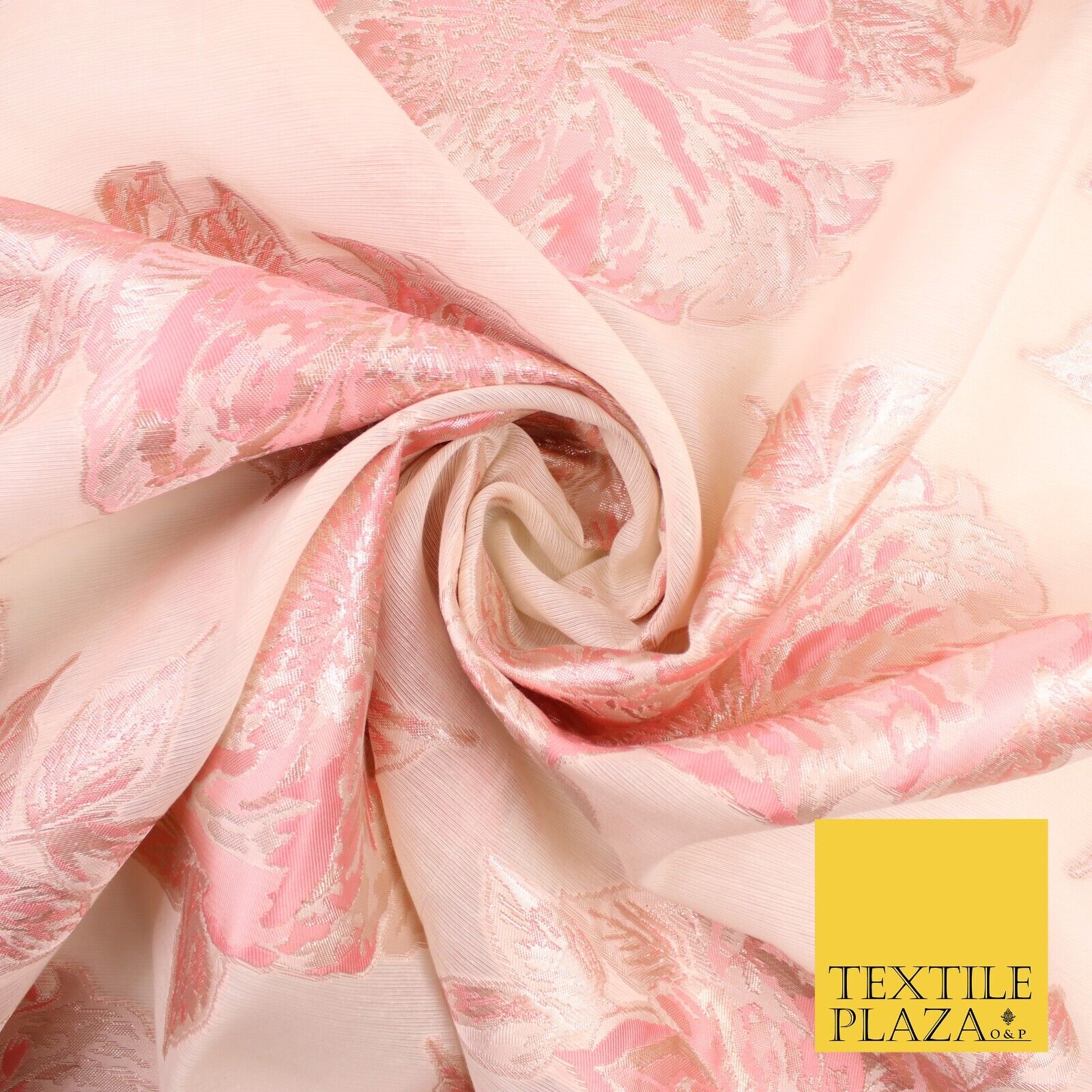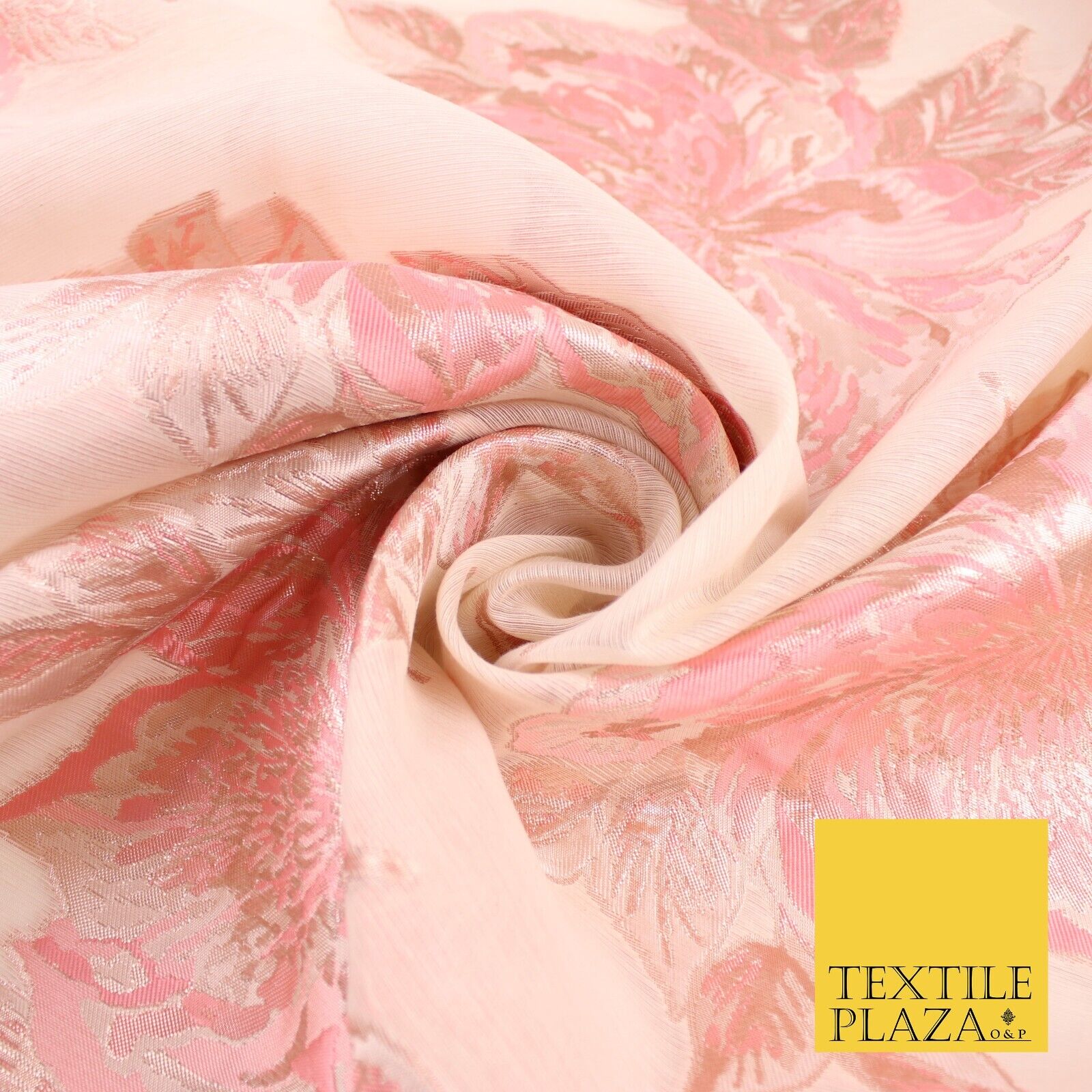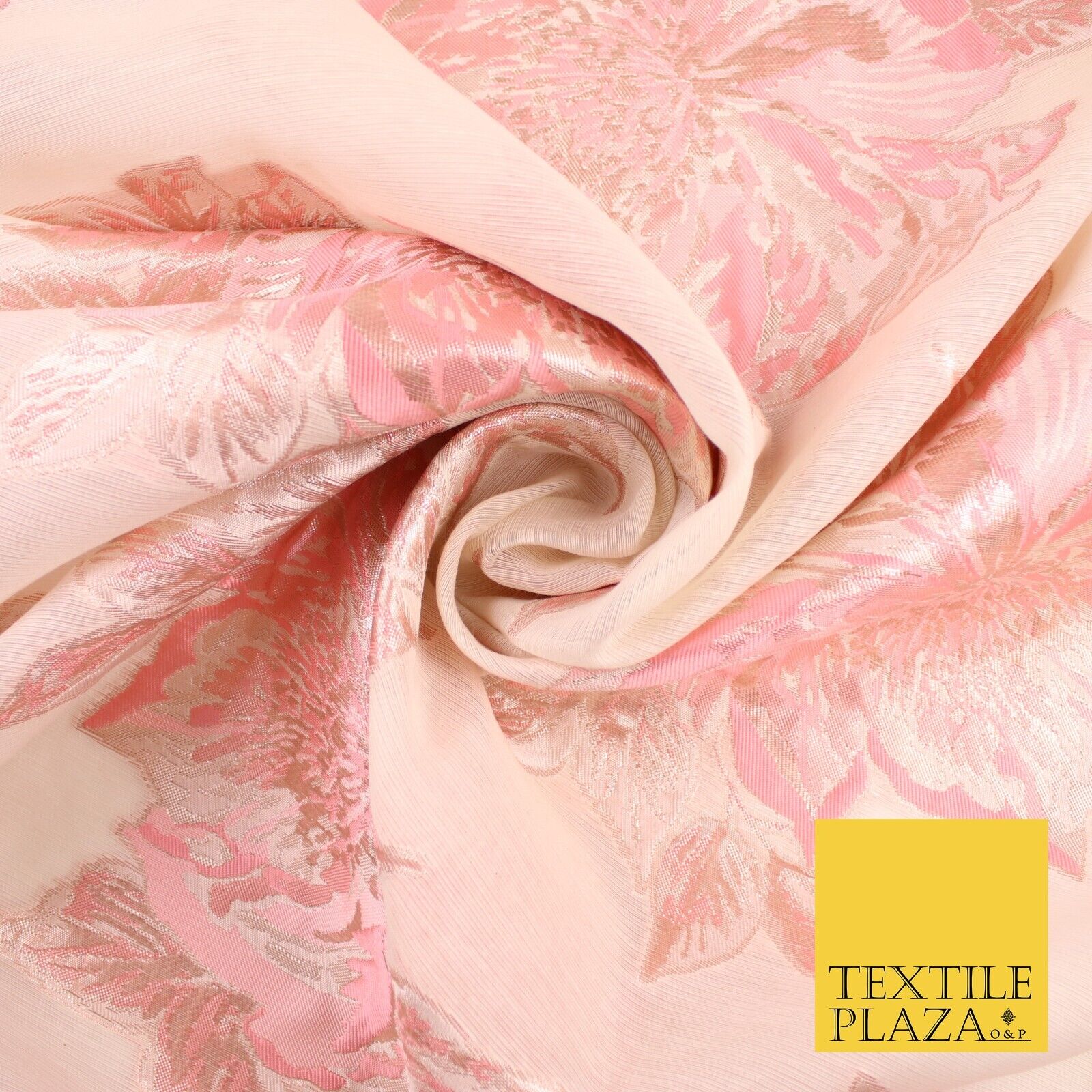 Light Peach Coral Floral Bloom Textured Brocade Jacquard Fabric 8523