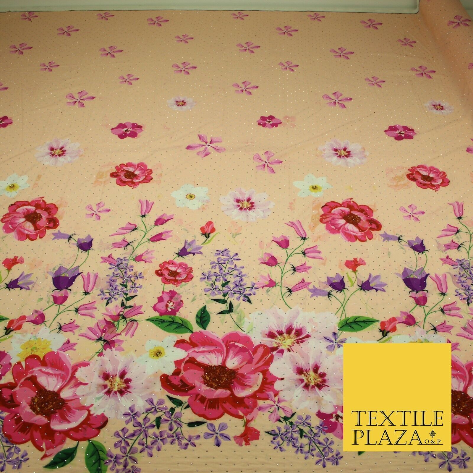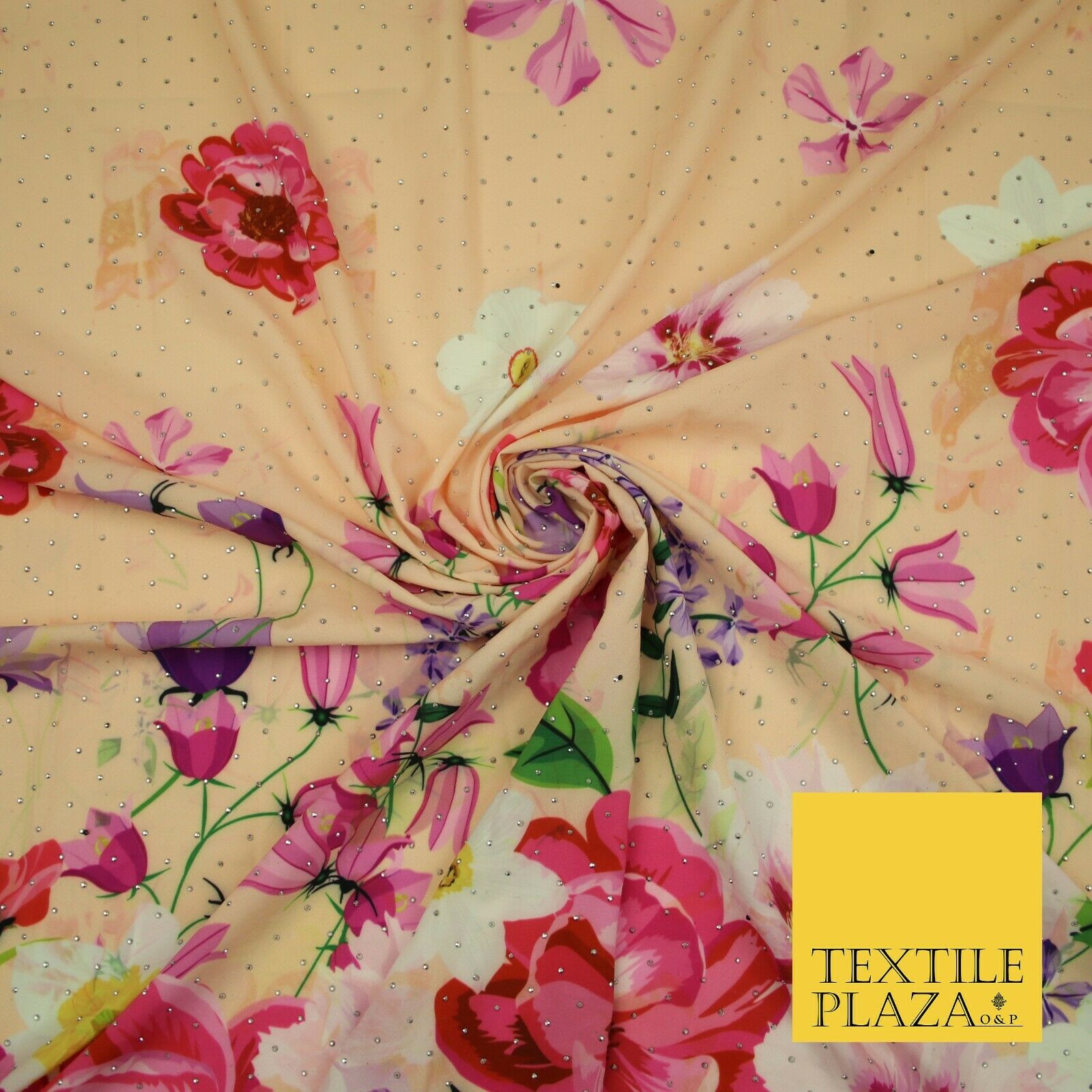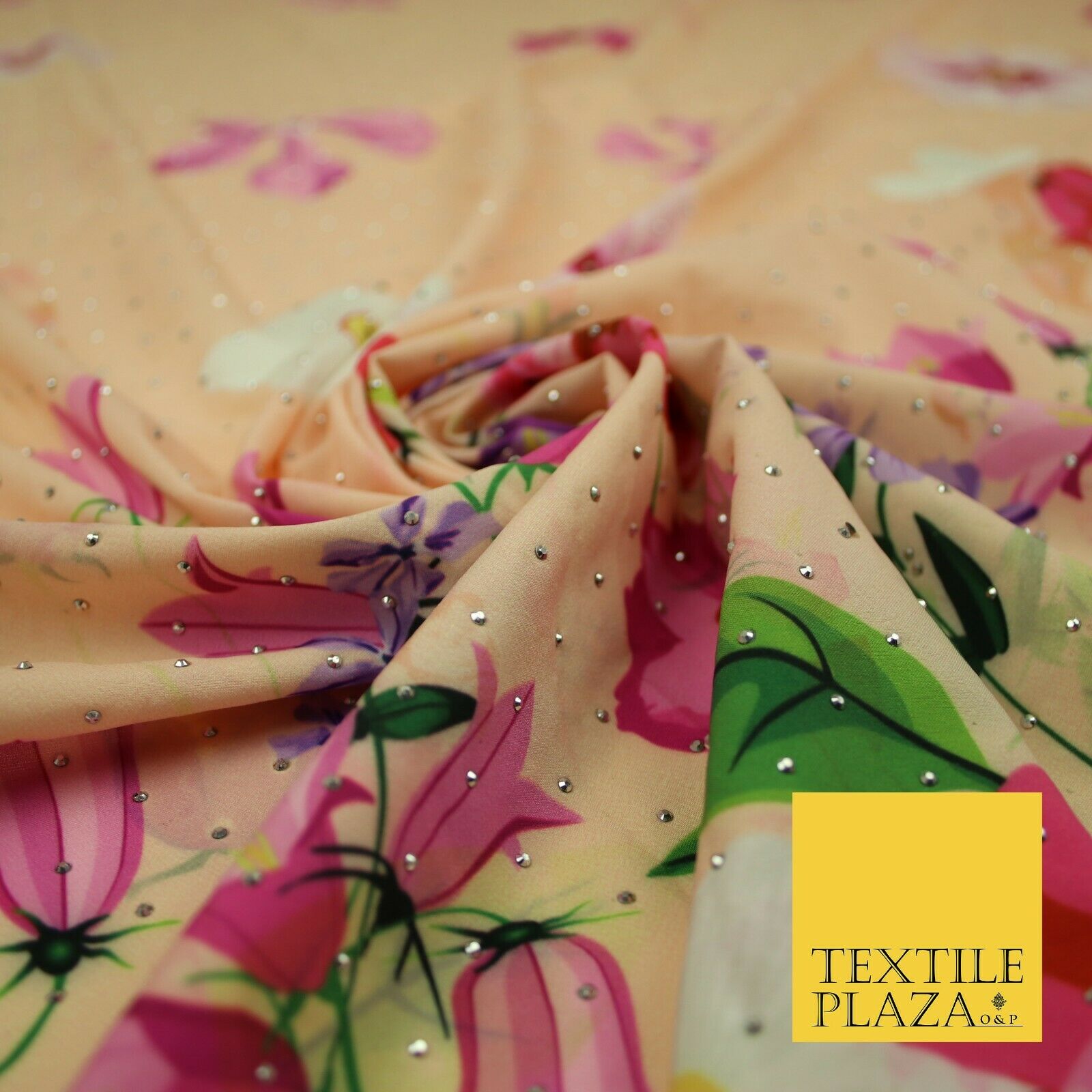 Light Peach Floral Scatter Full Dewdrop Printed Crepe Polyester Dress Fabric2826