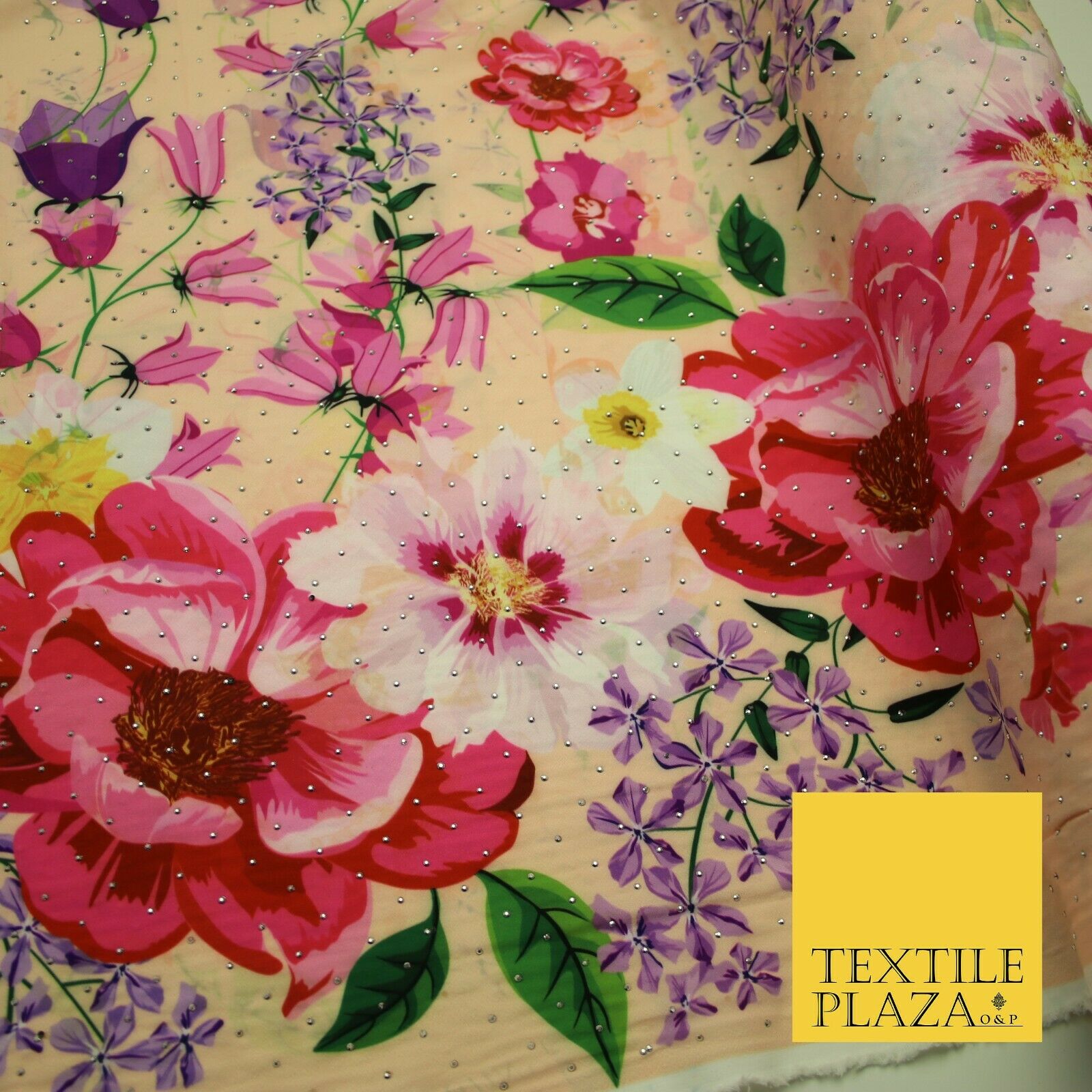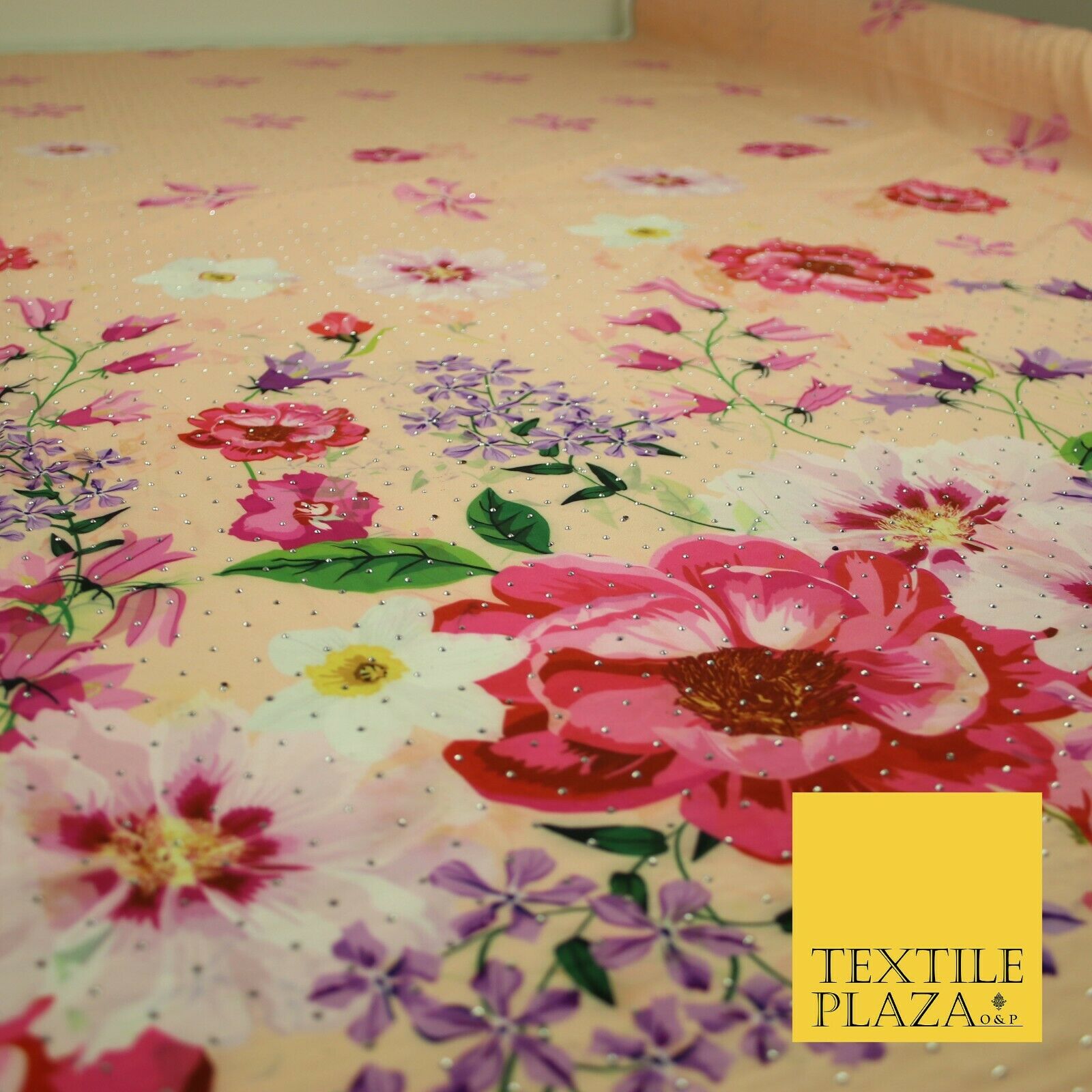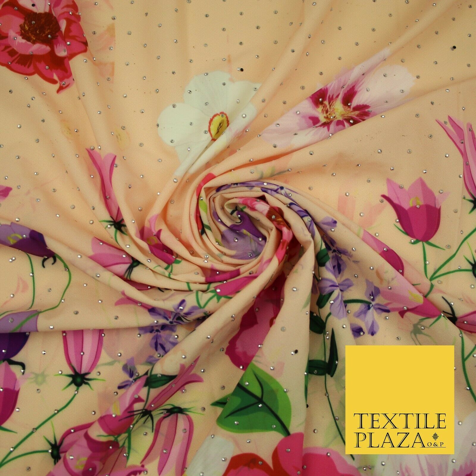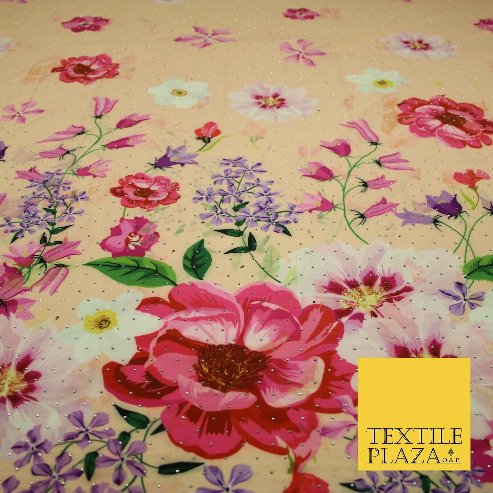 Light Peach Floral Scatter Full Dewdrop Printed Crepe Polyester Dress Fabric2826