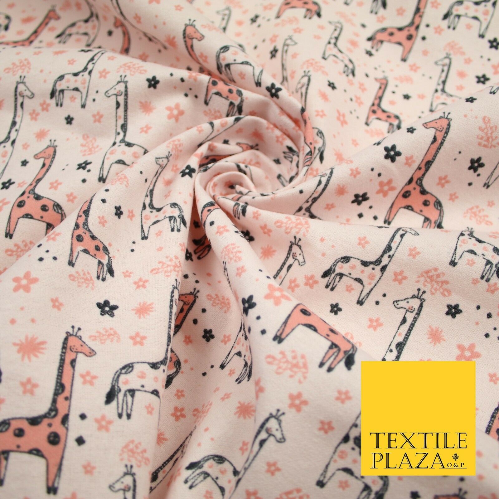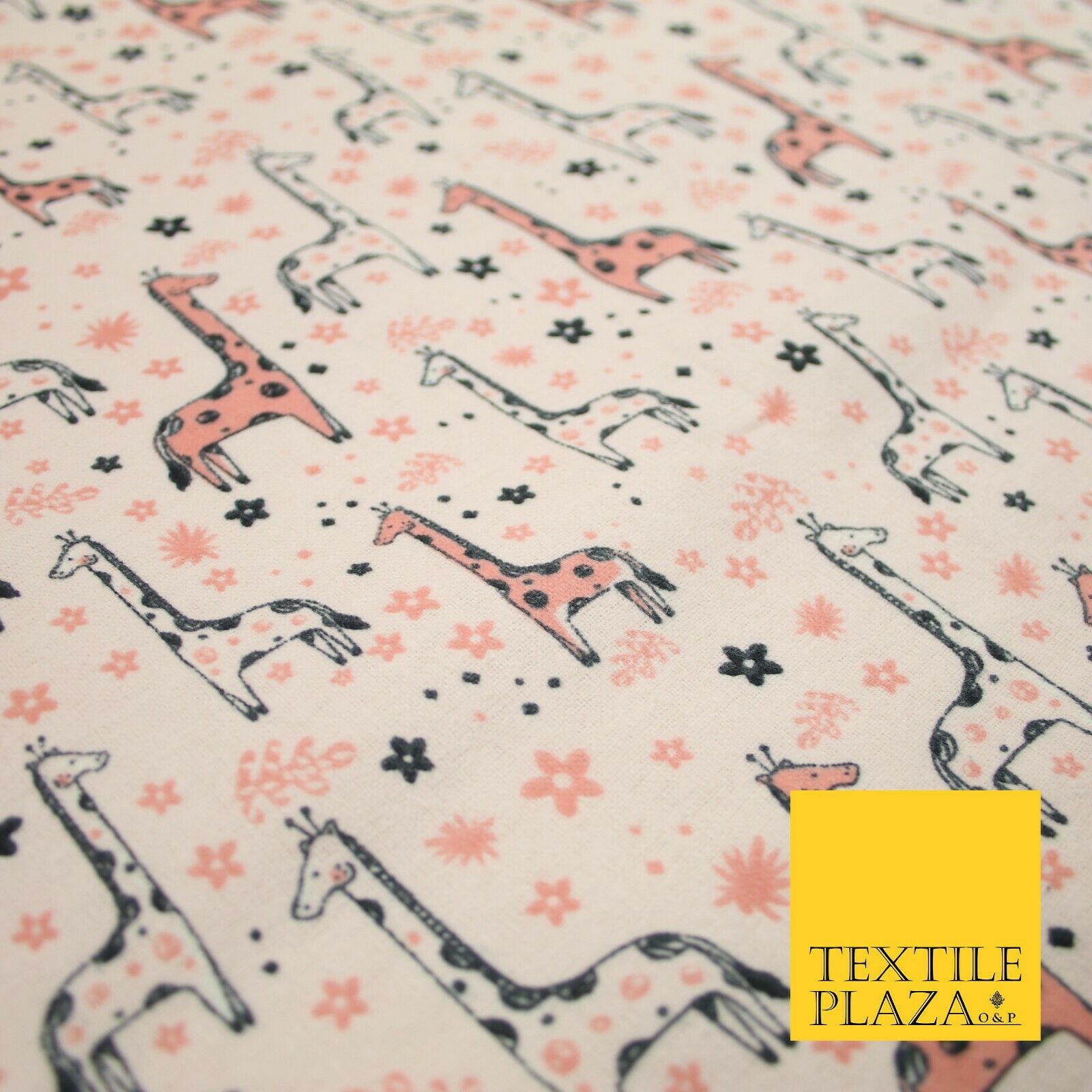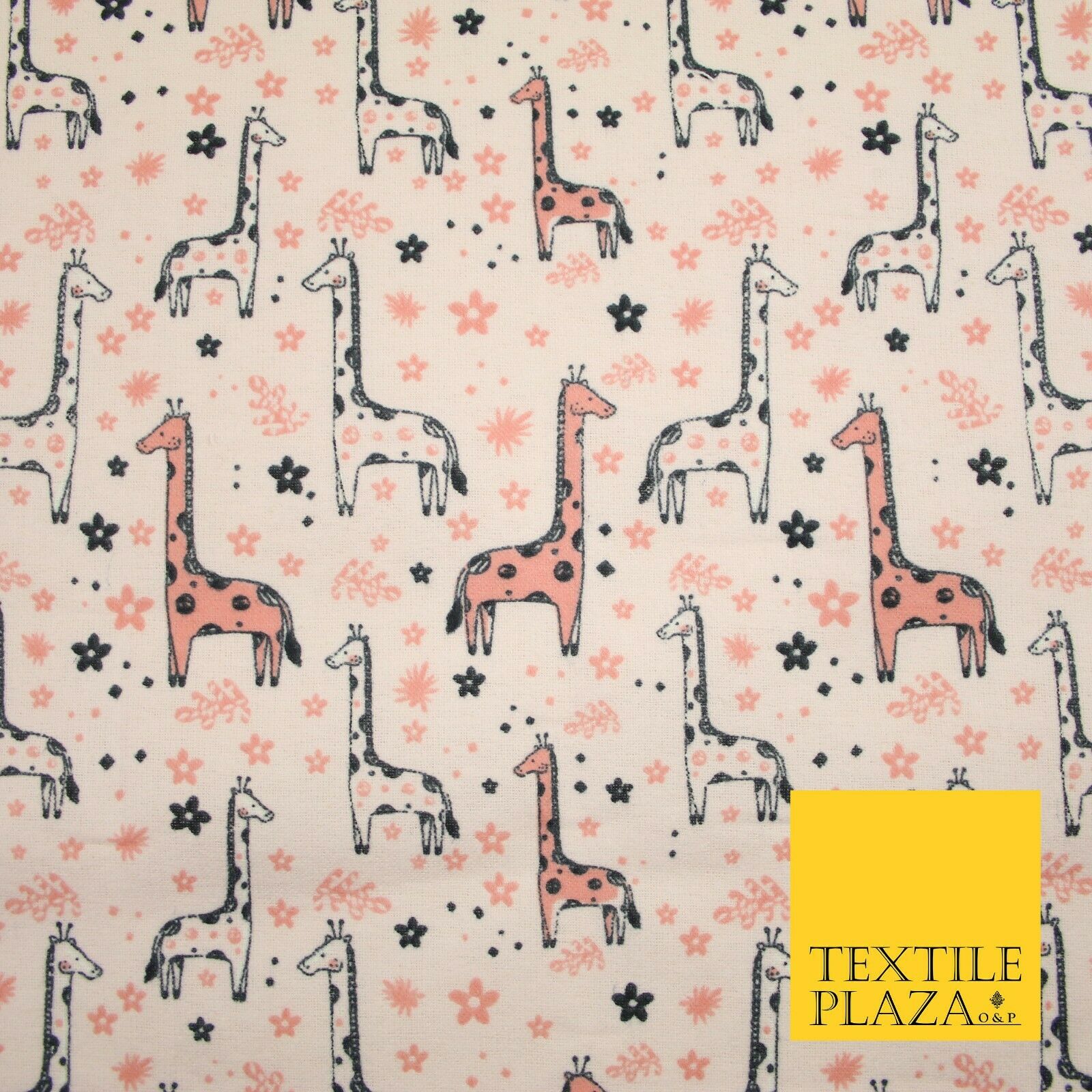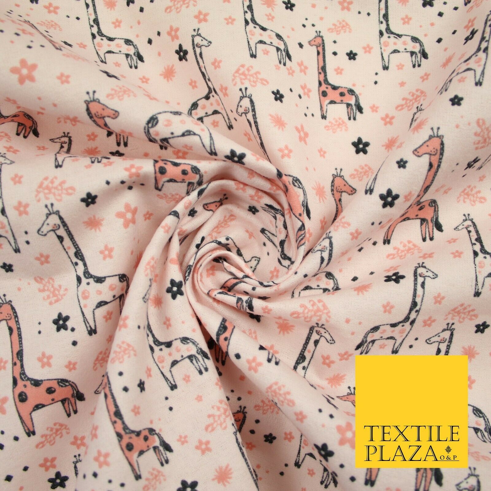 Light Pink Cheeky Giraffes Printed Brushed Polycotton Winceyette Fabric 7180