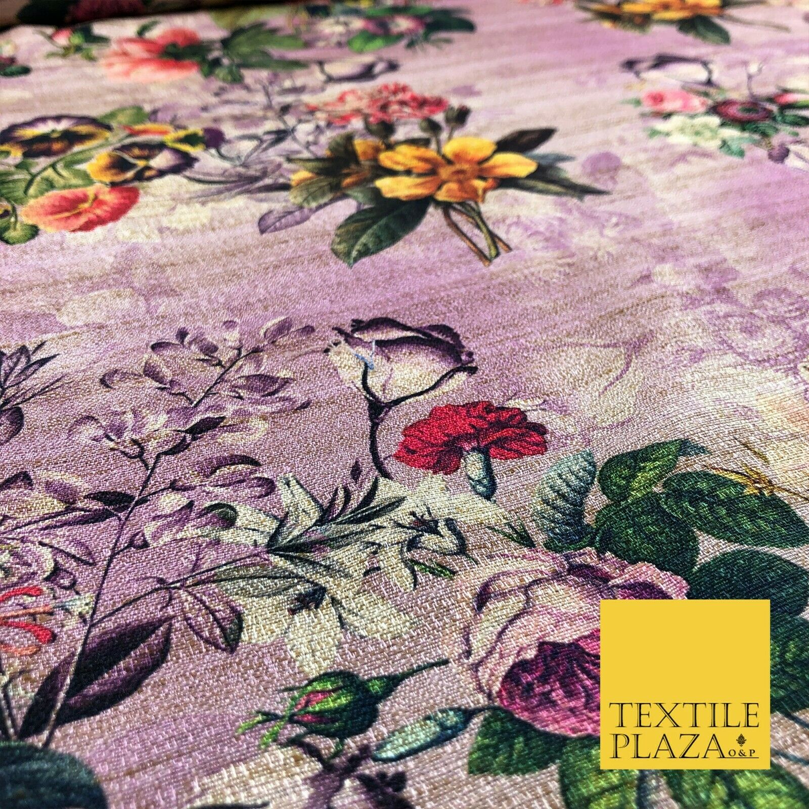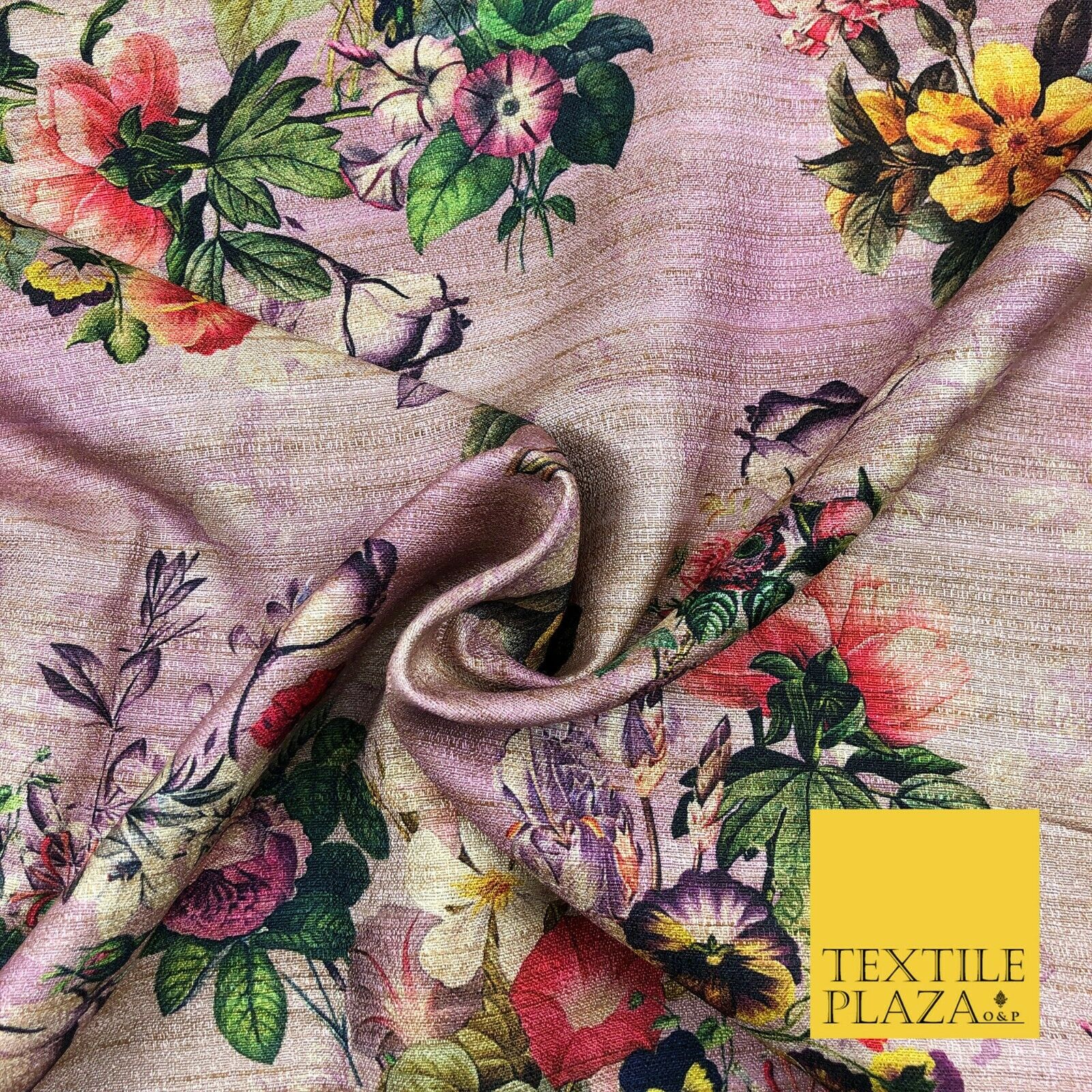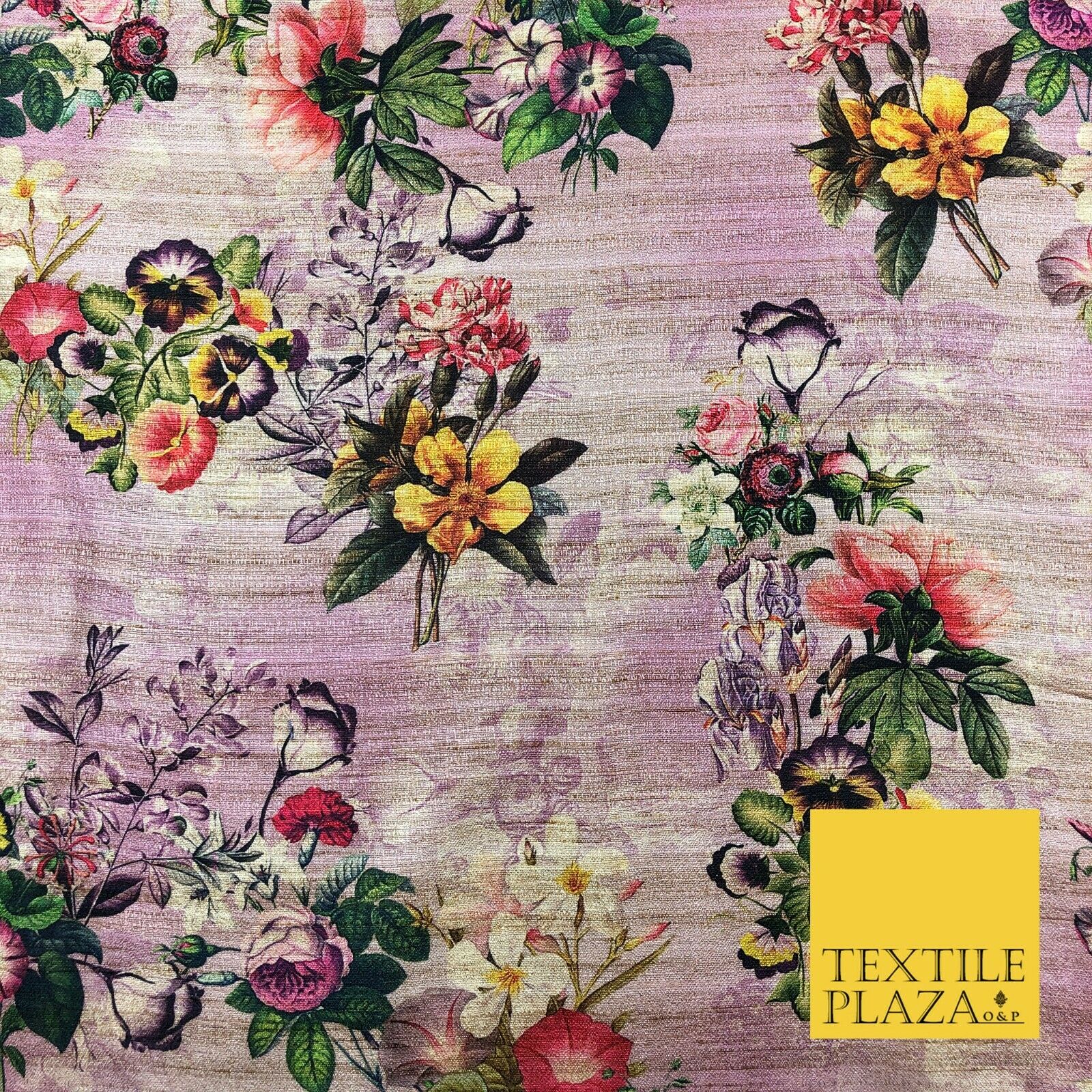 LILAC Garden Mix Floral Digital Print Faux Raw Silk Fabric Dress Craft 1468
