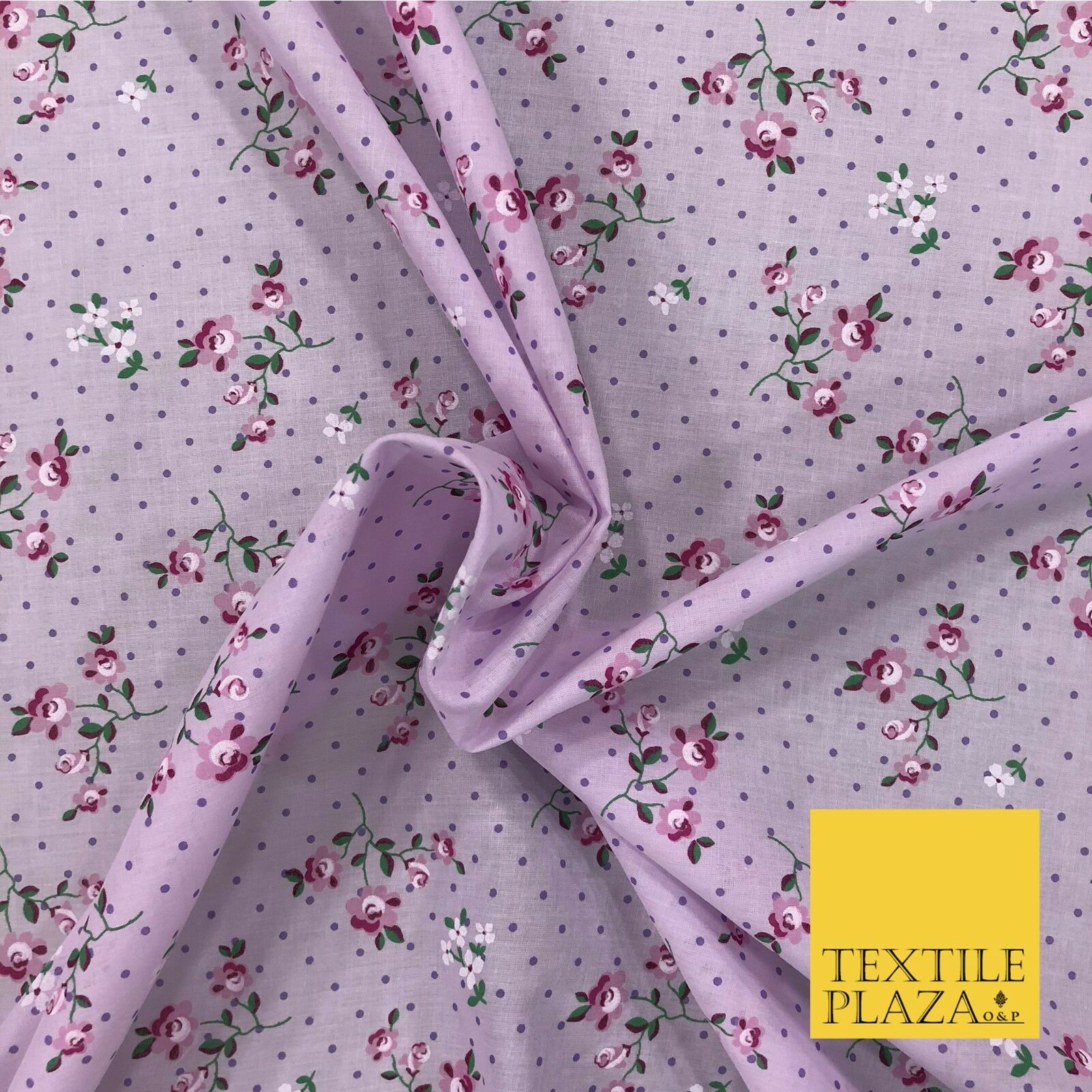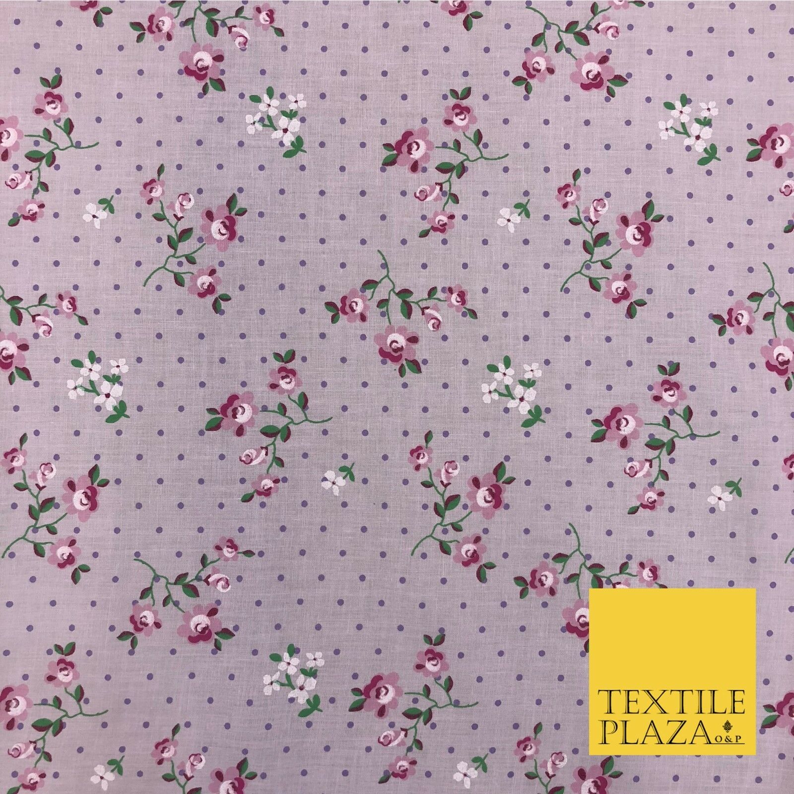 LILAC Garden Rose Print Fabric 100% Cotton Flower Polka Dot Dress Craft RB356