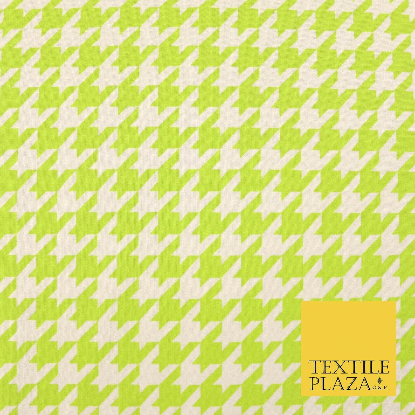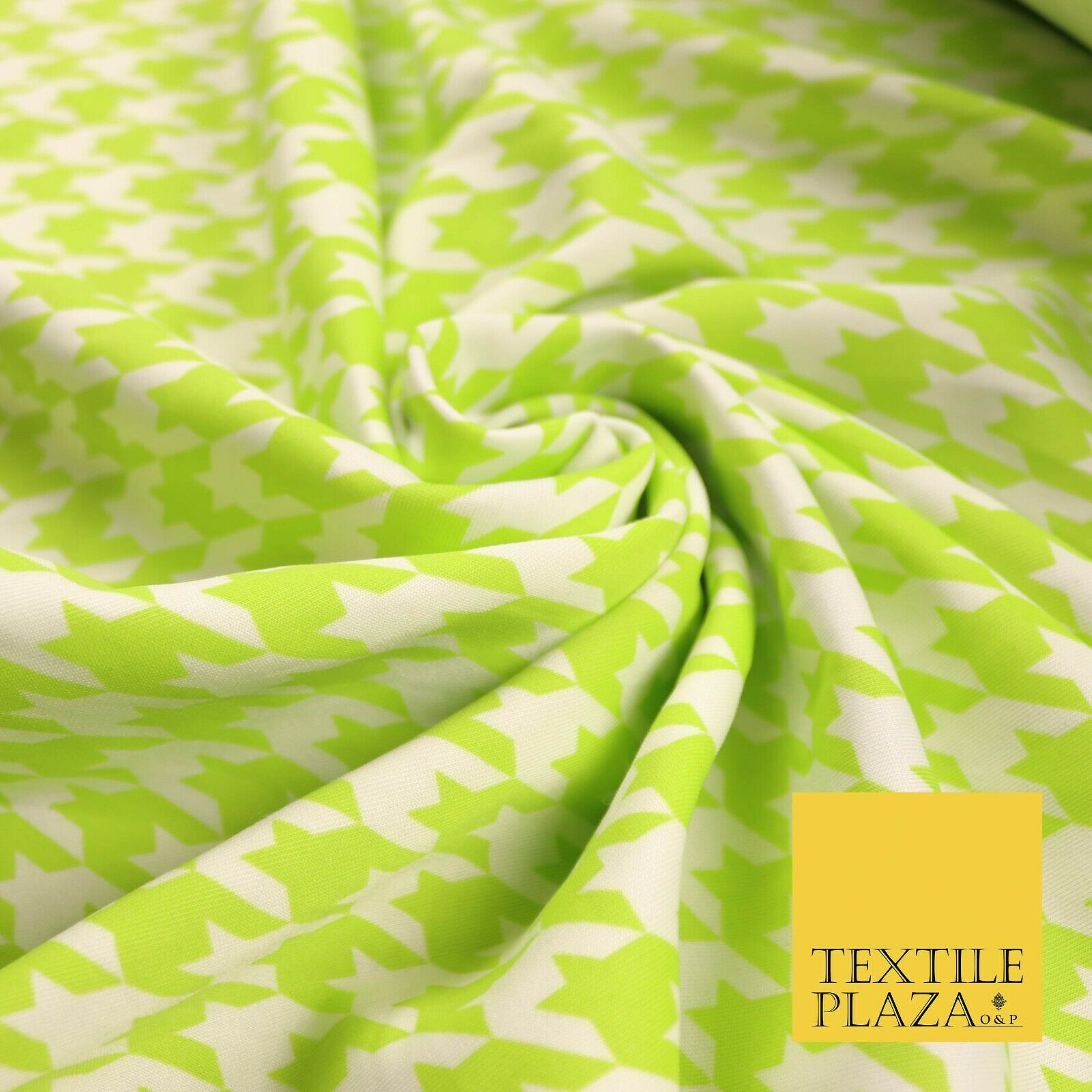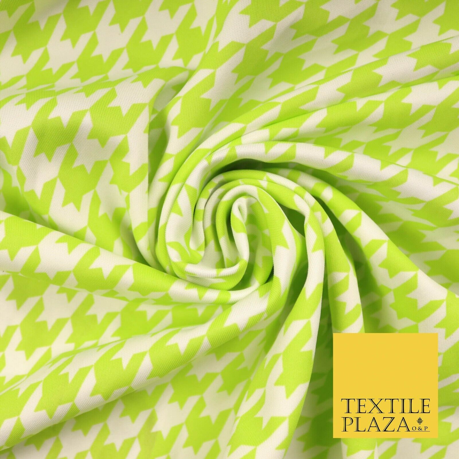 Lime Green White Houndstooth Printed Jersey Dress Fabric 240gsm 61" Wide 4337