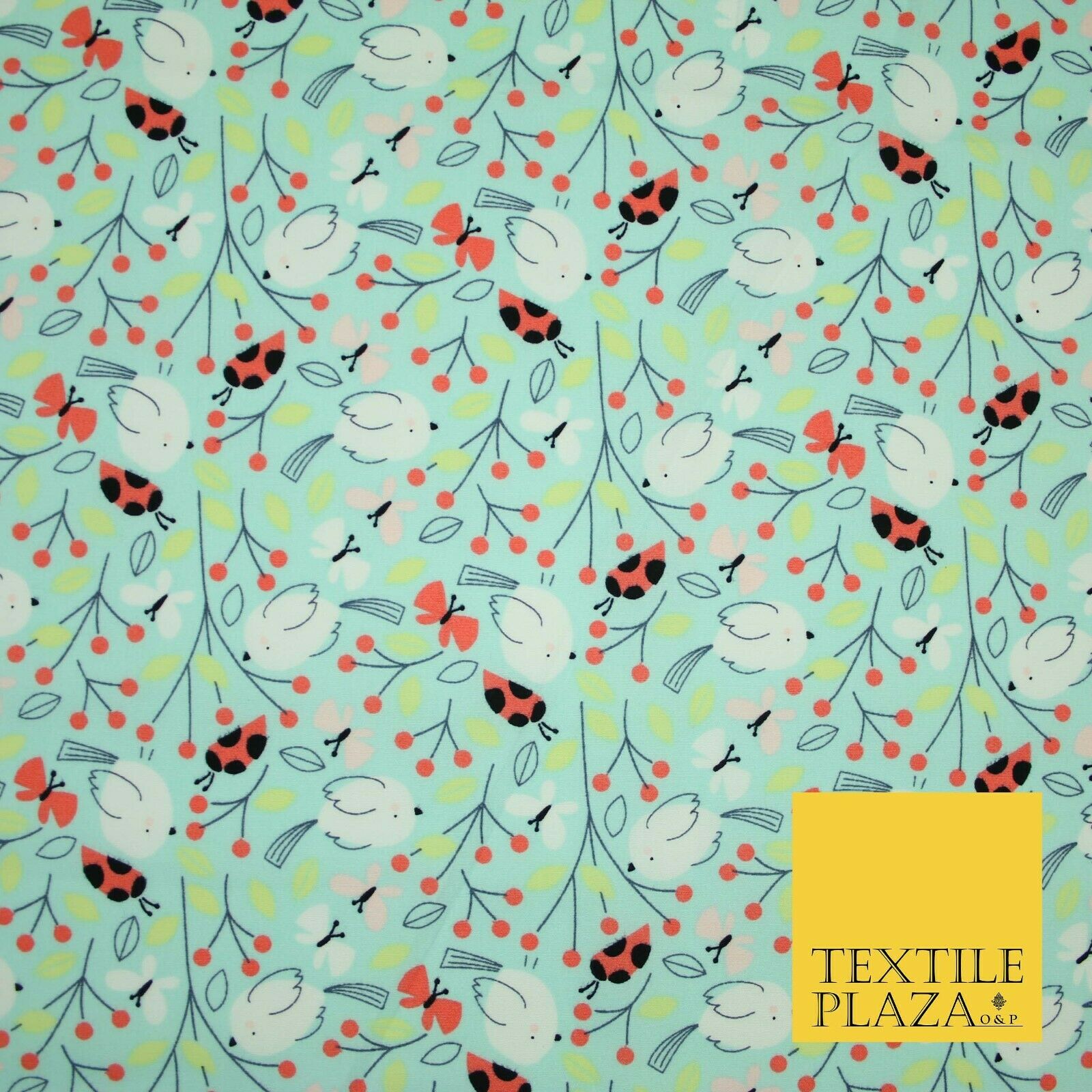 Little Robin Ladybird Butterfly Leafy 100% Cotton Poplin Print Fabric Face Masks