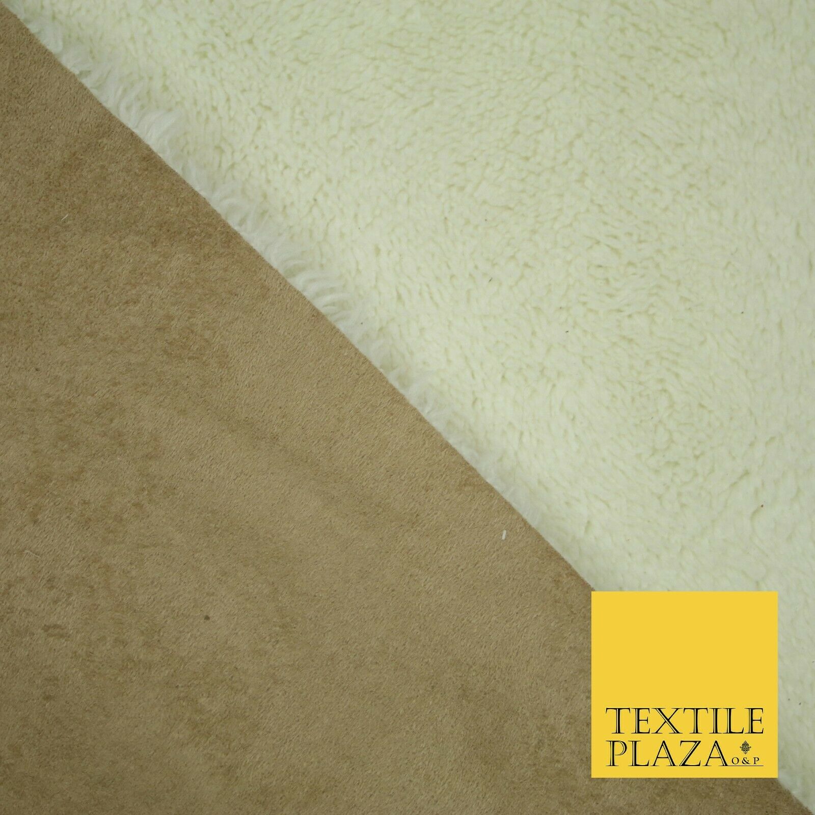Lush IVORY Sherpa Sheepskin TAN Suede Backed Short Pile Faux Fur Fabric 2300